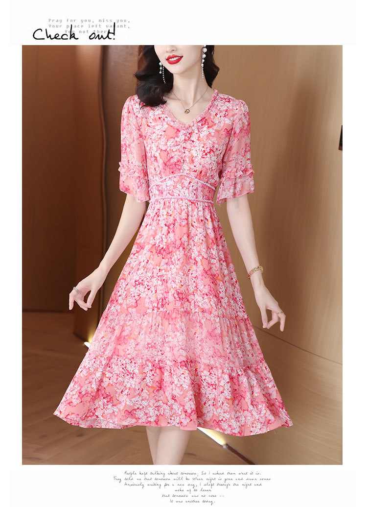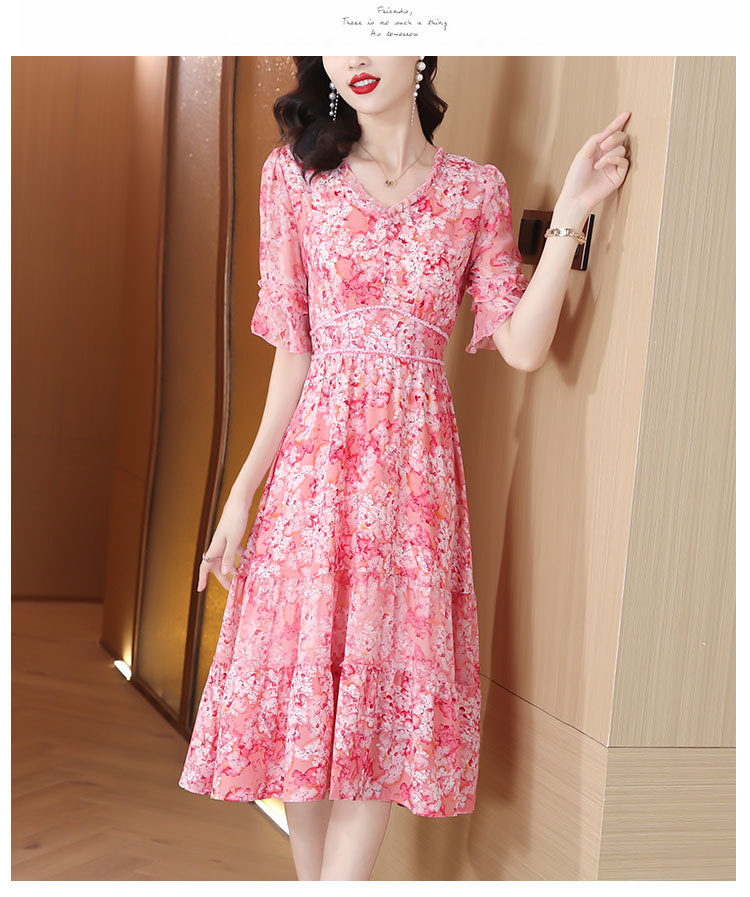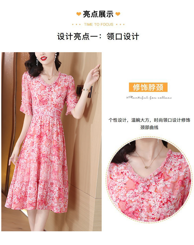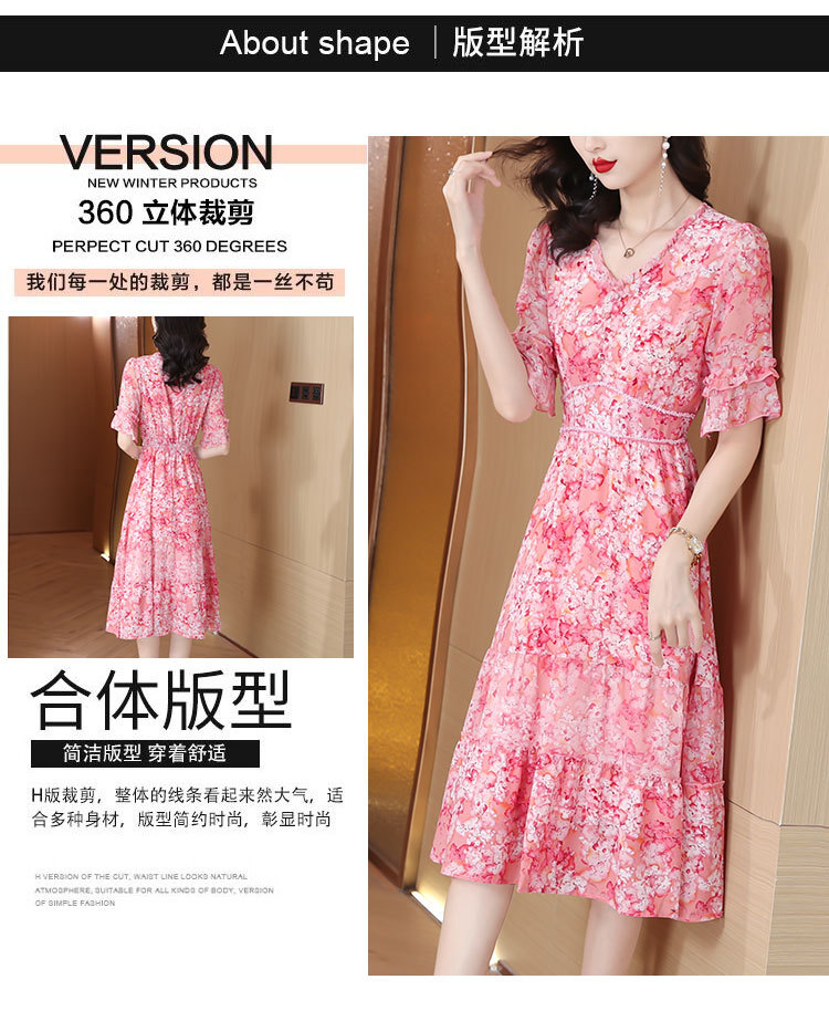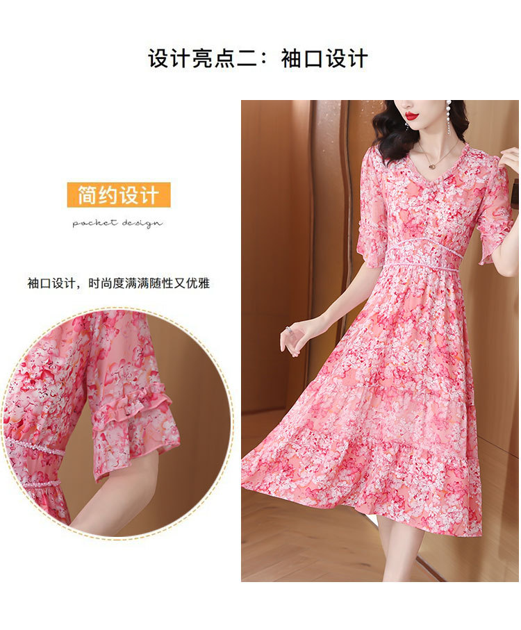 气质优雅,夏季新款百搭减龄显瘦大摆裙女法式淑女风碎花连衣裙AHM-ryfs6275