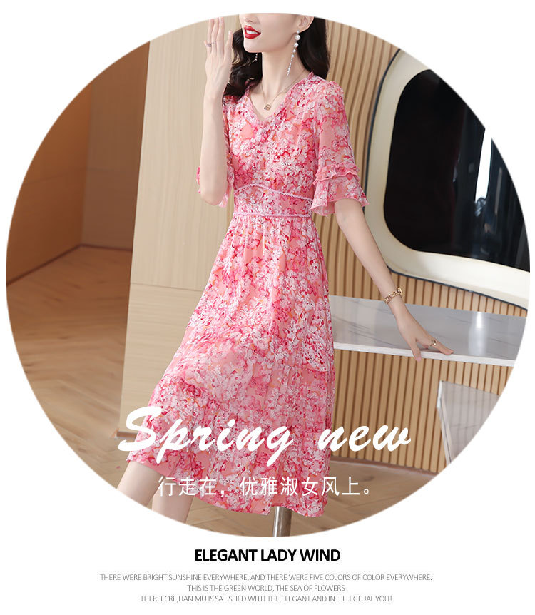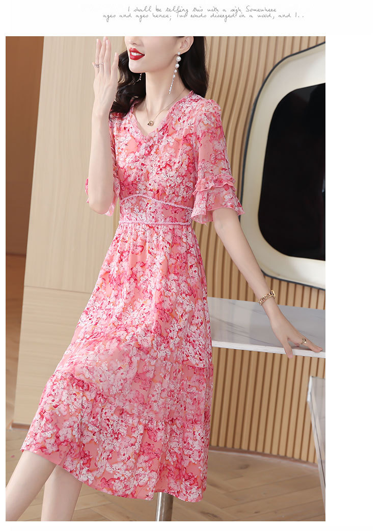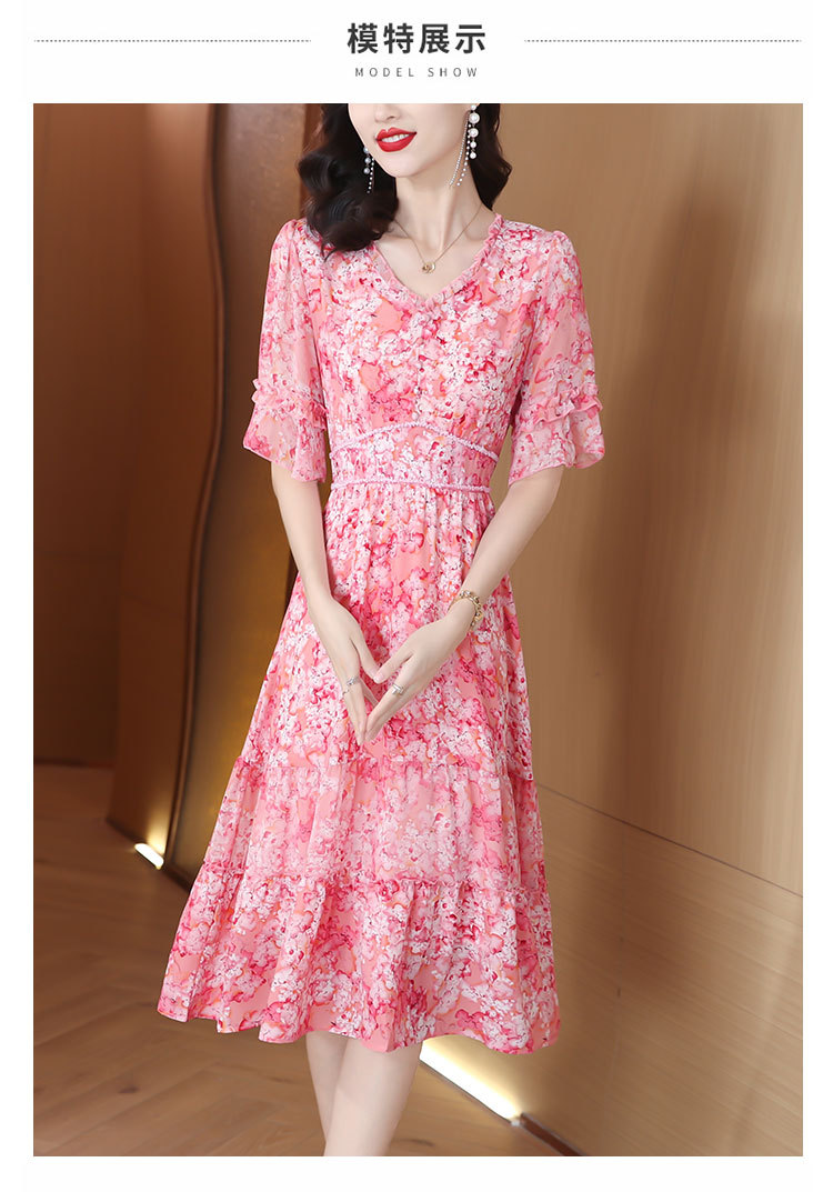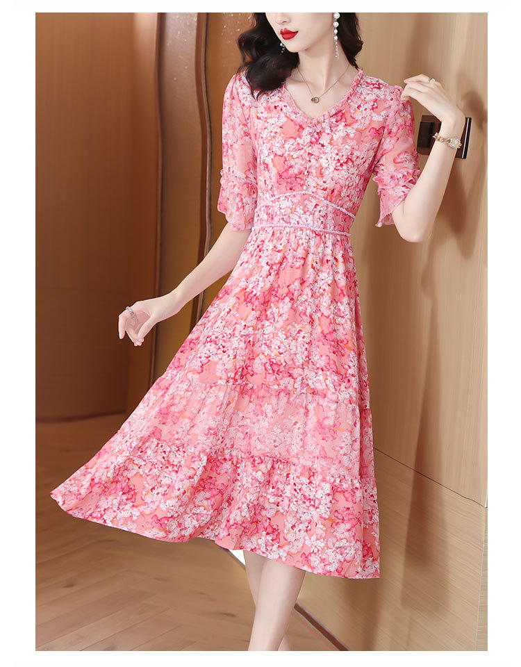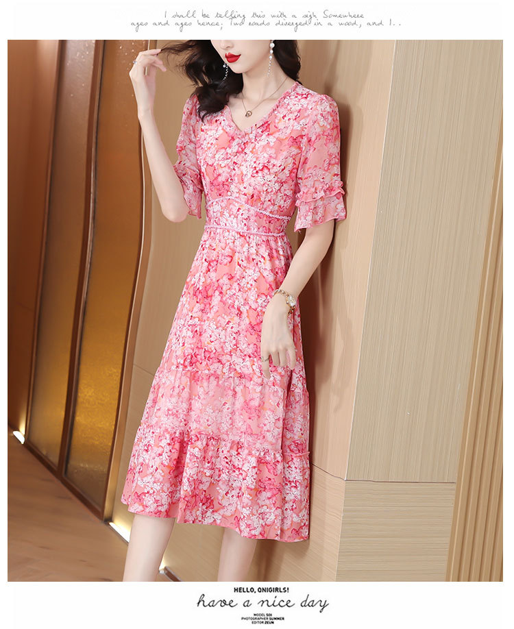 气质优雅,夏季新款百搭减龄显瘦大摆裙女法式淑女风碎花连衣裙AHM-ryfs6275