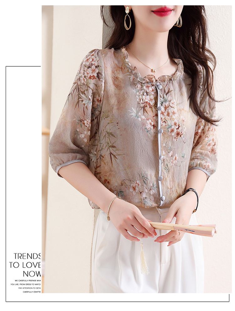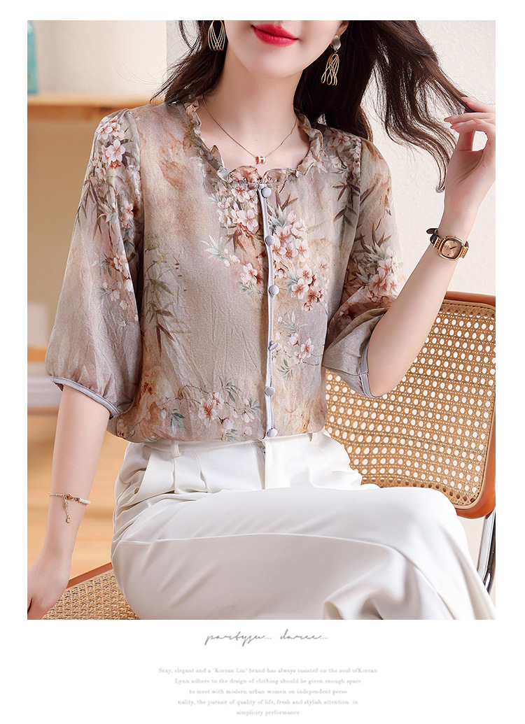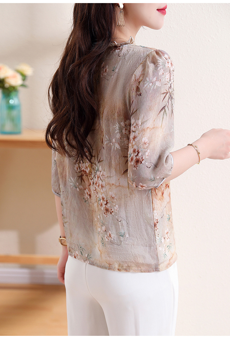 红色刺绣衬衫女设计感小众2022春季立领衬衣七分袖上衣 KIS1002