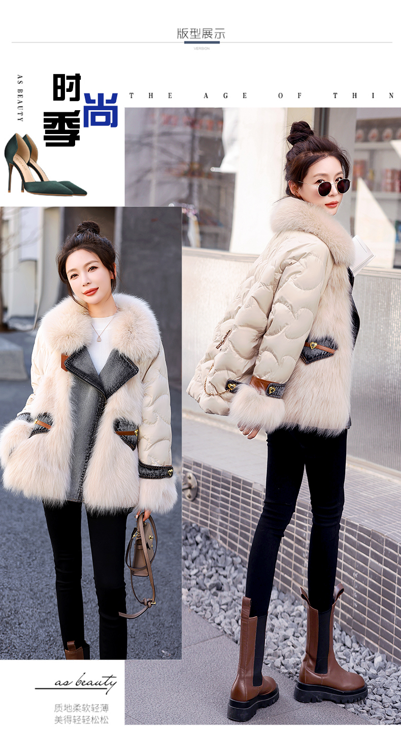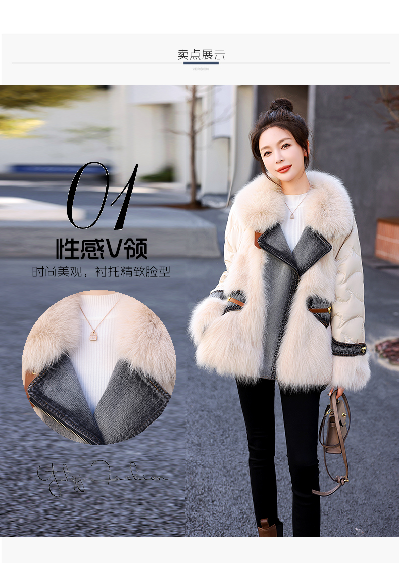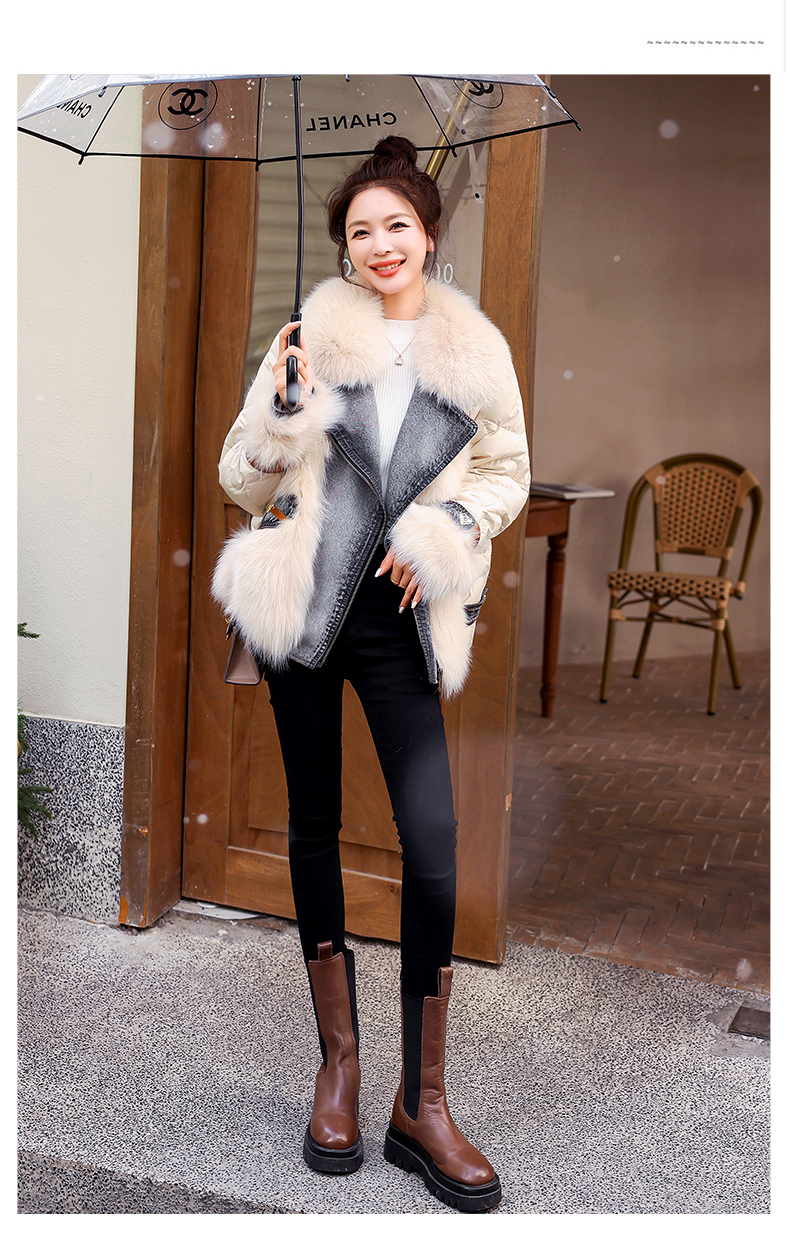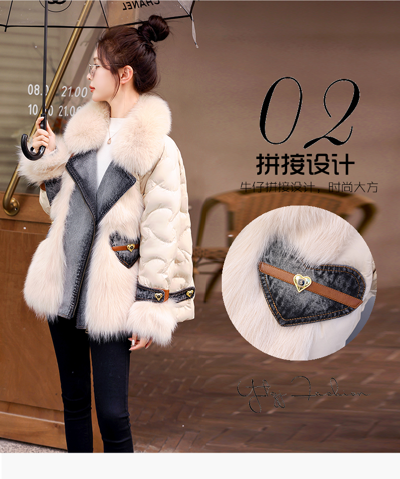 大毛领羽绒服,时尚潮流拼接牛仔外套HR-CZJ3173