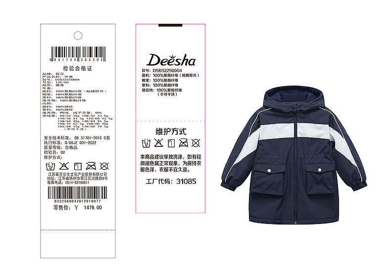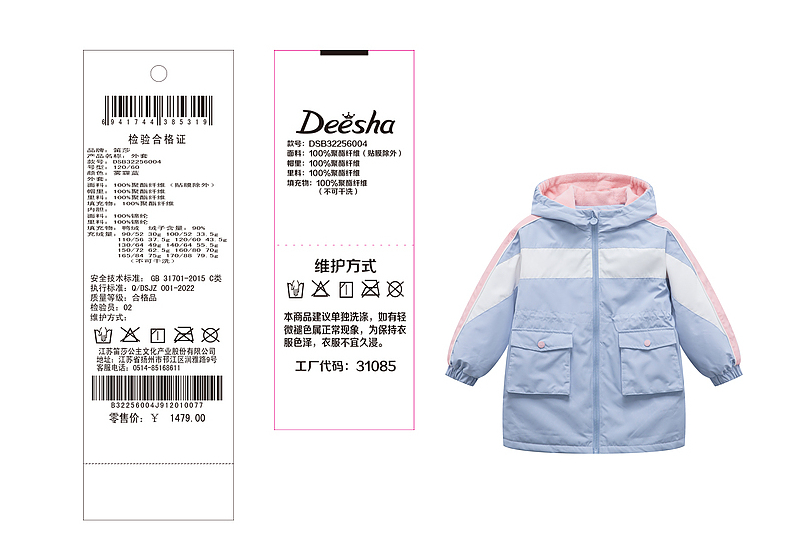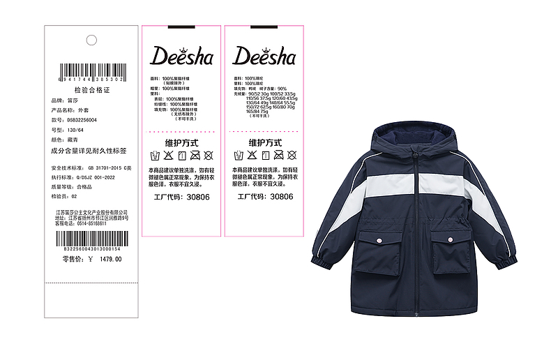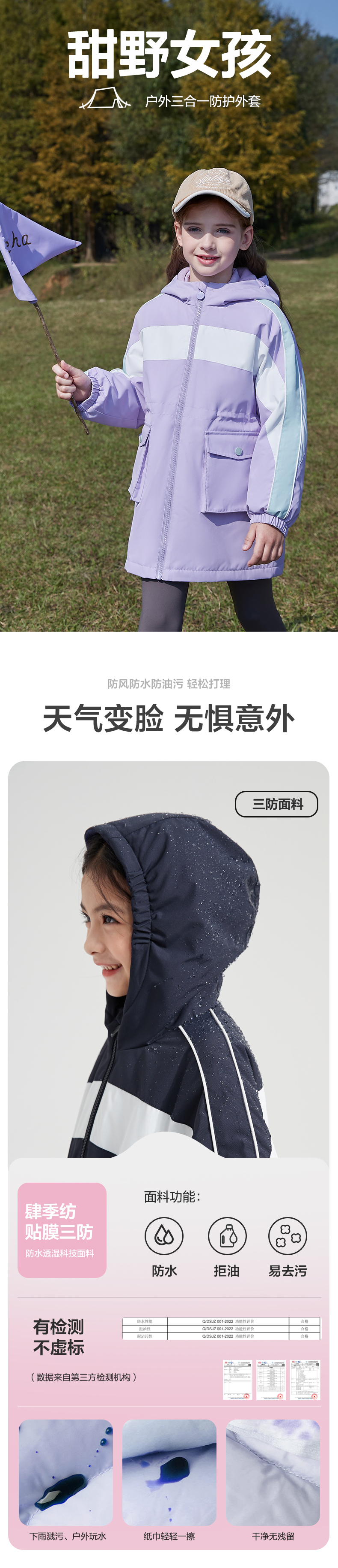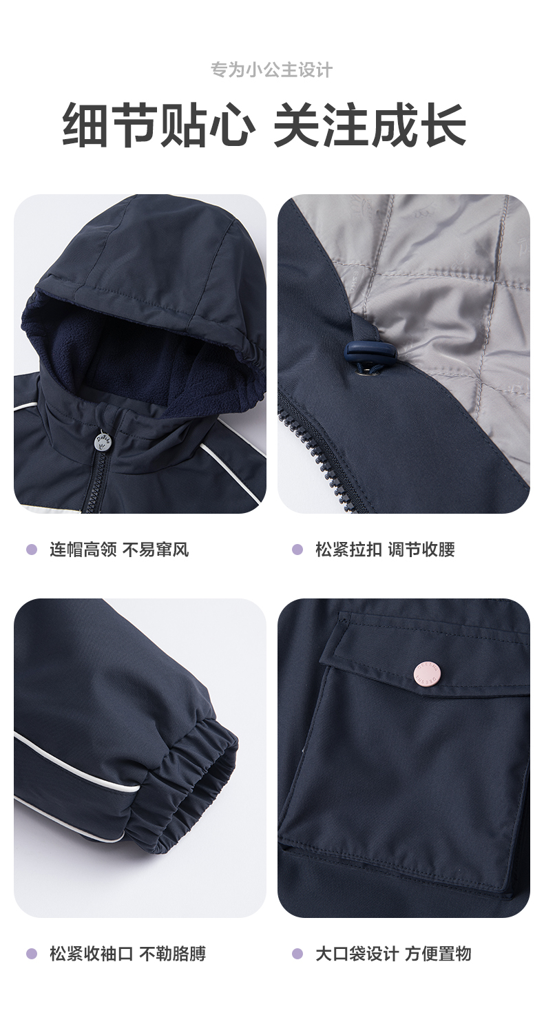 笛莎Deesha 童装女童外套2023新款三防冲锋衣外套