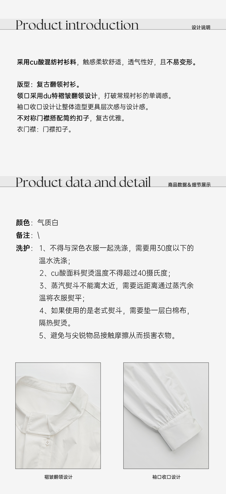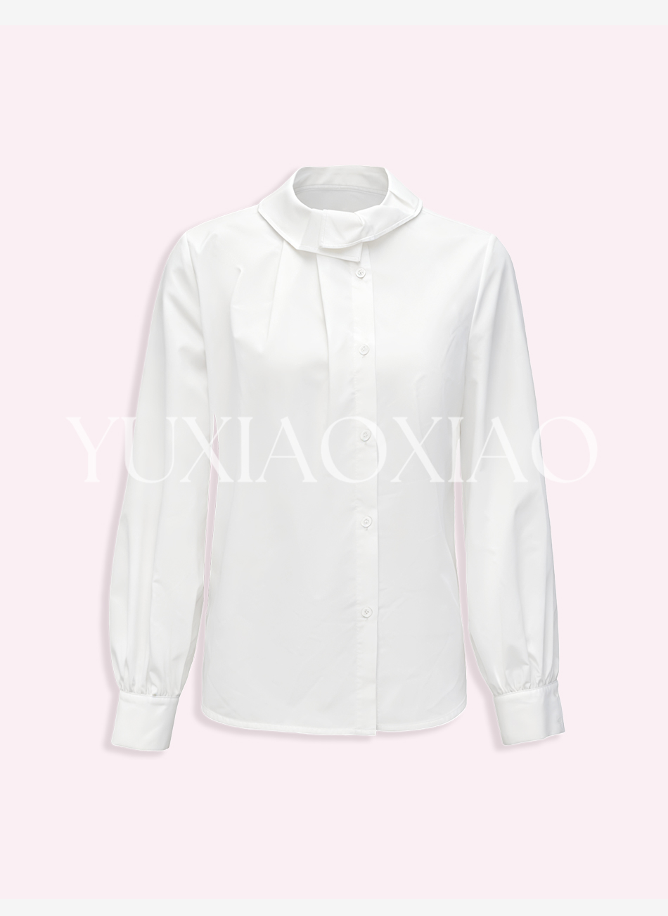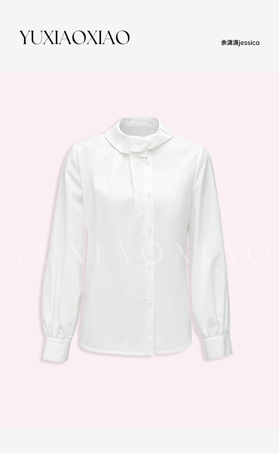 余潇潇【高智格调】时尚百搭醋酸混纺复古优雅简约宽松翻领衬衫
