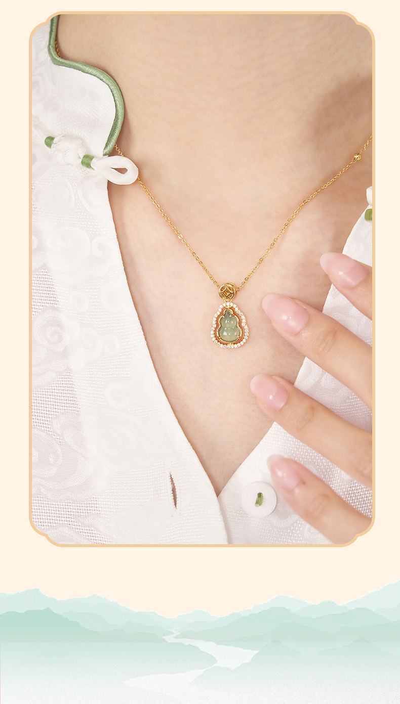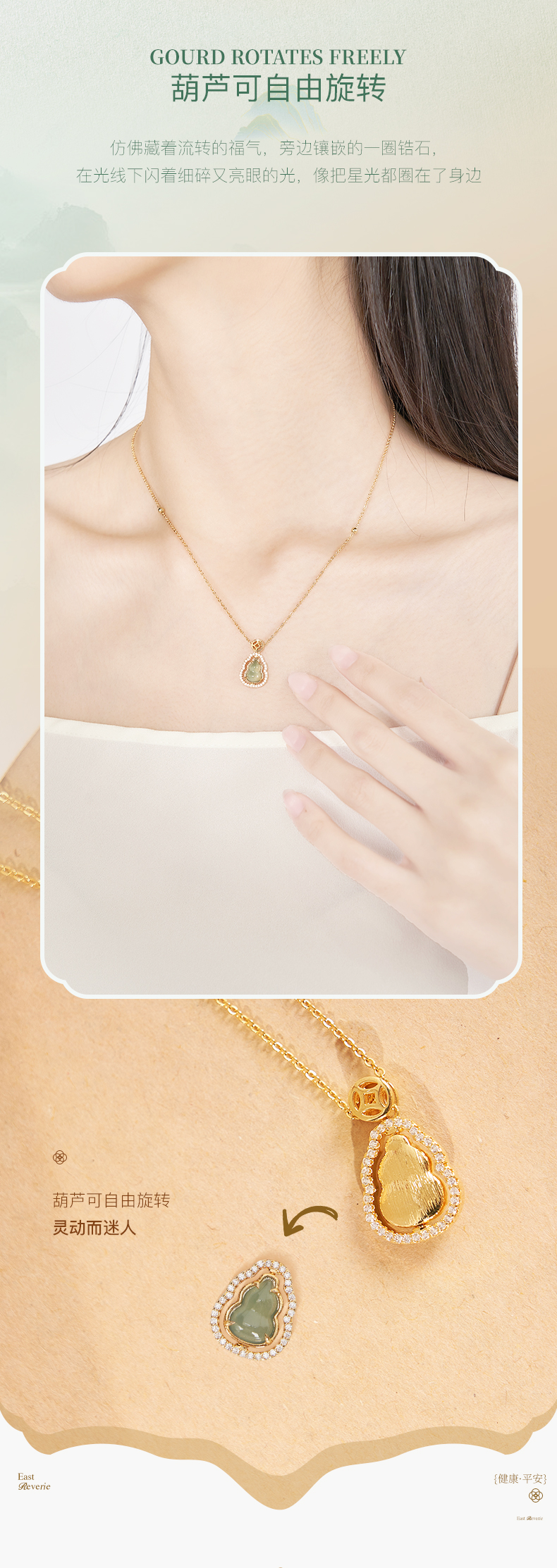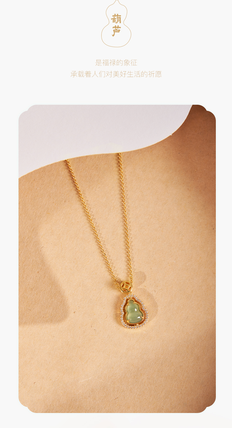 大英博物馆 东方梦境系列 翡翠葫芦 可旋转双面 佩戴项链