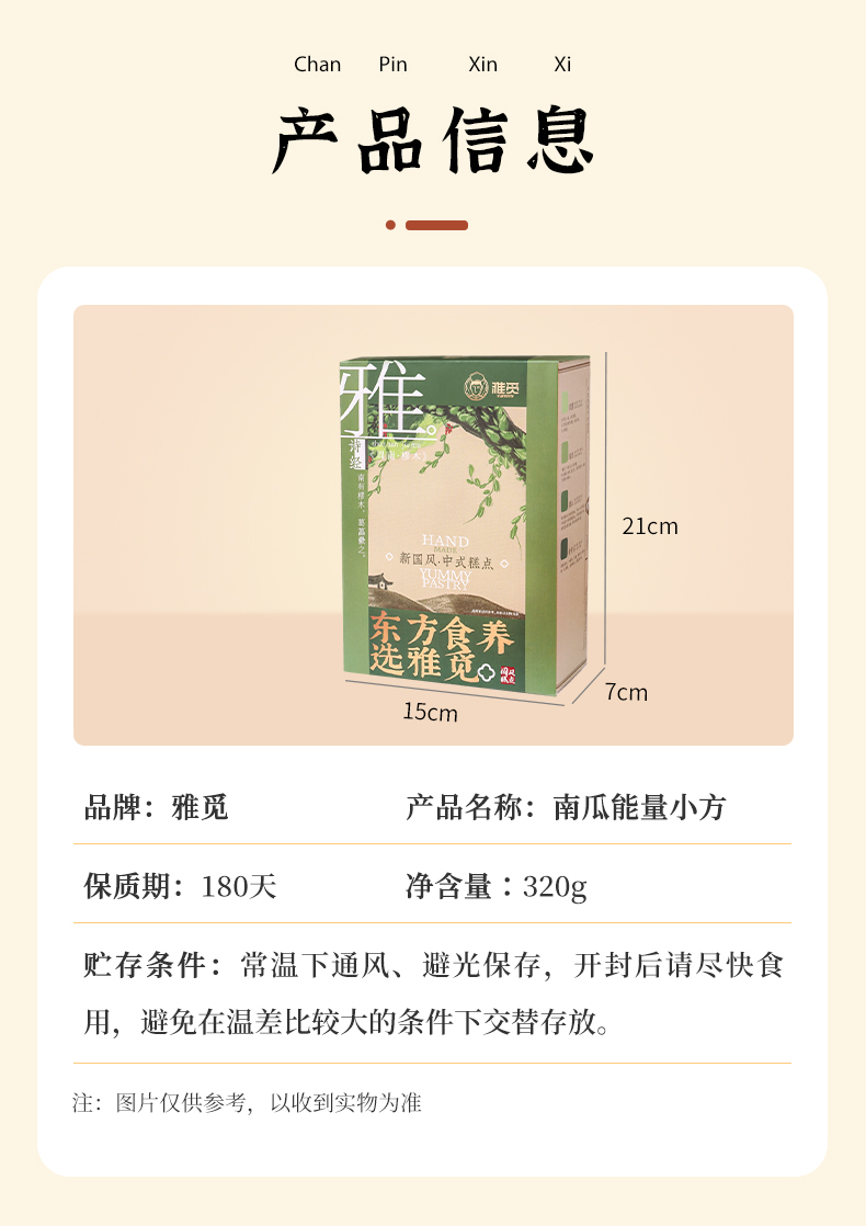 雅觅 南瓜小方饼320g/16枚 香甜绵密,甜而不腻,吃起来松软可口,商务办公小吃,孕妇儿童休闲食品~