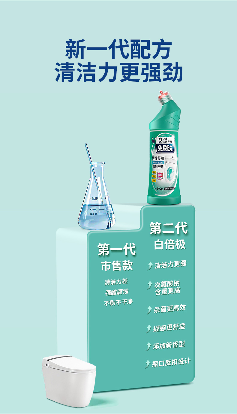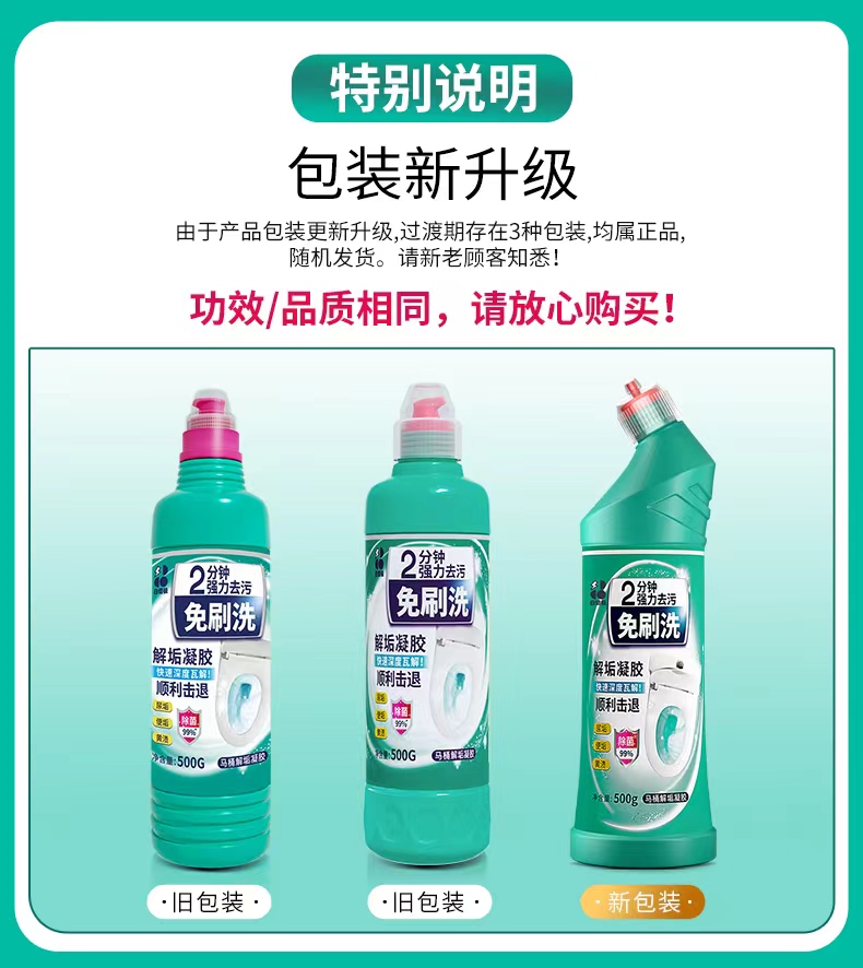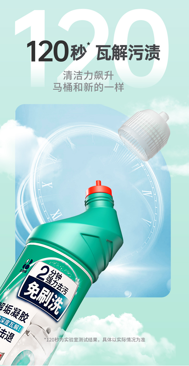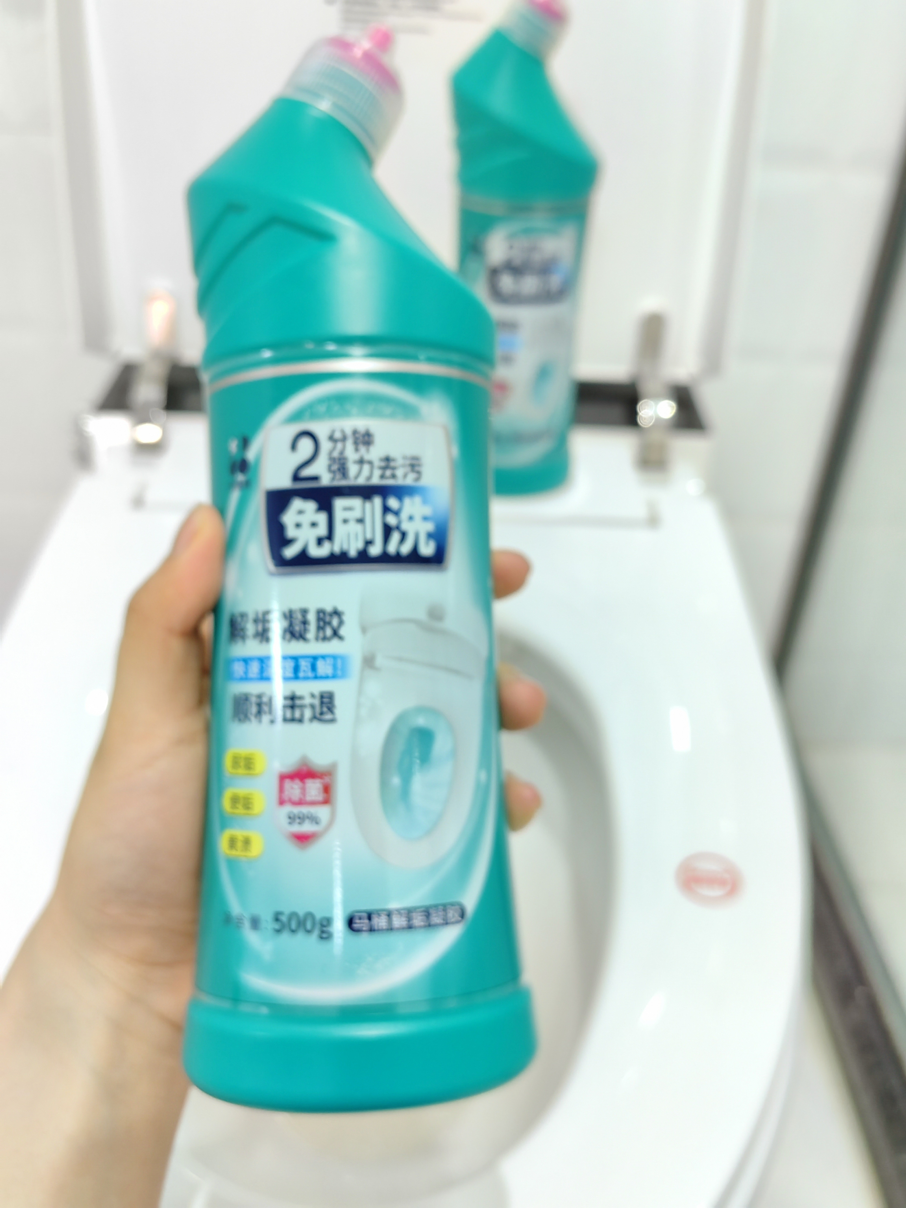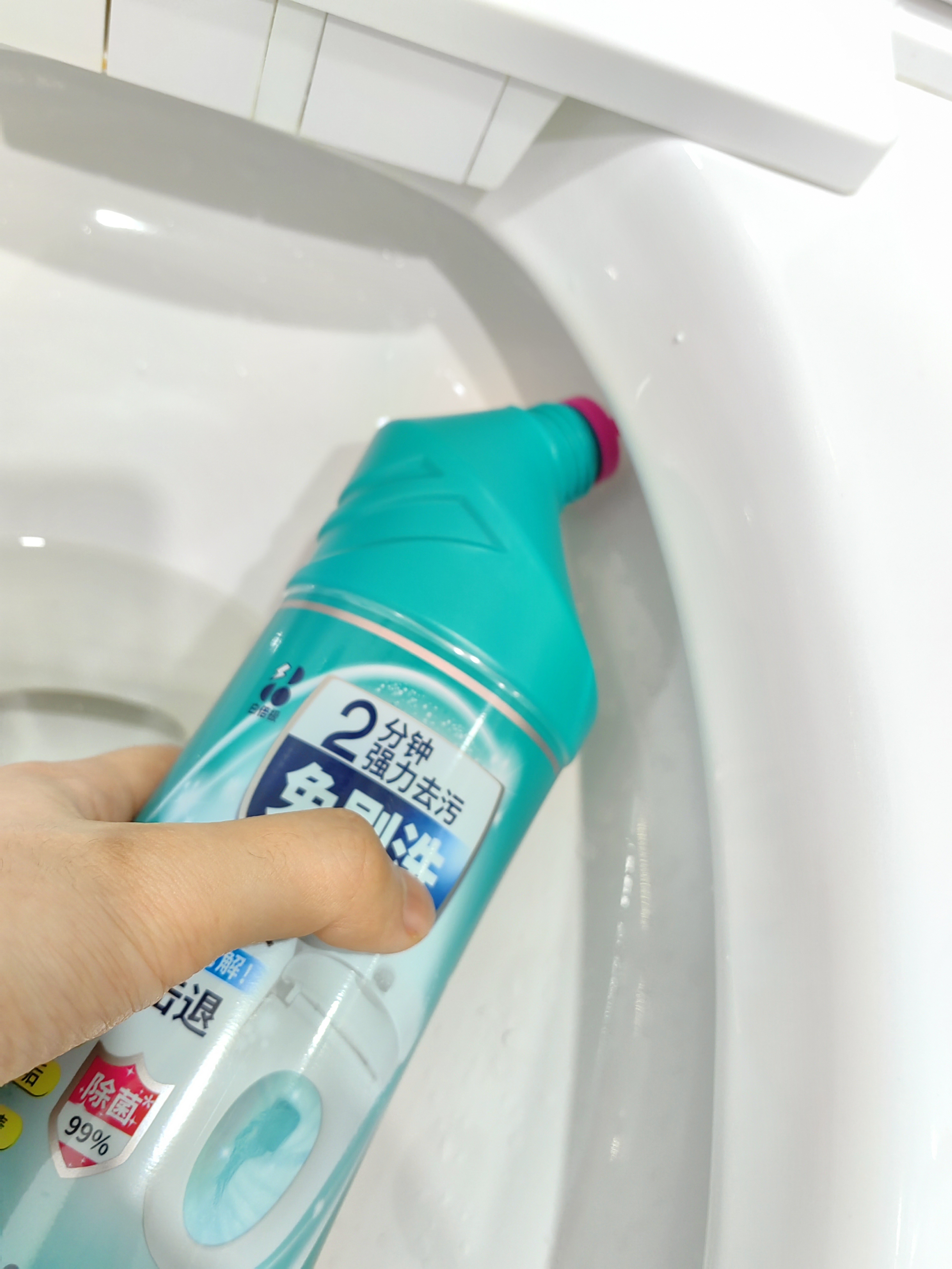 🎈含强力去垢因子,2分钟快速除垢高效杀菌清污垢,可以轻松去除尿渍、污渍、黄斑等,而且不伤马桶瓷釉面弯嘴设计,方便接触凹槽,360度清洁死角,不刺鼻,安全健康符合国家检测标准