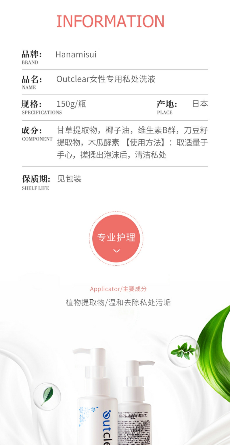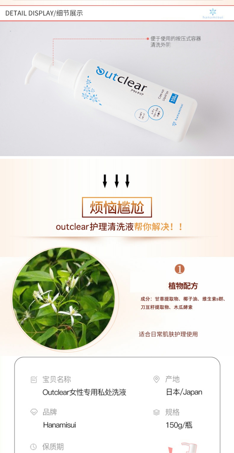 【YZ】outclear女性私处护理洗液清洁除异味止痒清洗液