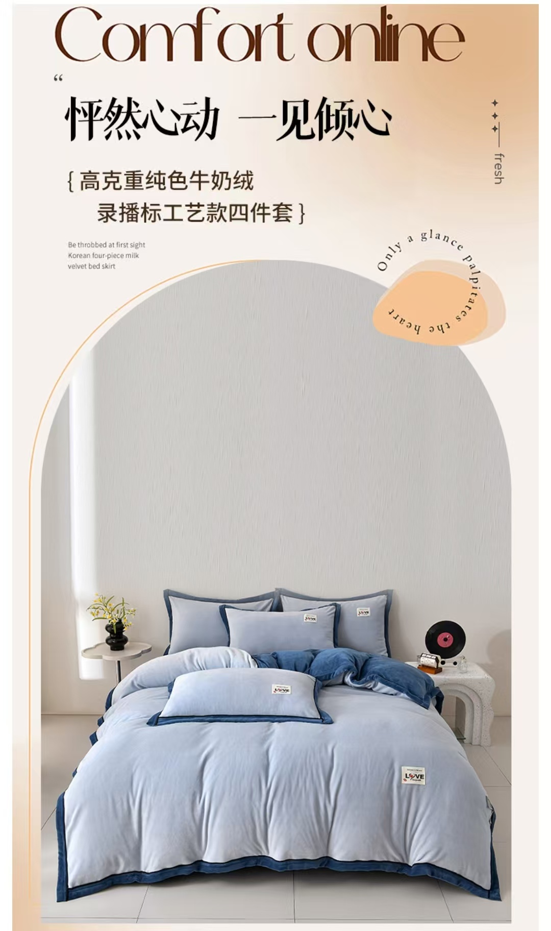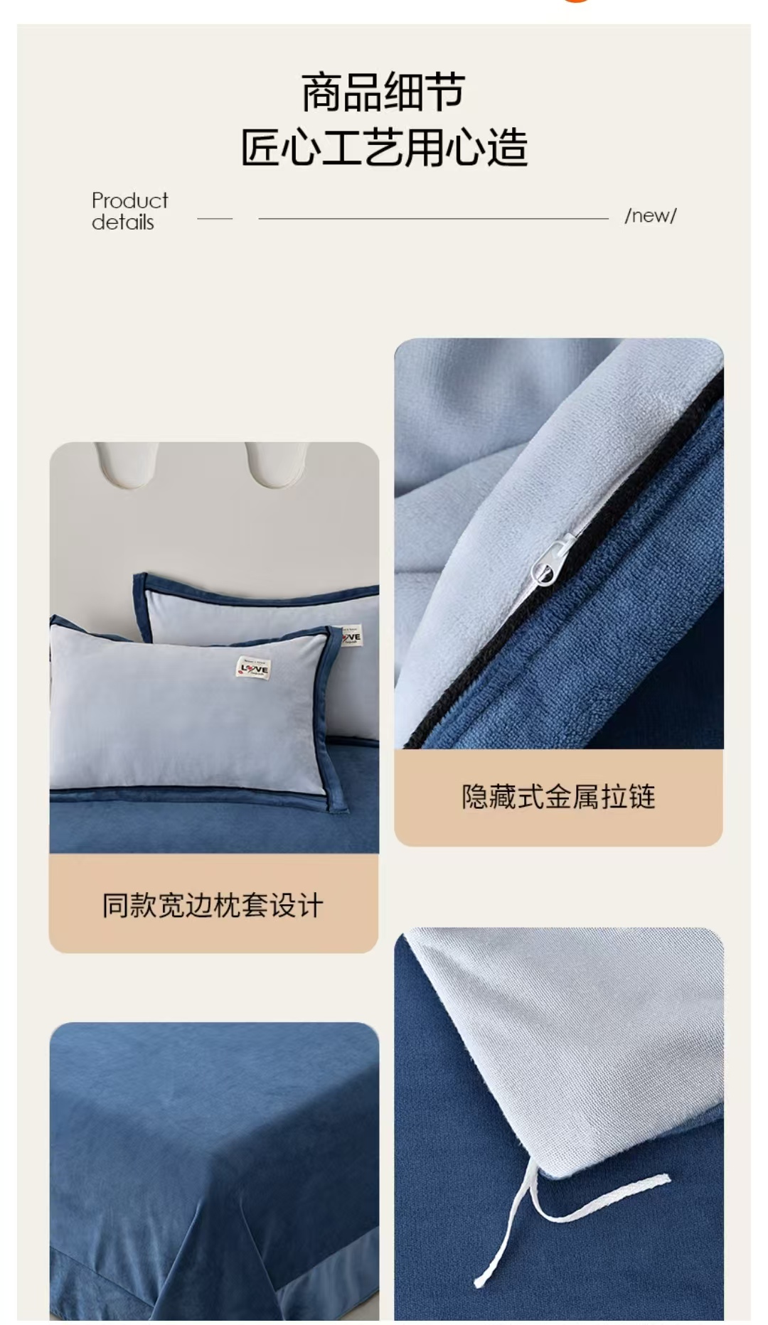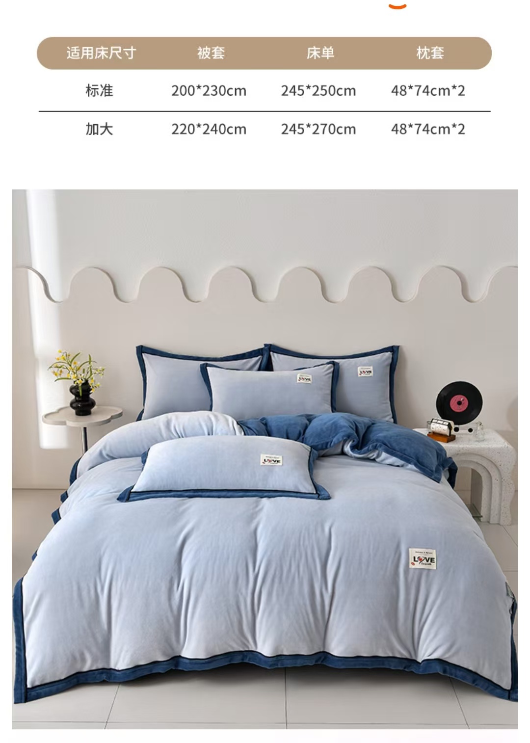 精选高克重纯色牛奶绒宽边四件套G110200001