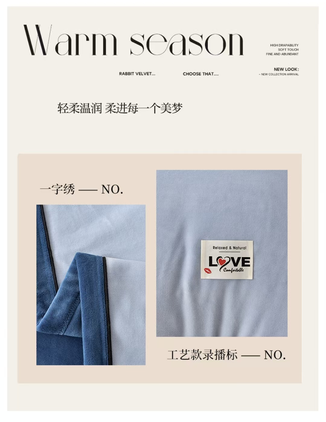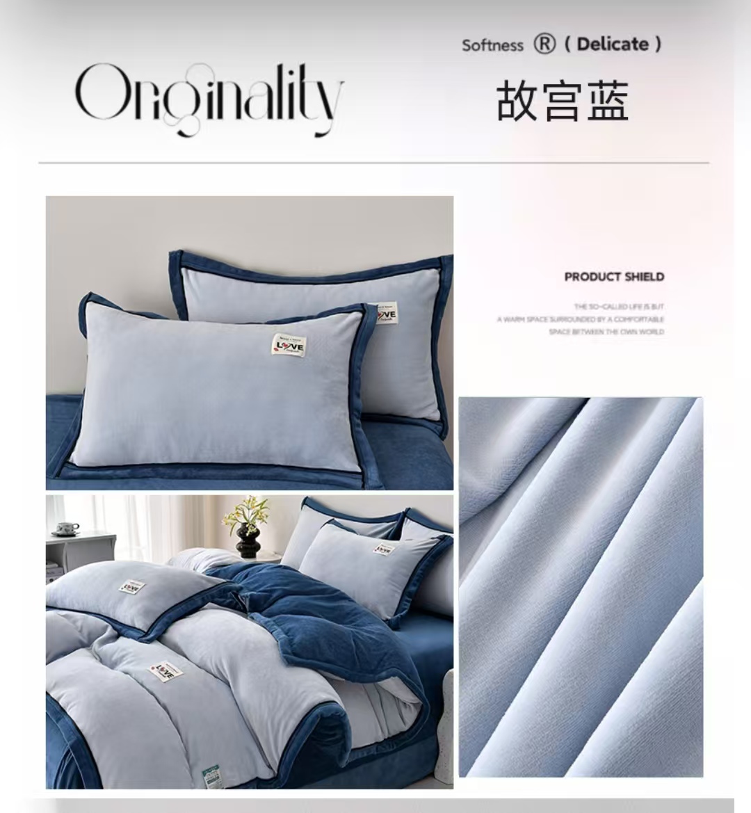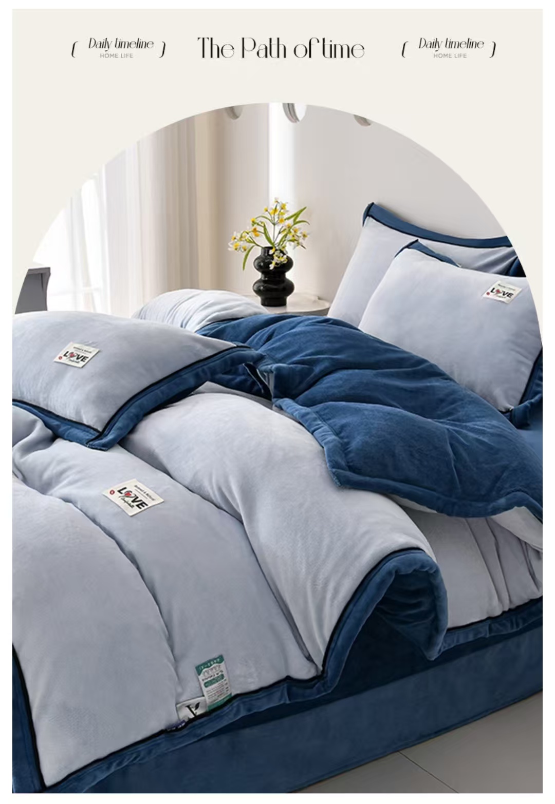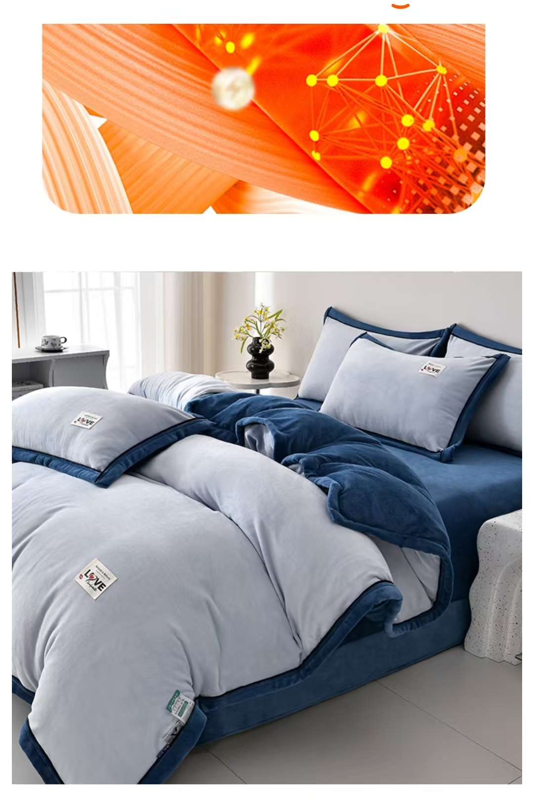 精选高克重纯色牛奶绒宽边四件套G110200001
