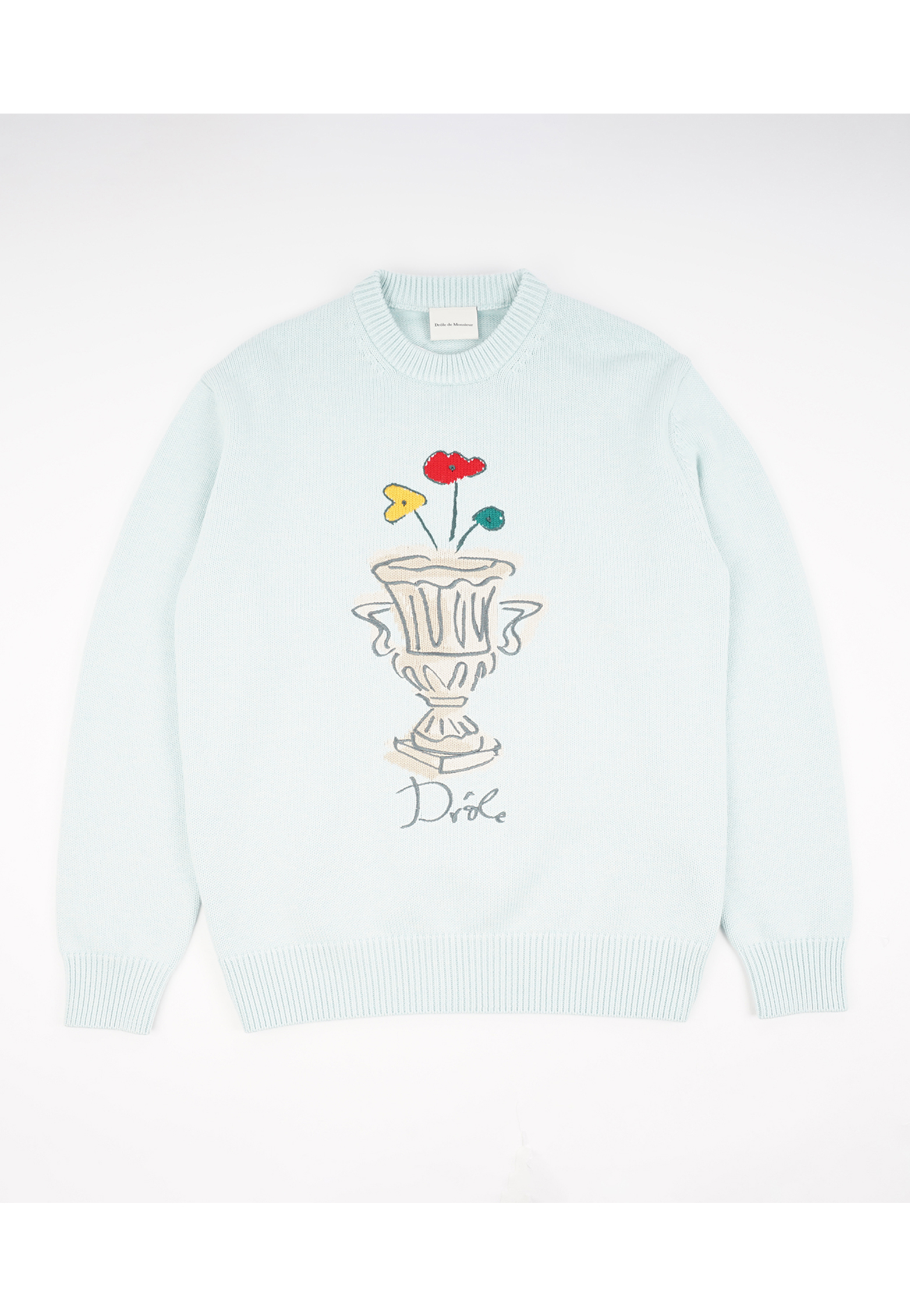 Drole de Monsieur La Maille Vase 花瓶刺绣圆领毛衣