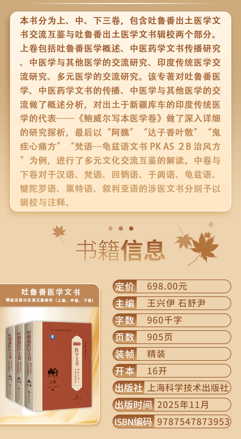 书名:吐鲁番医学文书辑校注译与交流互鉴研究(上卷、中卷、下卷)