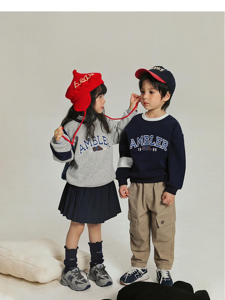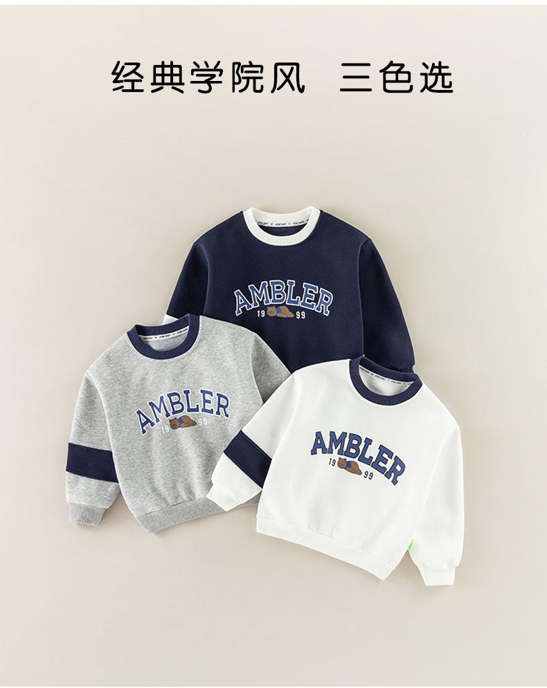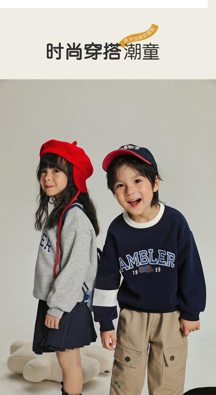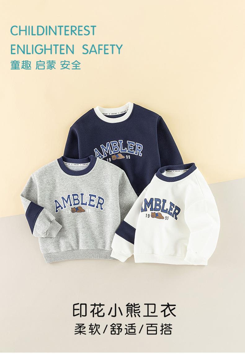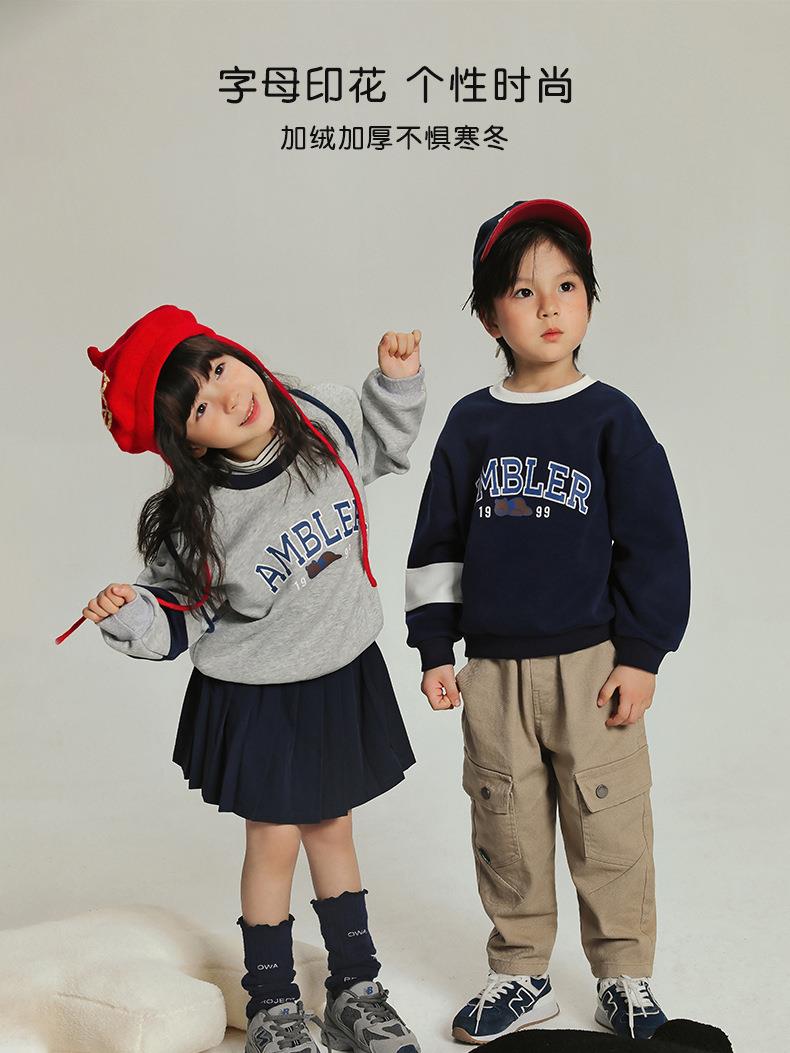 男童加绒卫衣女童小熊字母上衣儿童春季韩版套头衫宝宝冬款a类
