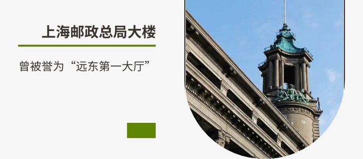 上海邮政总局于1924建成启用,现已转型成为博物馆。城堡式的鈡楼,粉绿色的尖顶,时钟与它的历史和流过的时光一样让人感到厚重。营业厅宽敞明亮,富丽堂皇,当时有“远东第一大厅”之誉。