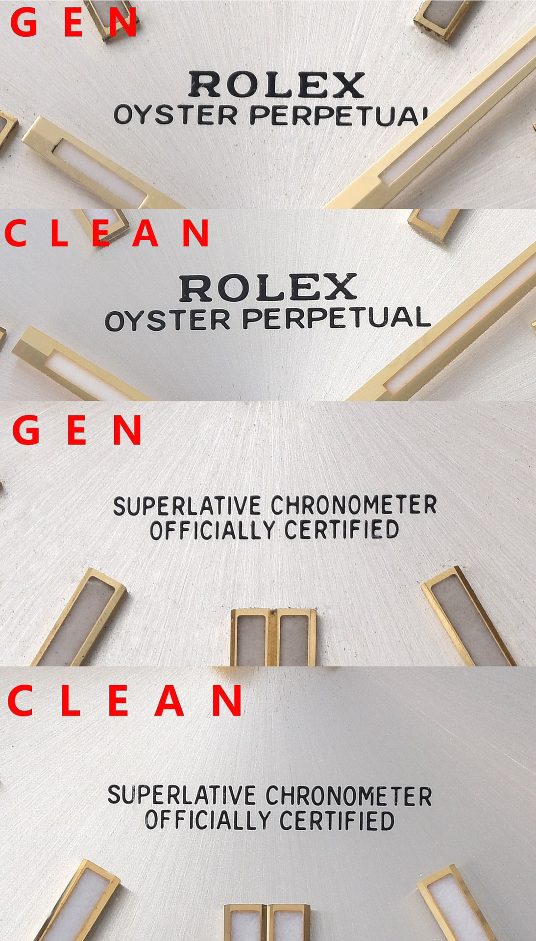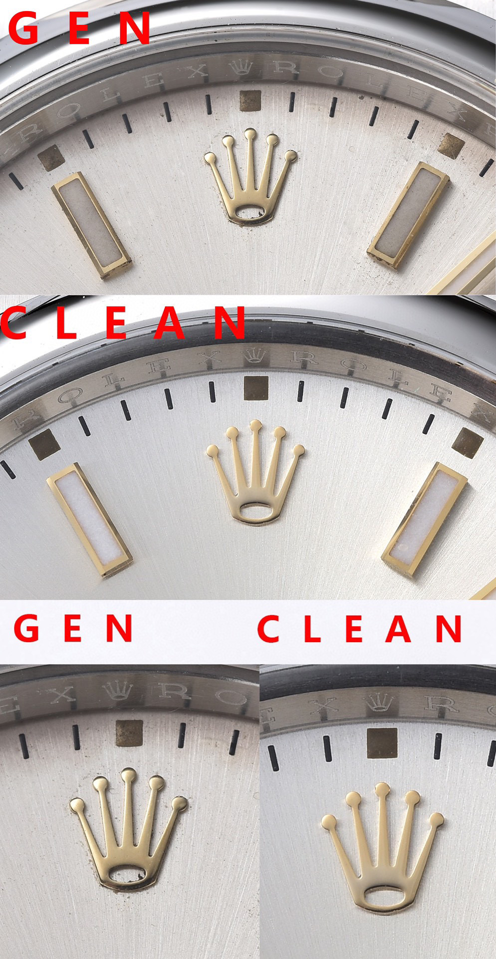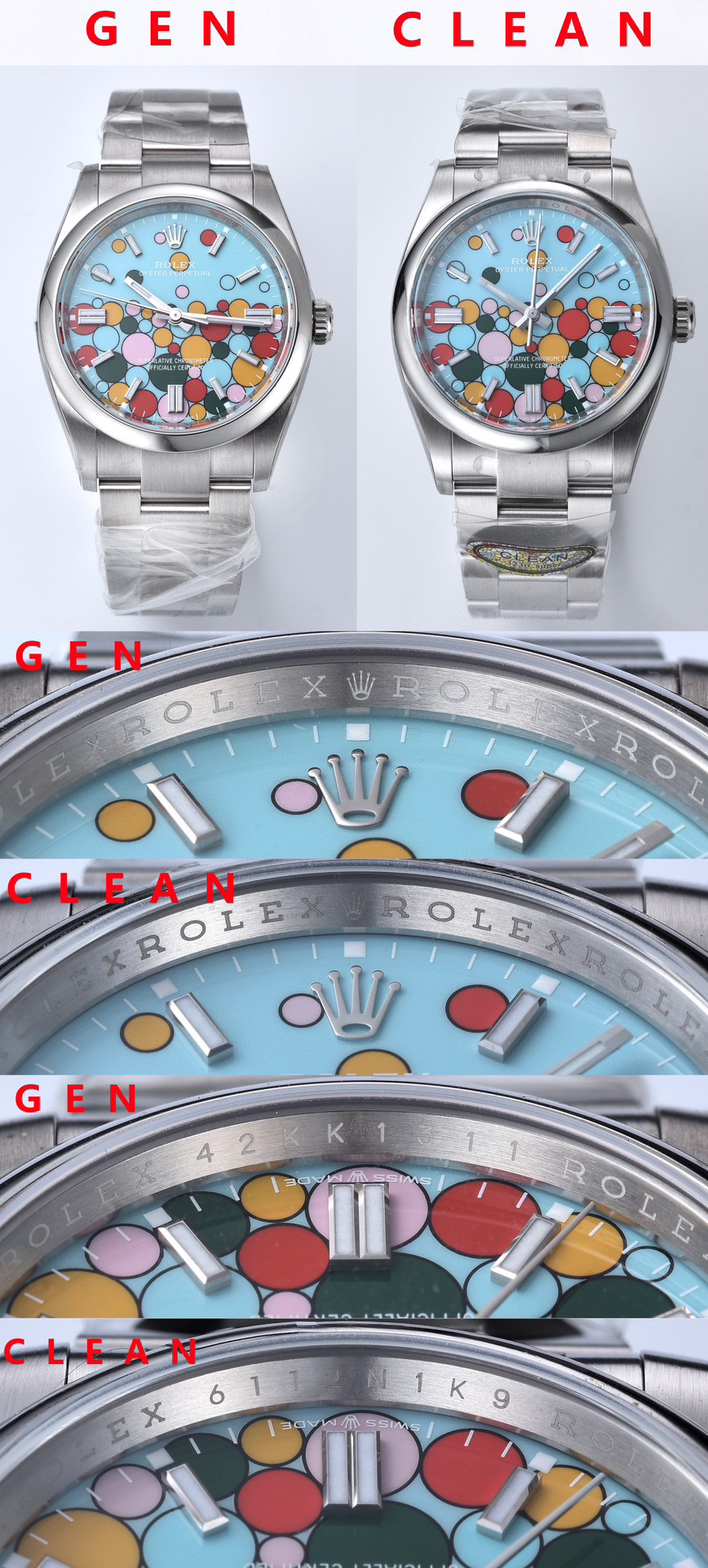 本次41mm恒动搭载3230机芯 完全一比一开模 随后附上真假对比 所有配件相似度极高,特别是蒂芙尼蓝色 花费近20w元一比一拆解 。熟悉的表友都知道,同款银面真品价格才5w左右,但是蒂芙尼蓝因为配色的特殊性 价格一度被炒到20w+ clean对于细节的追求大家有目共睹。表扣上的logo也是工艺的一大突破。cnc雕刻,形状规整 并且内侧伴有亮光处理。