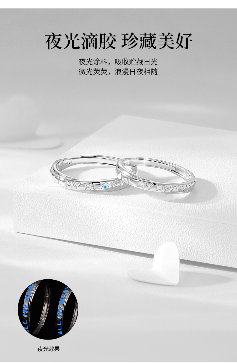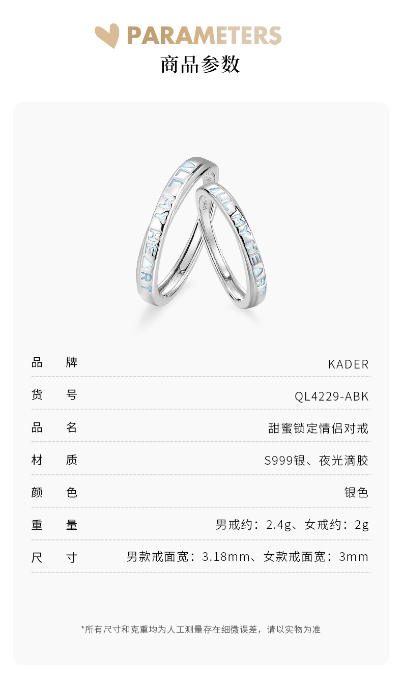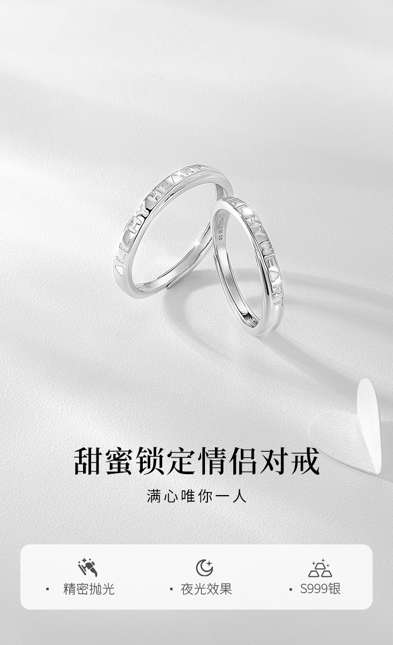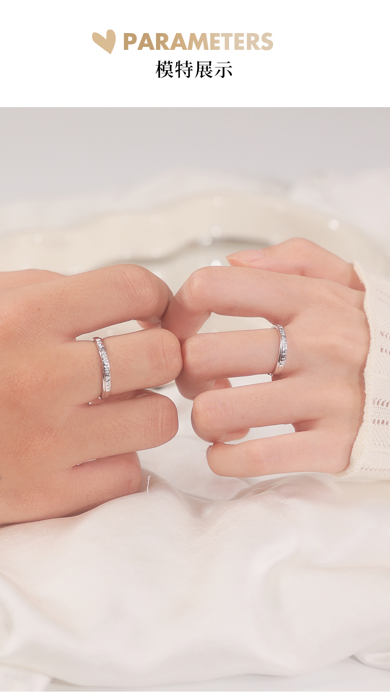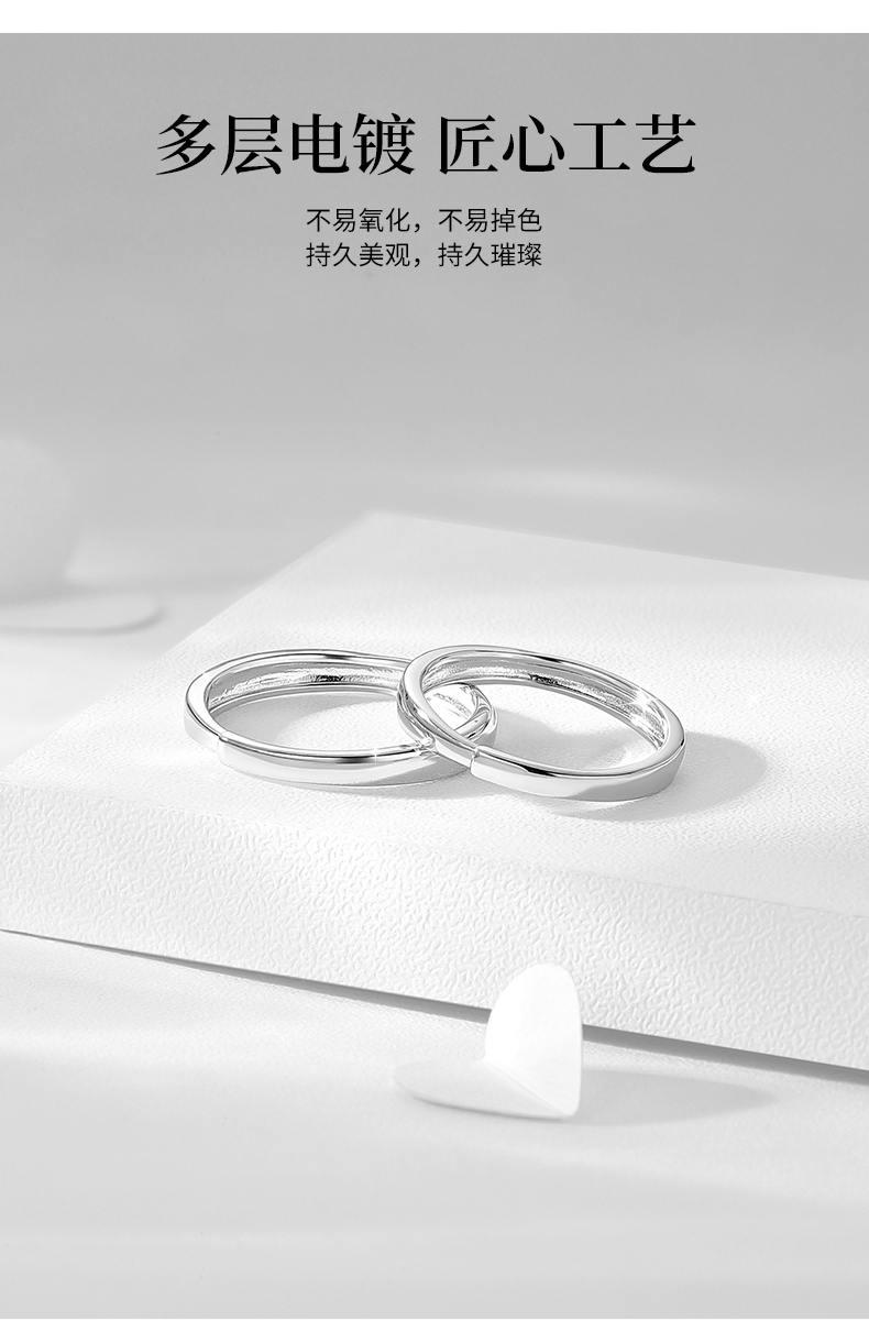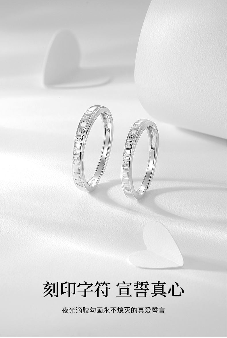 【999足银|发光】卡蒂罗KADER 甜蜜锁定情侣对戒 小众原创设计轻奢英文独特爱意氛围感可调节素圈一对 爱意交织恋爱告白周年纪念日