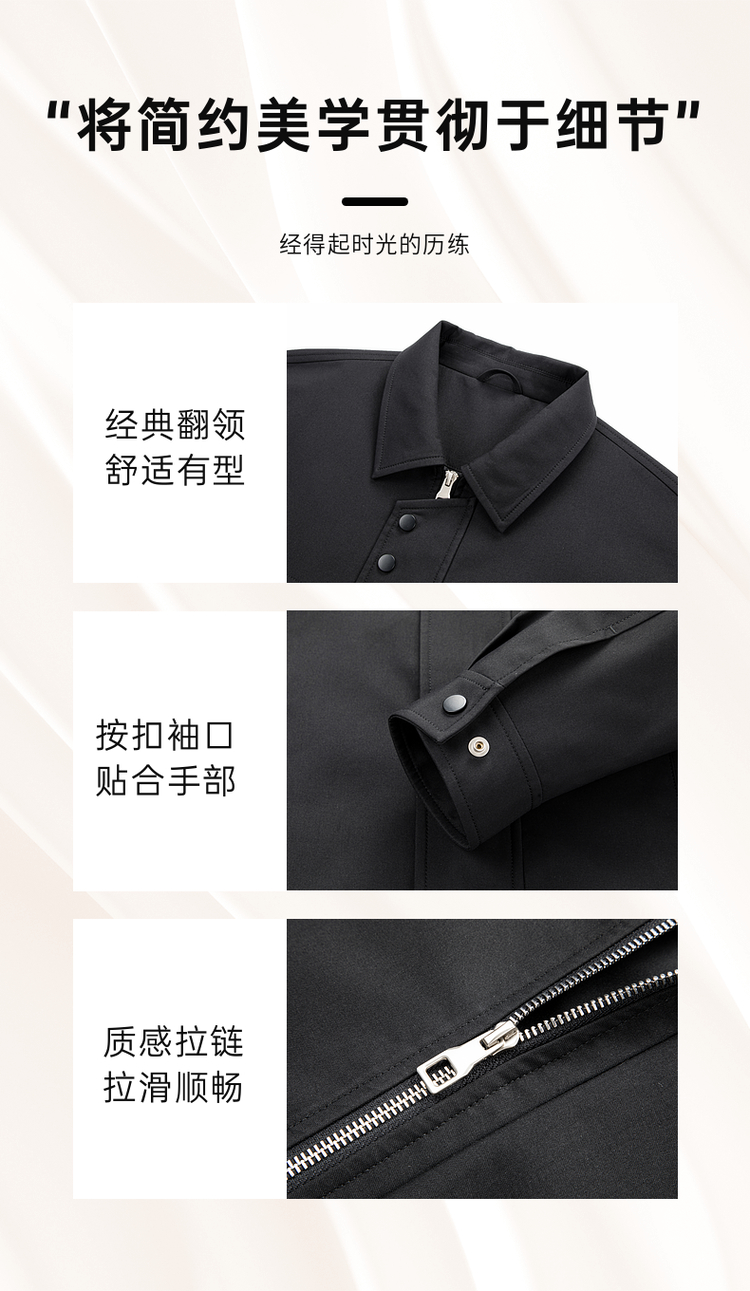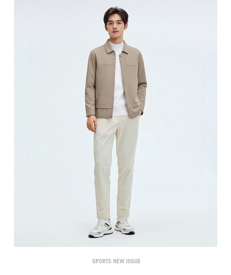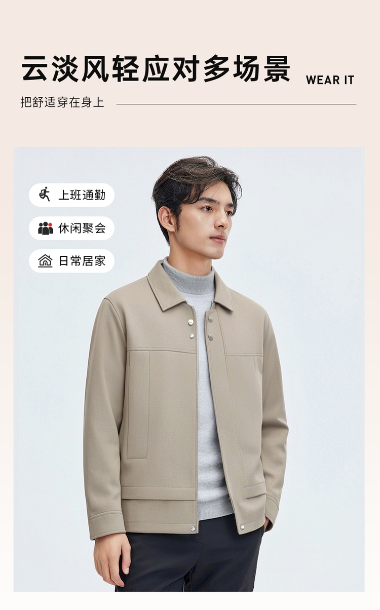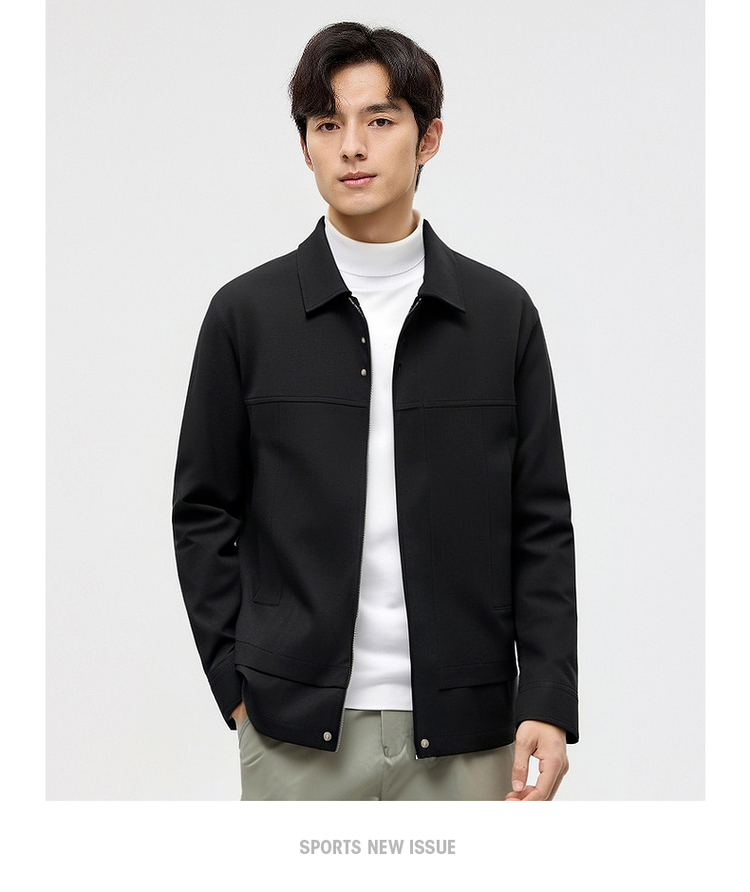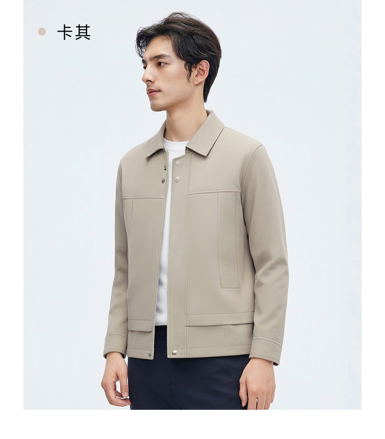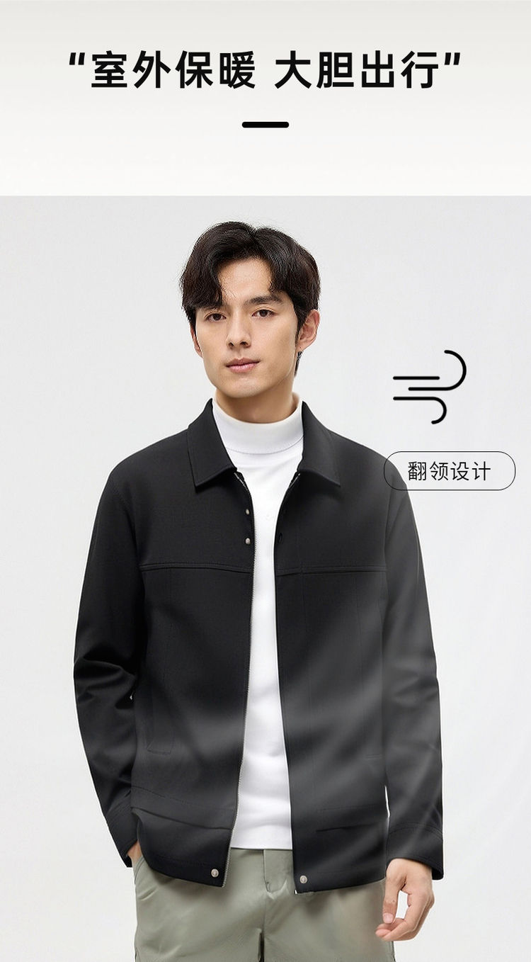 圣得西翻领夹克男装2025春秋新款纯色户外通勤防风男士休闲外套
