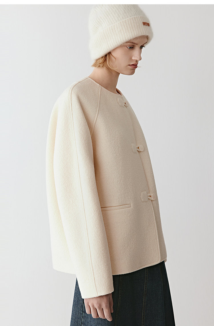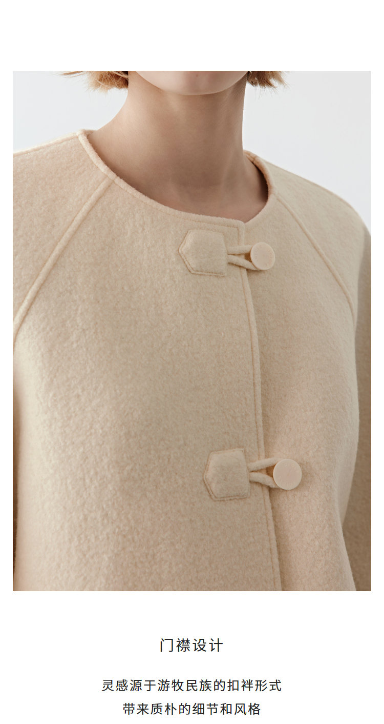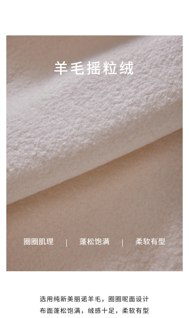 选用纯新美丽诺羊毛,圈圈呢面设计