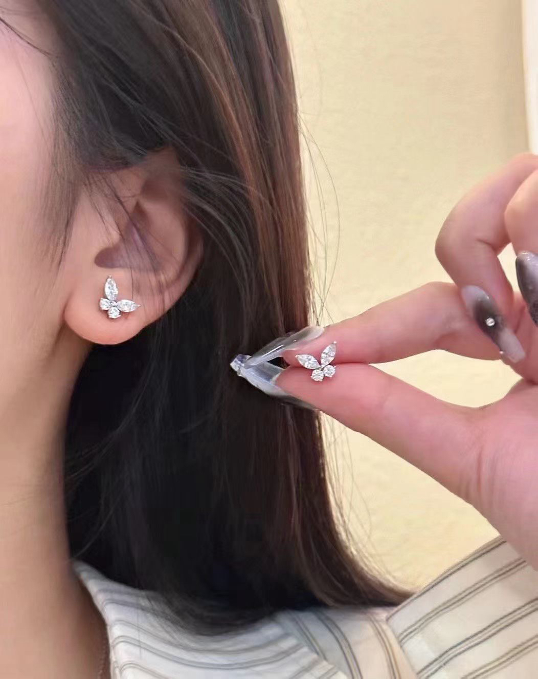 小小的耳环上面点缀一个灵动的小蝴蝶