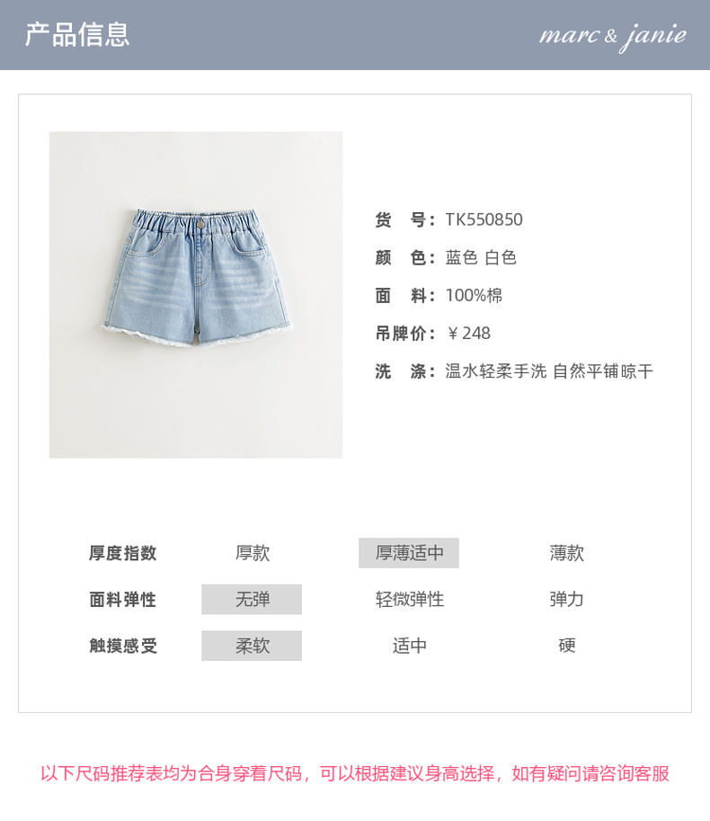 马克珍妮女童时尚休闲软牛仔短裤 儿童裤子2025年夏装新款550850