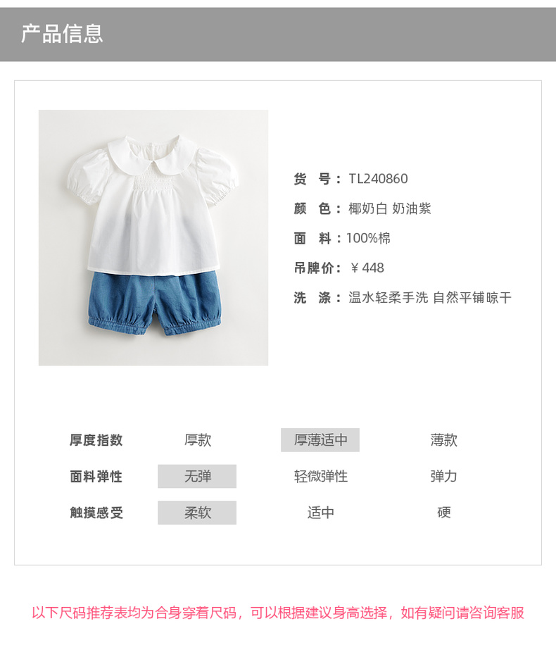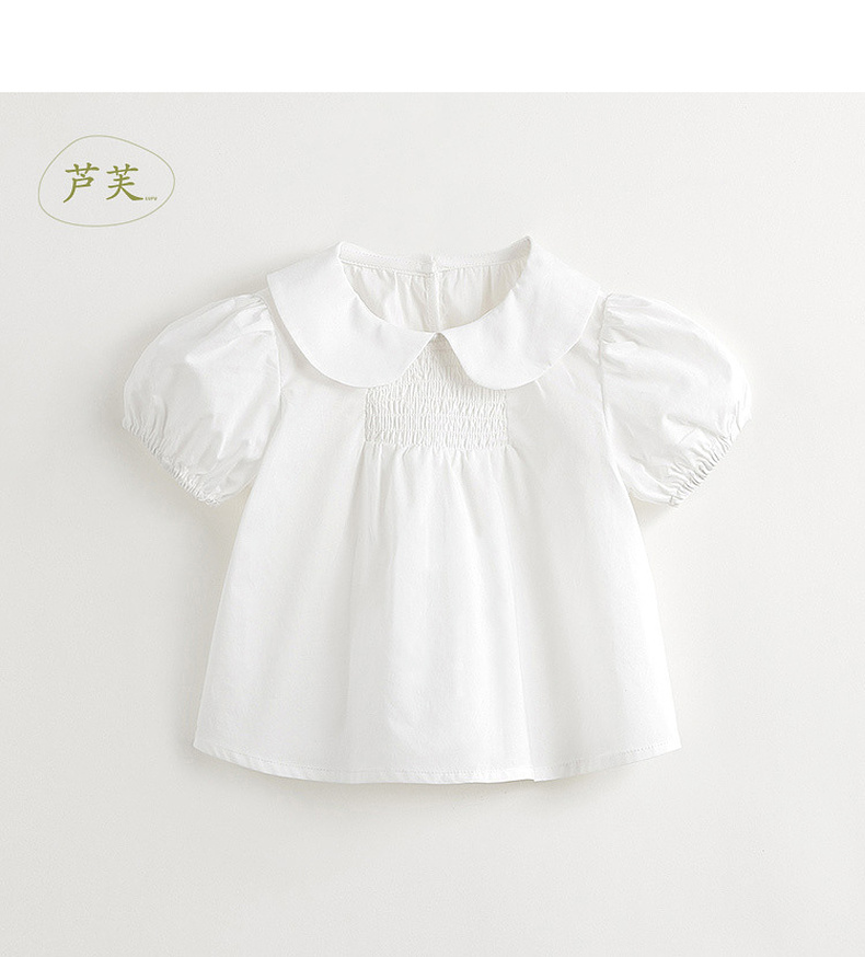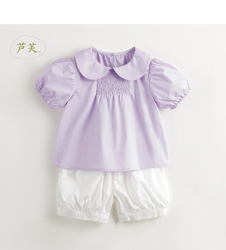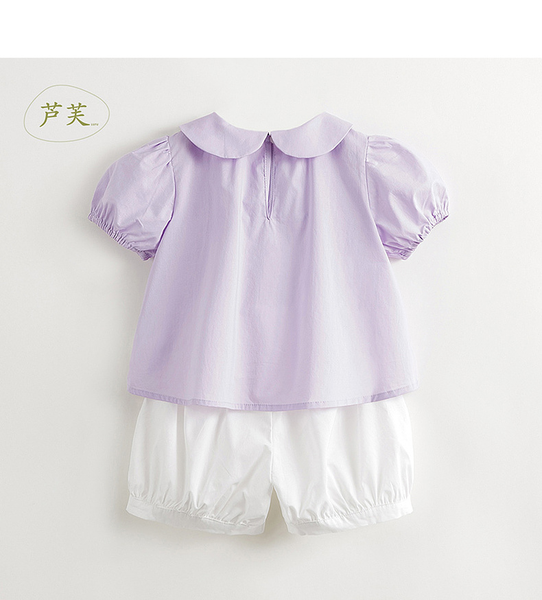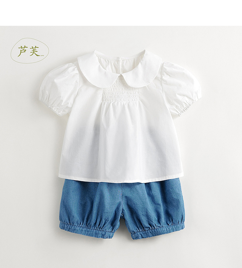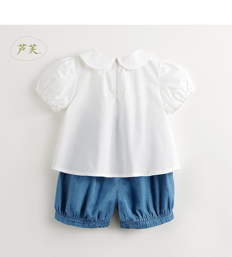 【马克珍妮 芦芙】夏装新款女童甜美娃娃领纯棉泡泡袖套装 240860