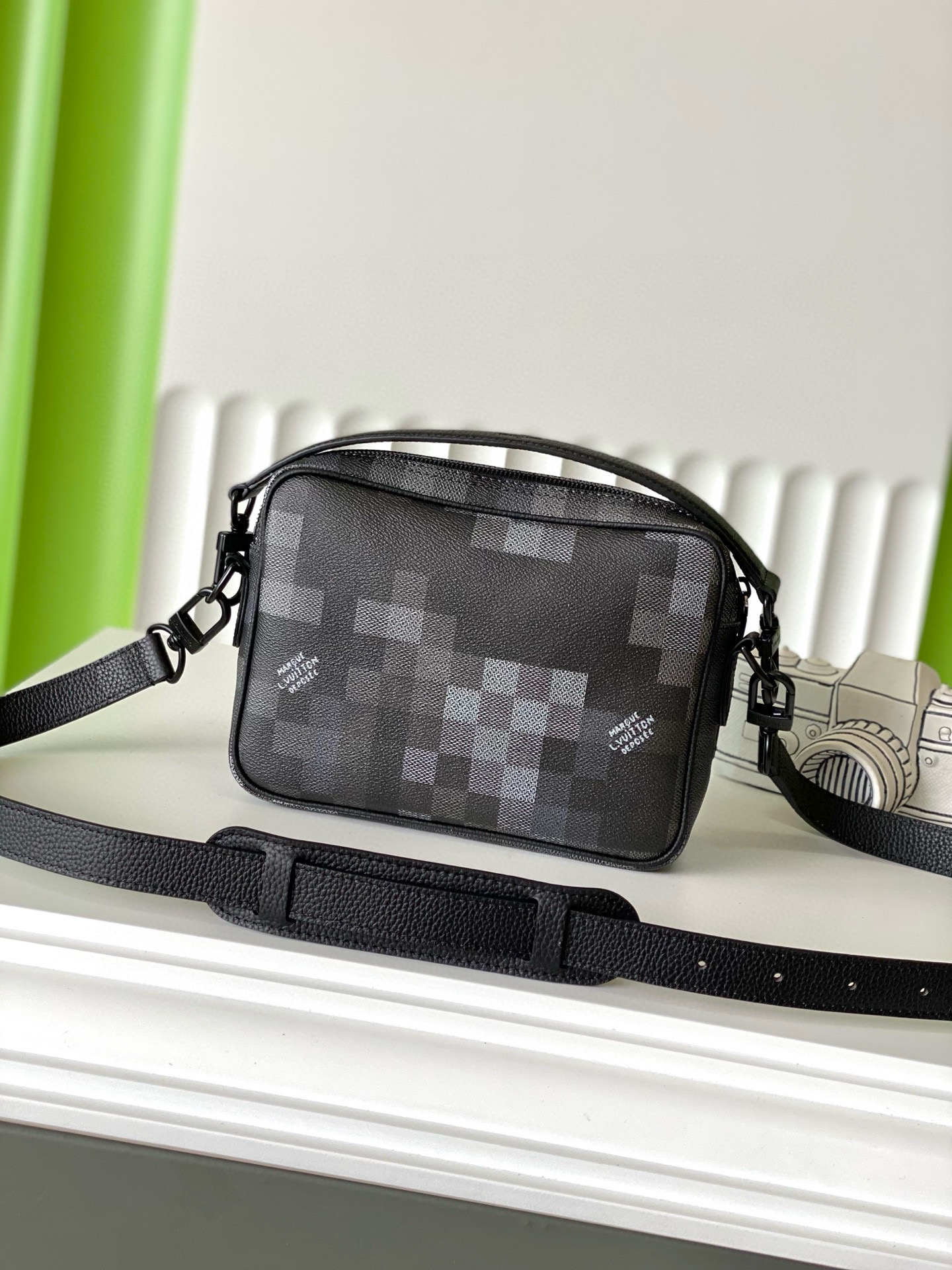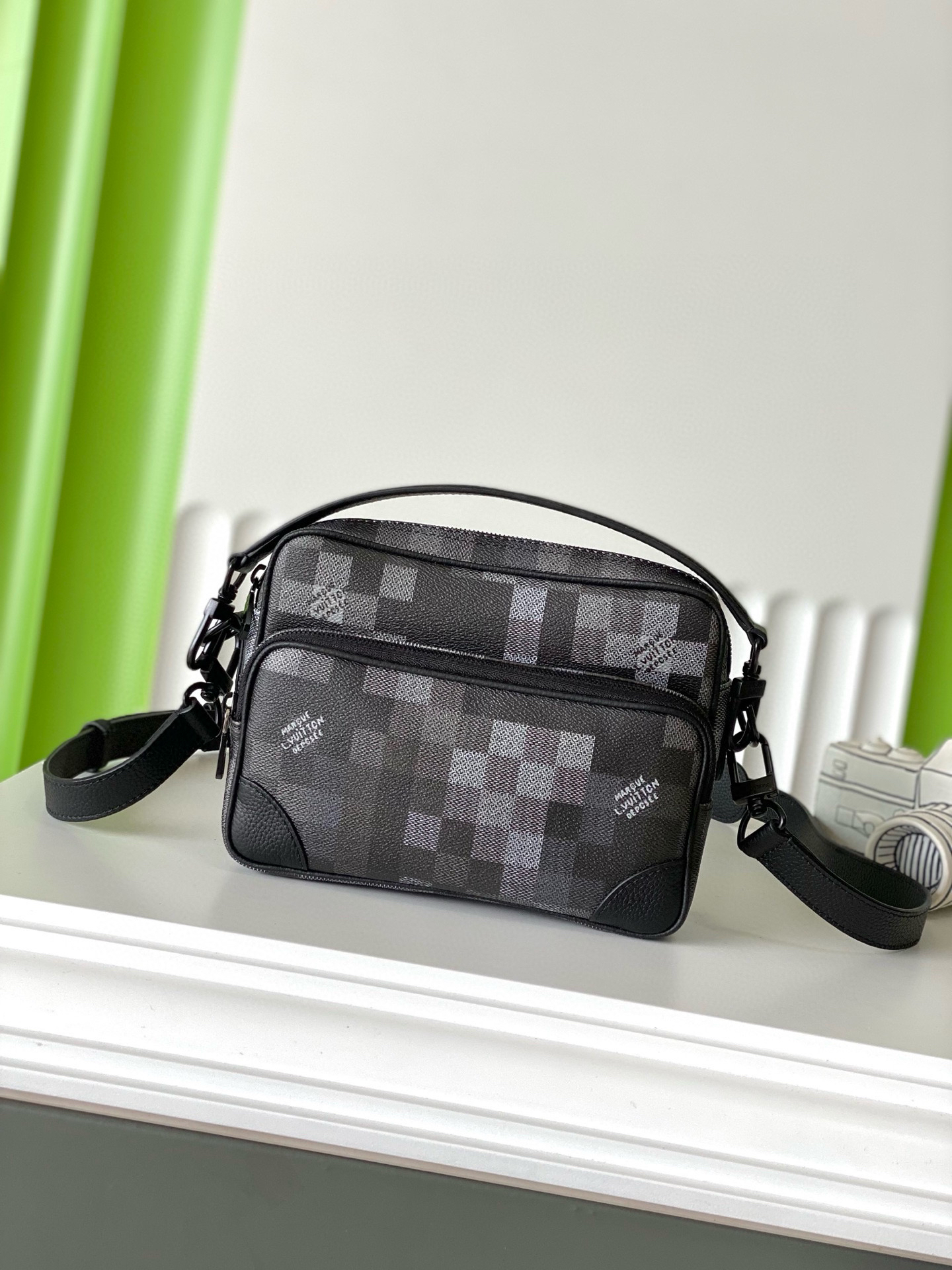 夏季特惠💰760 原单LV M14988 尺寸:25×17.5×11cm NIL 黑格迷彩邮差包 变码芯片