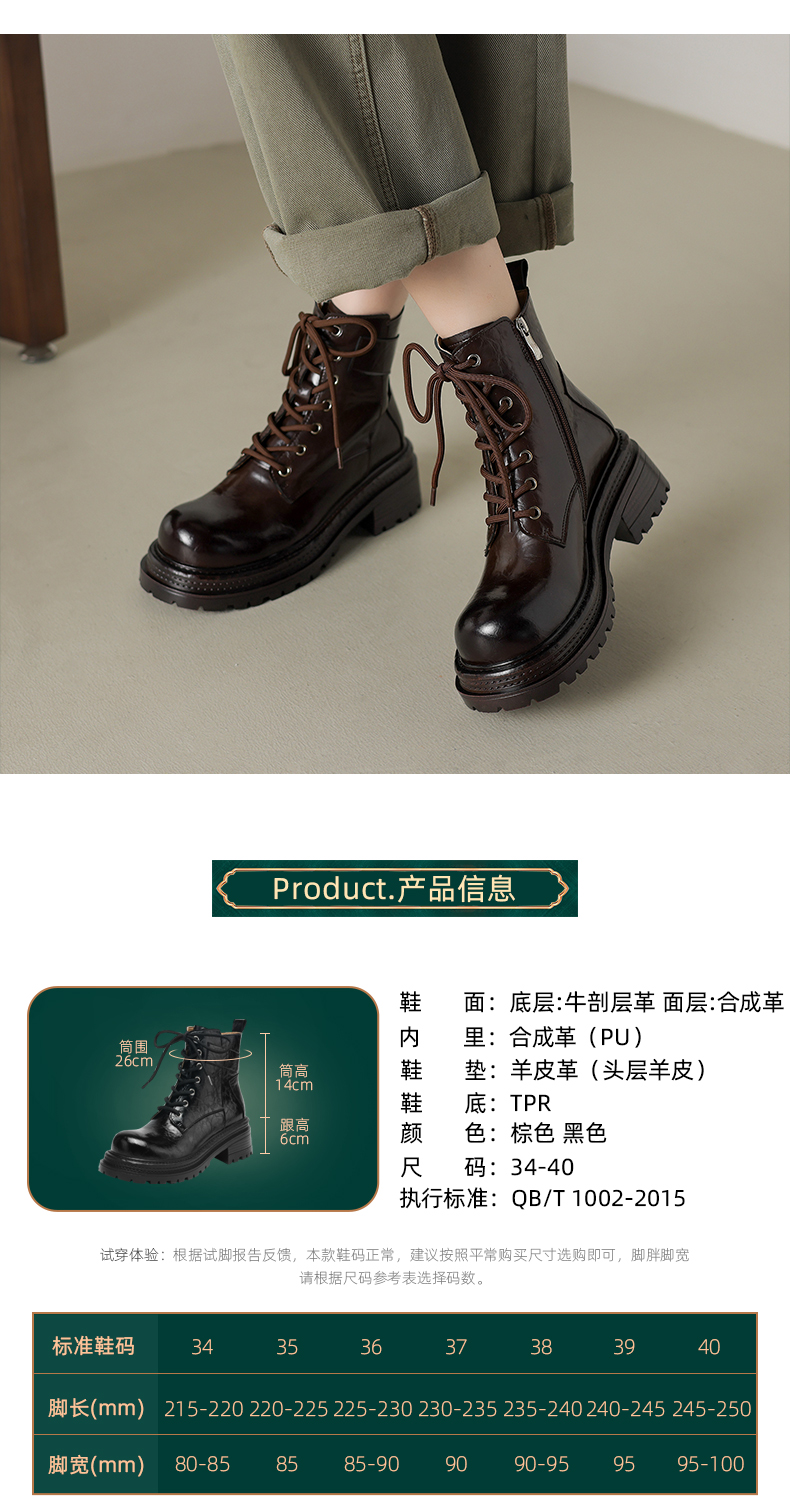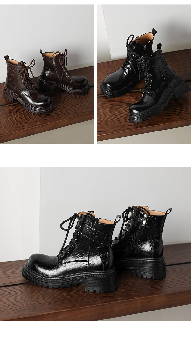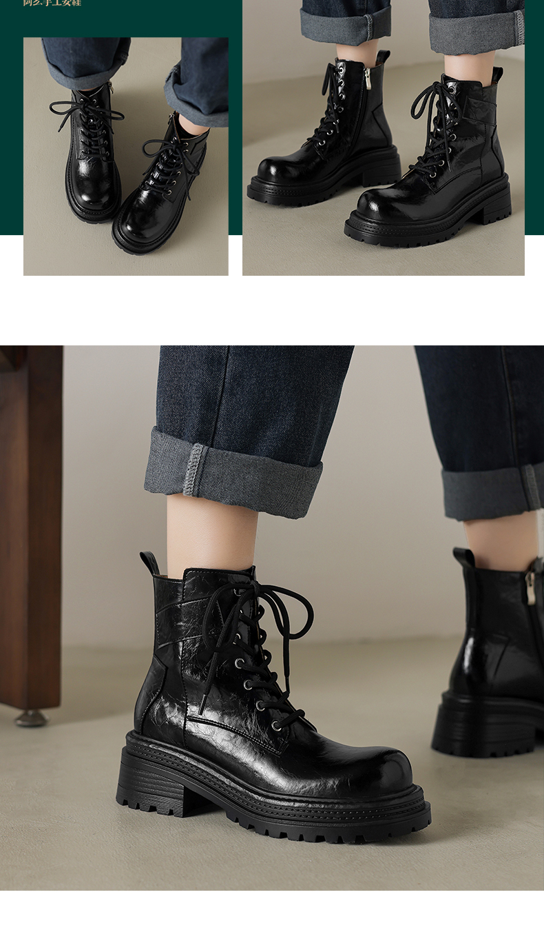 阿么手工女鞋复古厚底街头风机车马丁靴女拉链英伦风增高短靴6CM