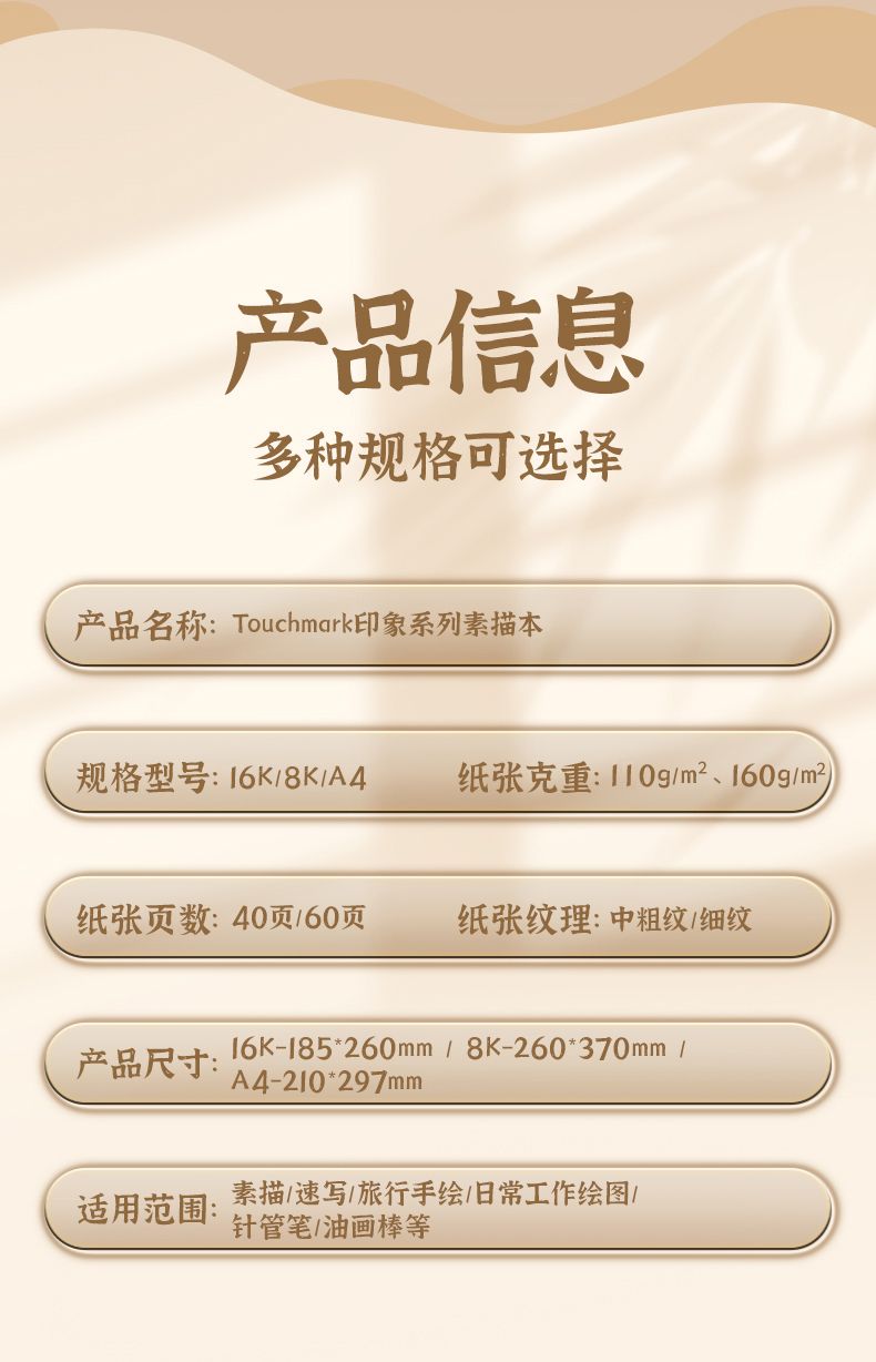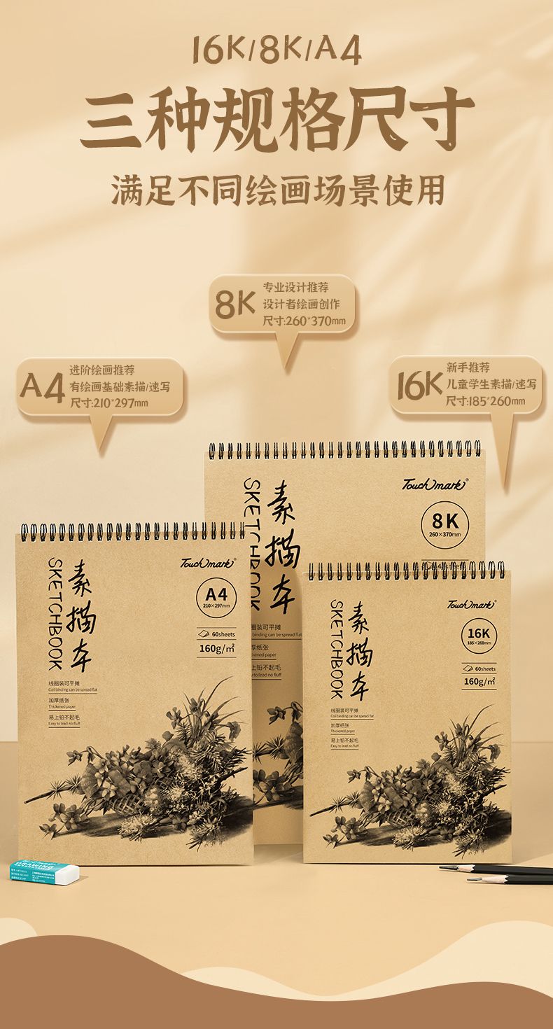 touchmark素描本 彩铅本 速写A4&16k&8k简约复古学生