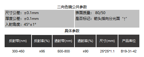 二色镜 ≥95%@300-450 Tavg≥90%@500-800 25*25*1.1 6014