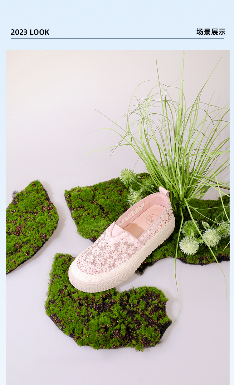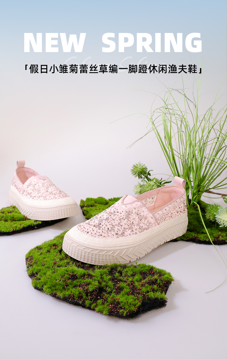 Safiya/索菲娅 2023春季新品假日小雏菊蕾丝草编一脚蹬休闲渔夫鞋 SF31112440