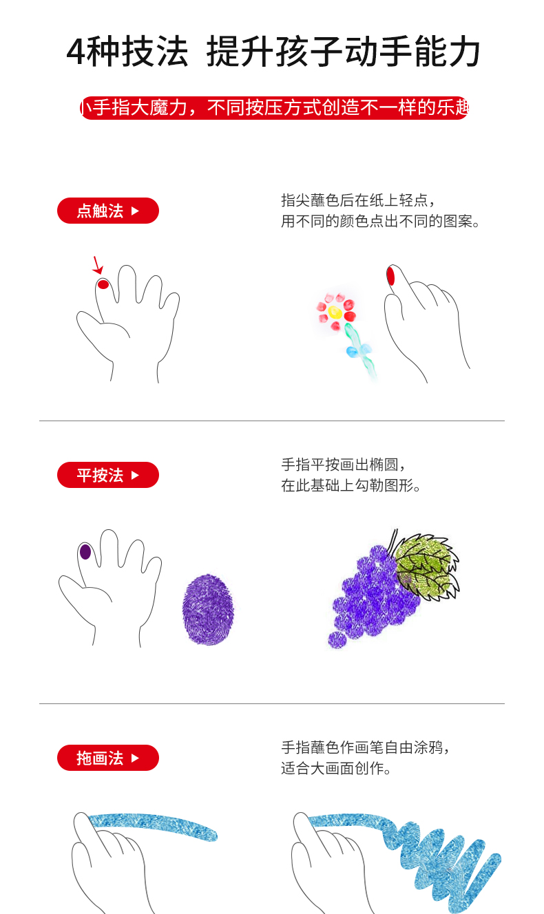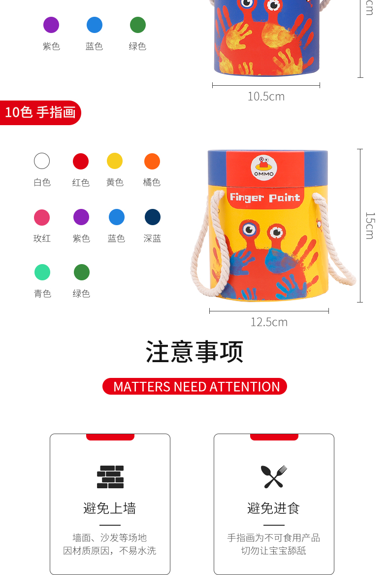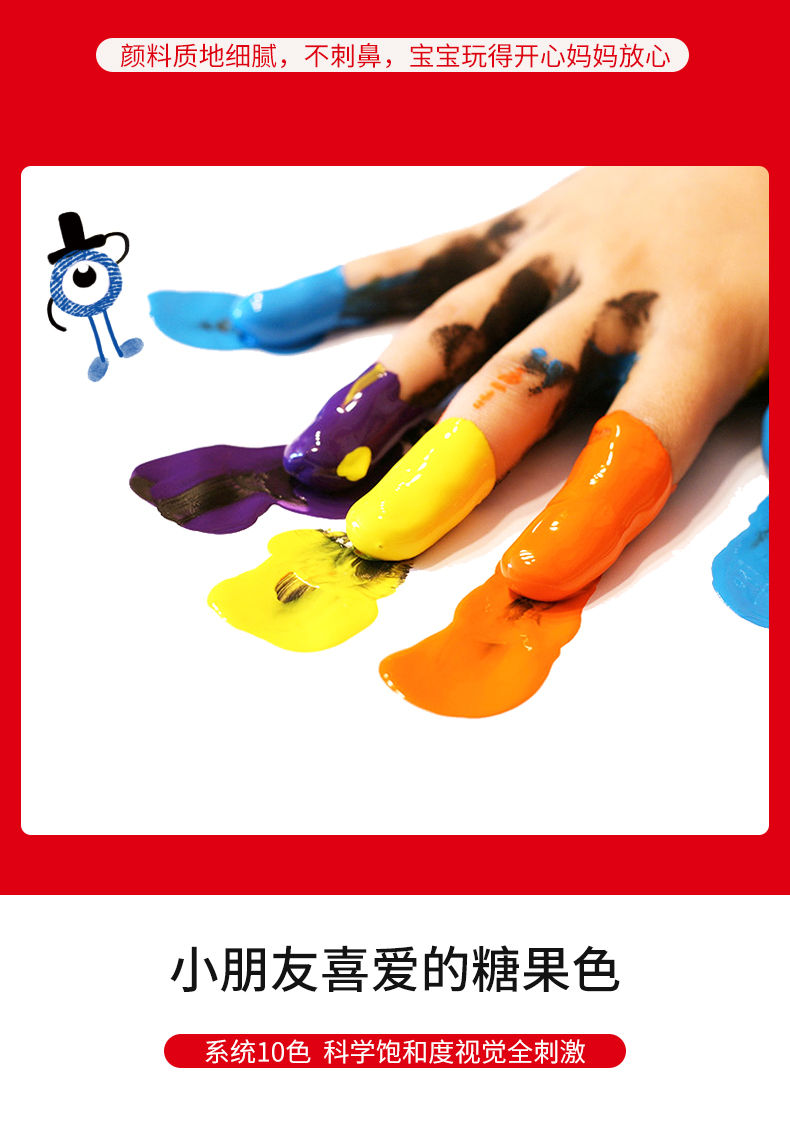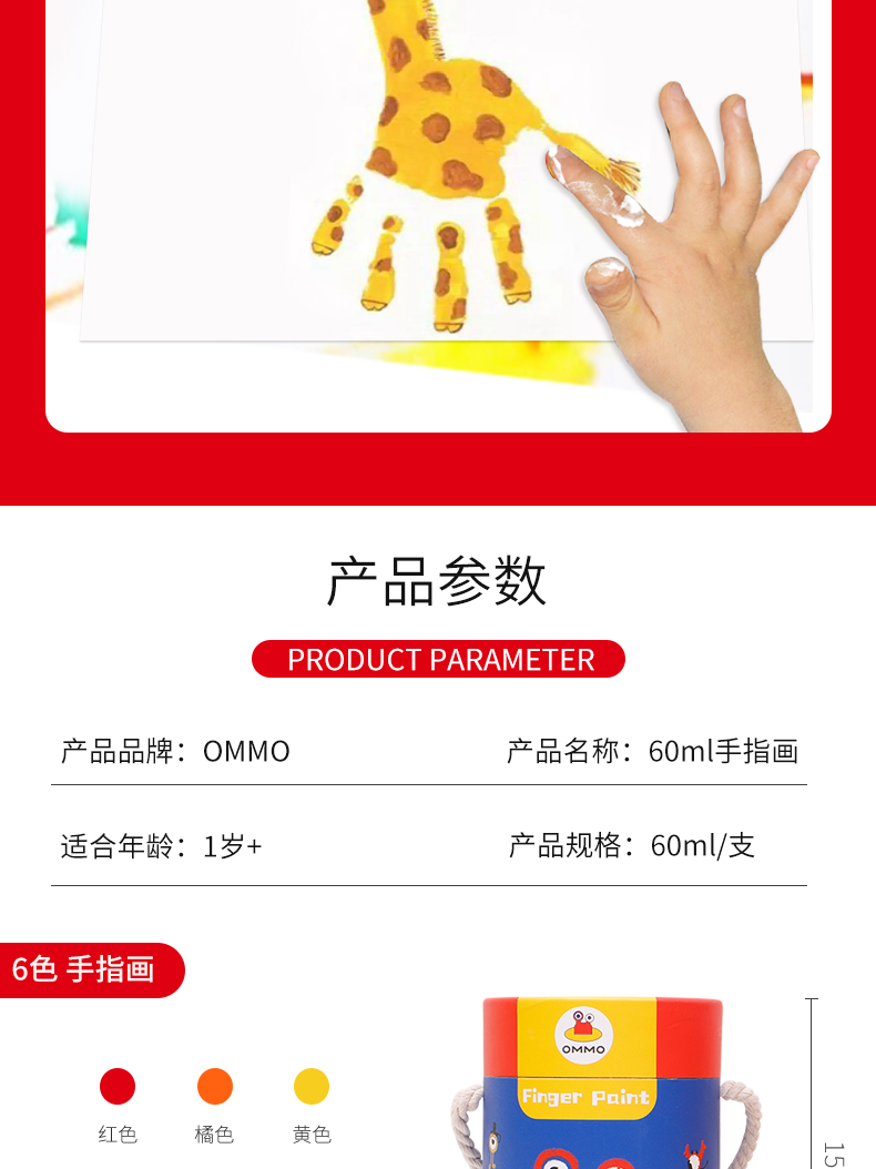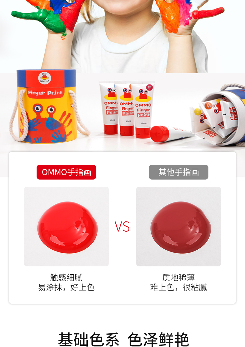 【面霜级的儿童手指画】美国OMMO儿童绘画玩具手指画颜料 无毒颜色可水洗 覆盖性强 叠层不透色
