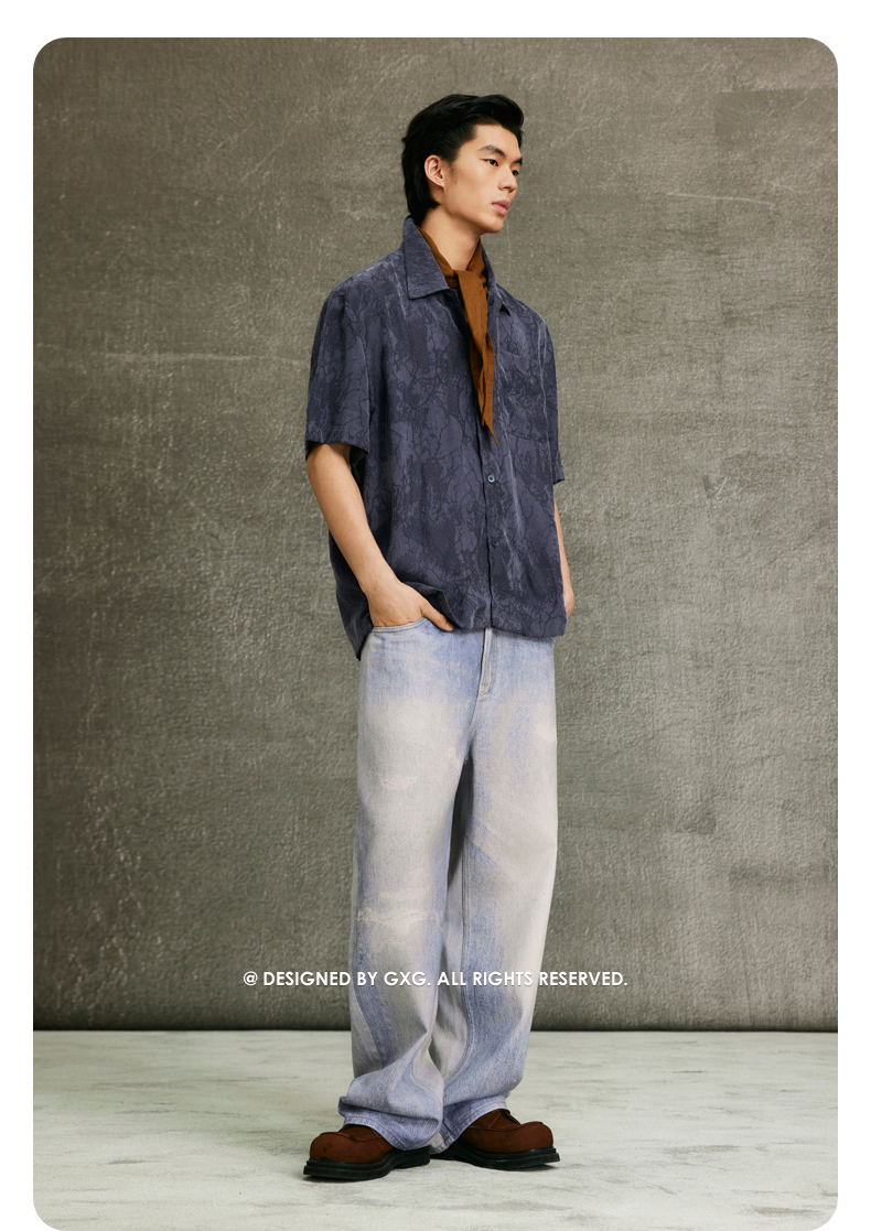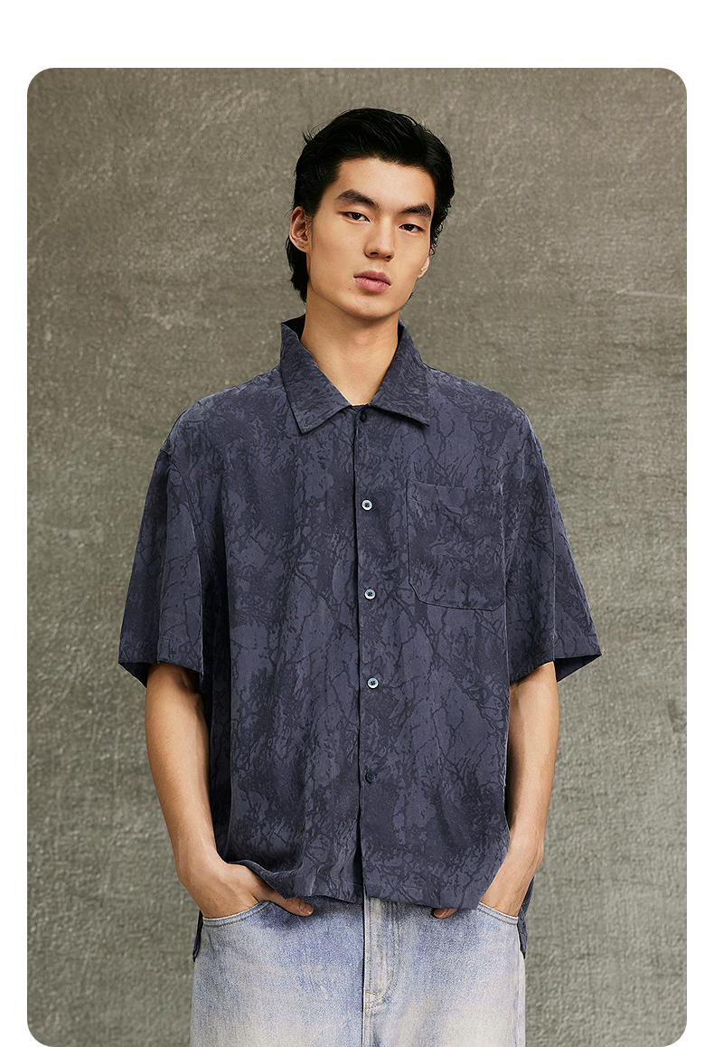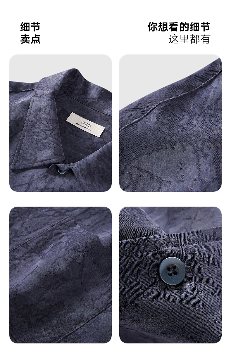 GXG男装 藏青色古巴领时尚短袖衬衫 25夏热卖G25X232007