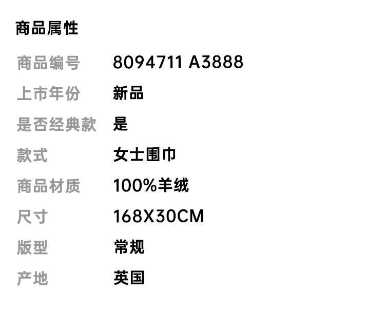BURBERRY 巴宝莉 男女通用双面两用格纹羊绒围巾 格子 8094711 A3888