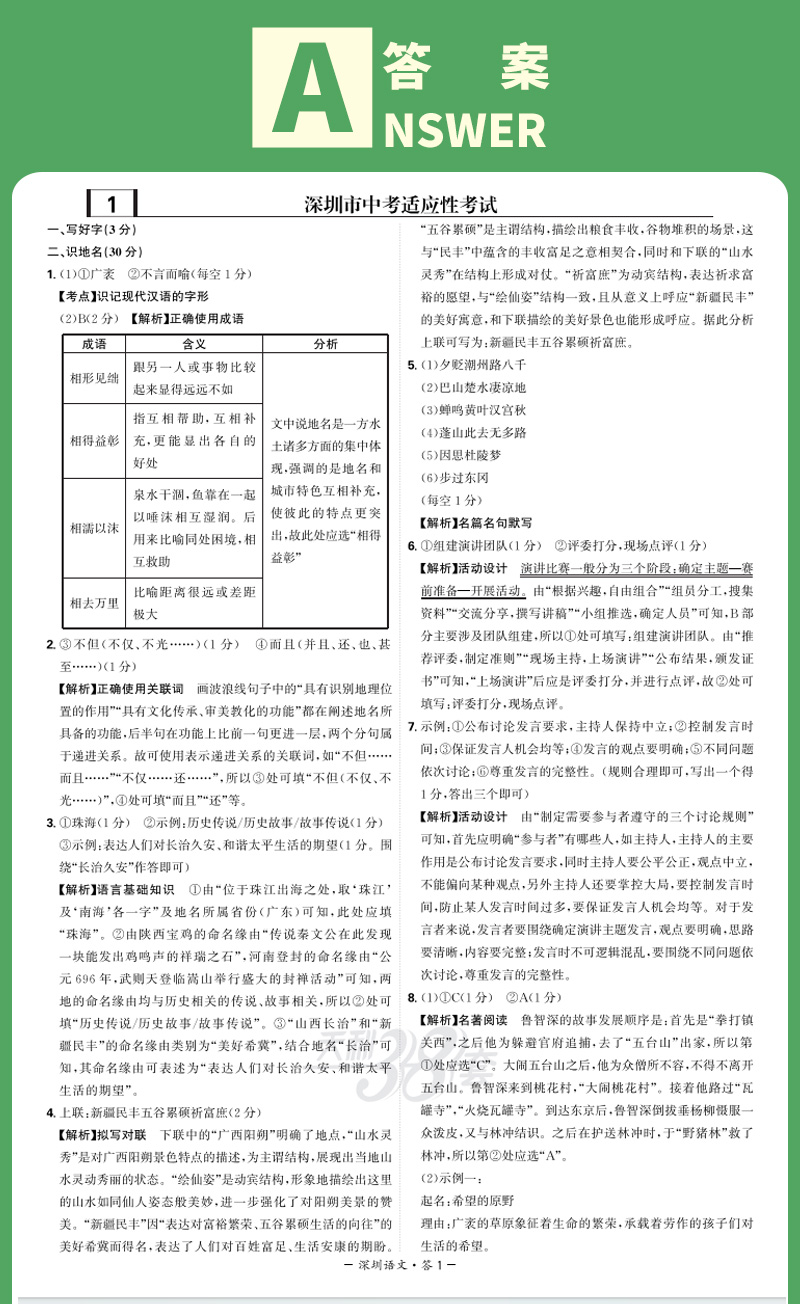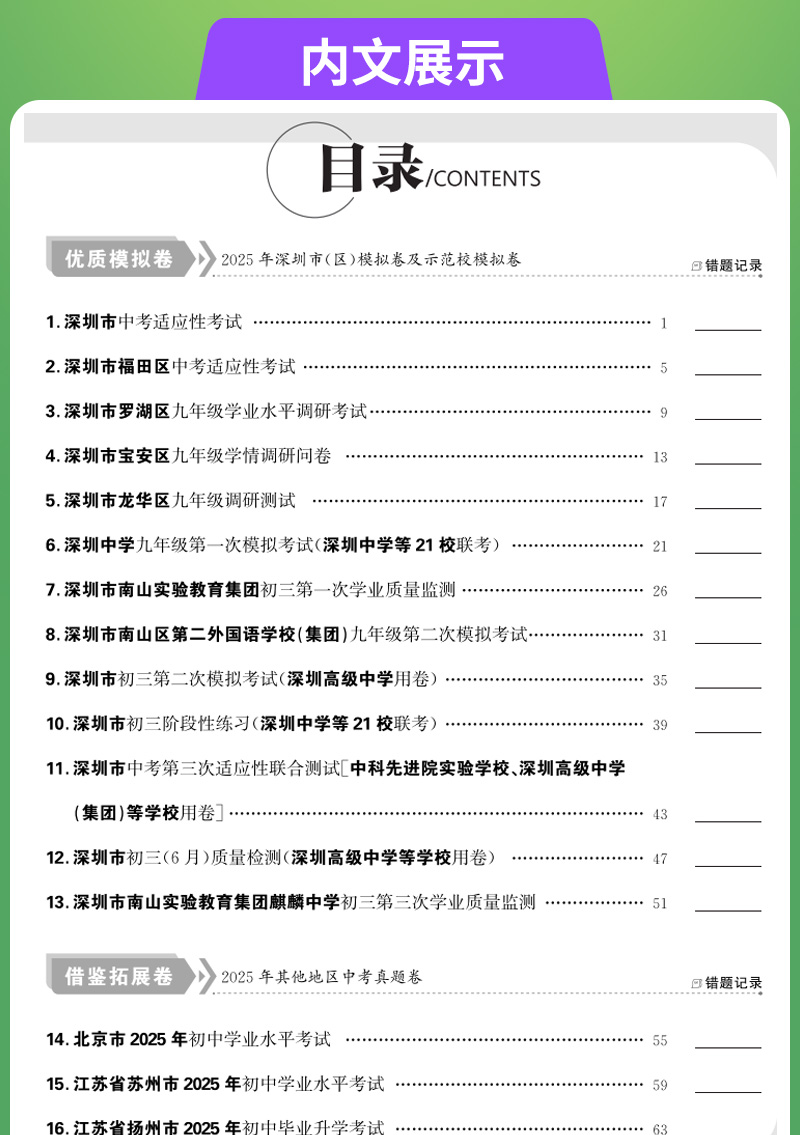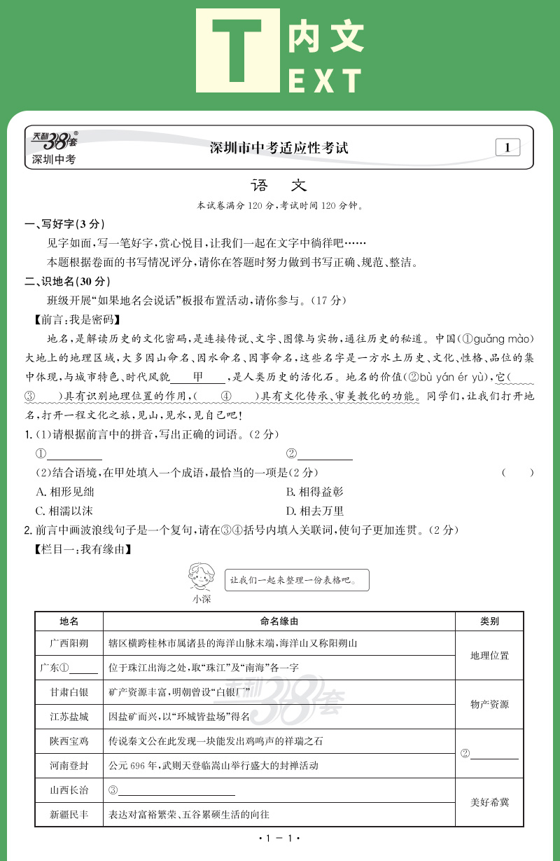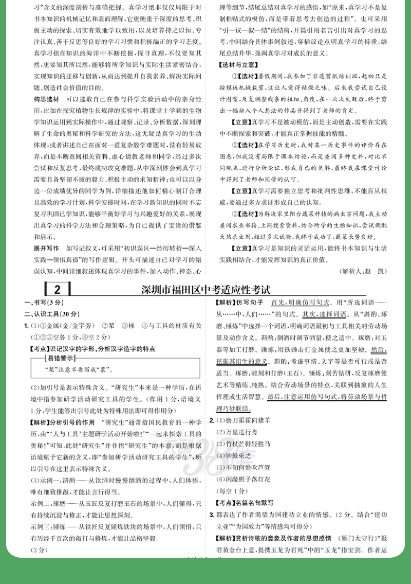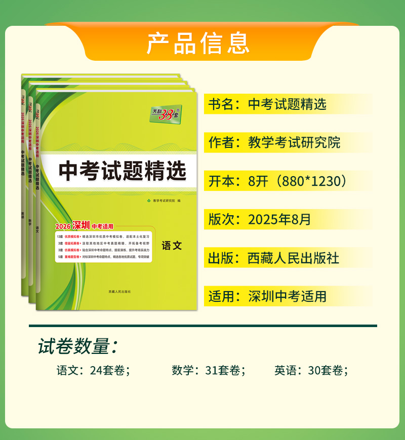 天利38套 2026深圳中考试题精选 语文 数学 英语 物理 化学
