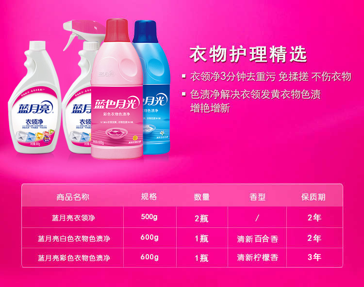 蓝月亮洗衣衣物护理组合套装(衣领净500gx2+白衣色渍净600g+彩衣色渍净600g)