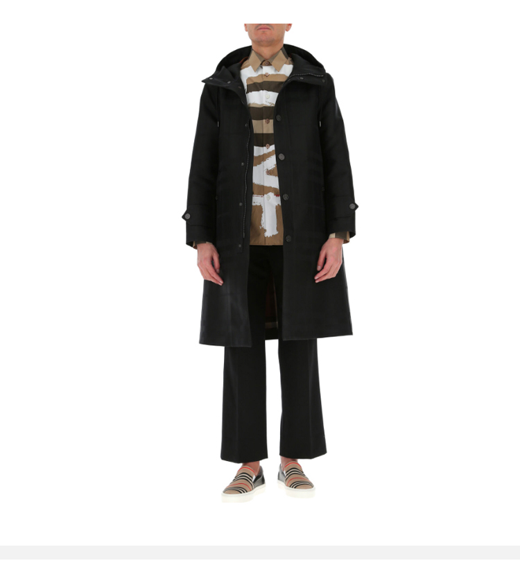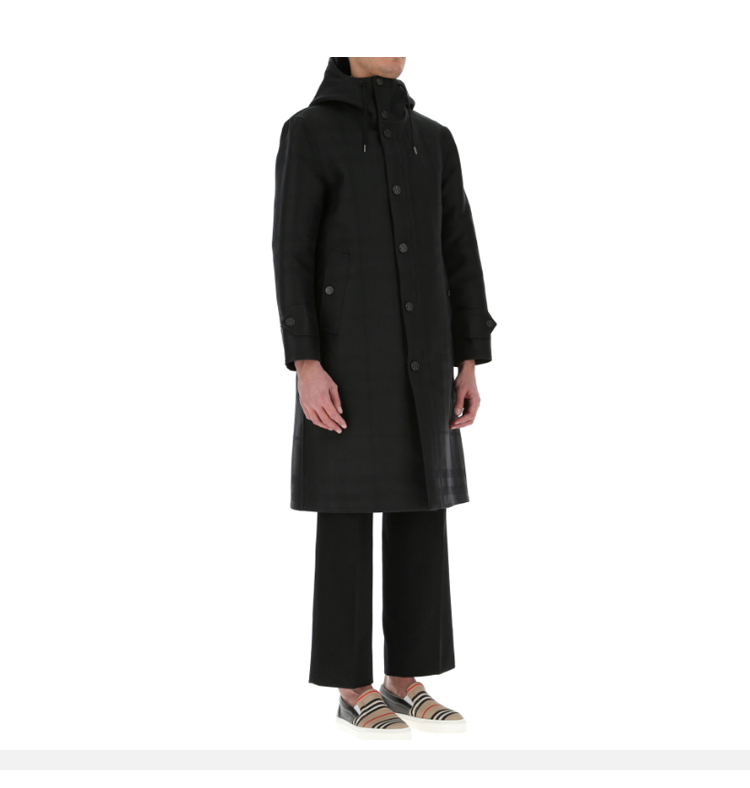 【二】BURBERRY 巴宝莉 男士球形图案细节功能性棉质格纹大衣 黑色 8036863 A1003