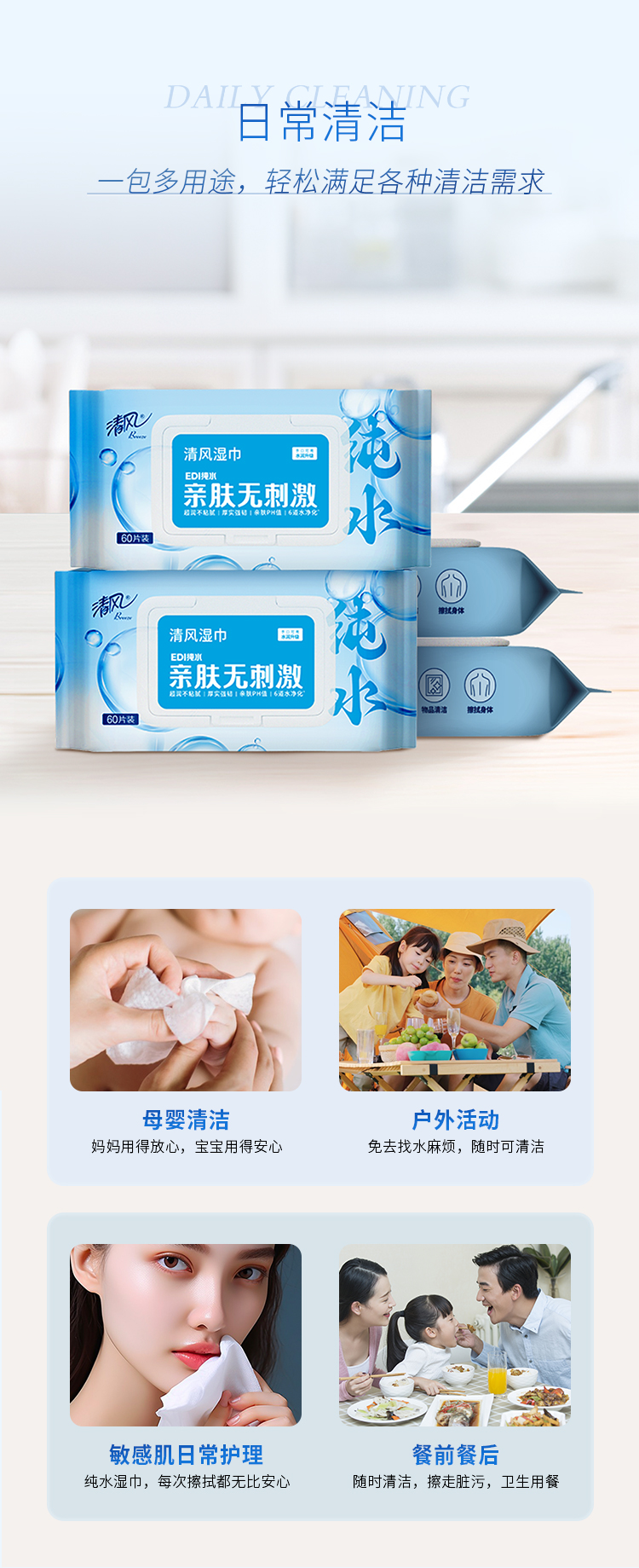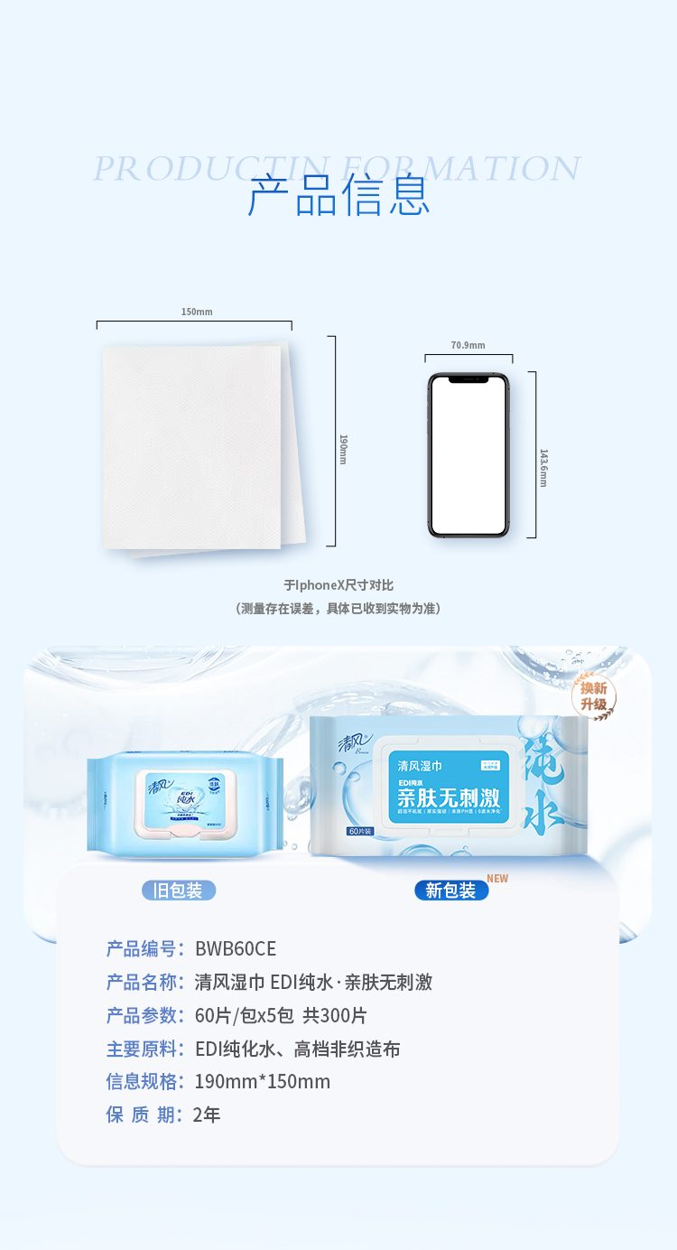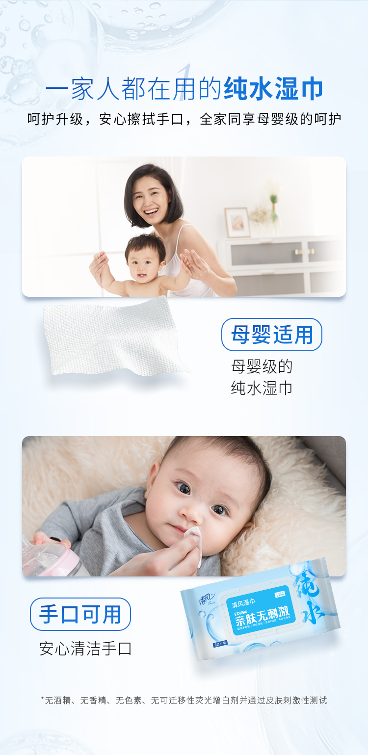 清风纯水60片湿纸巾BWB6OCE*5包/箱