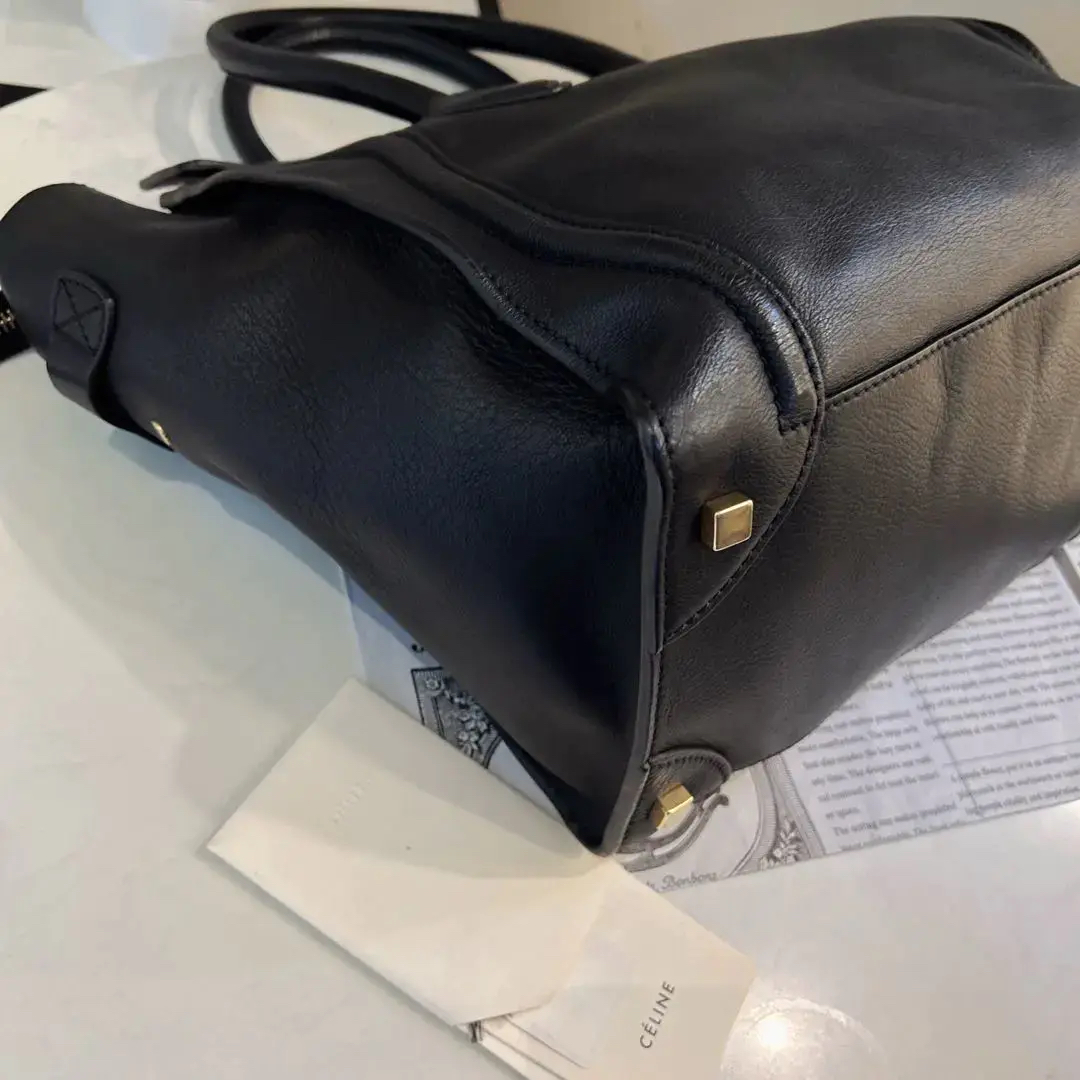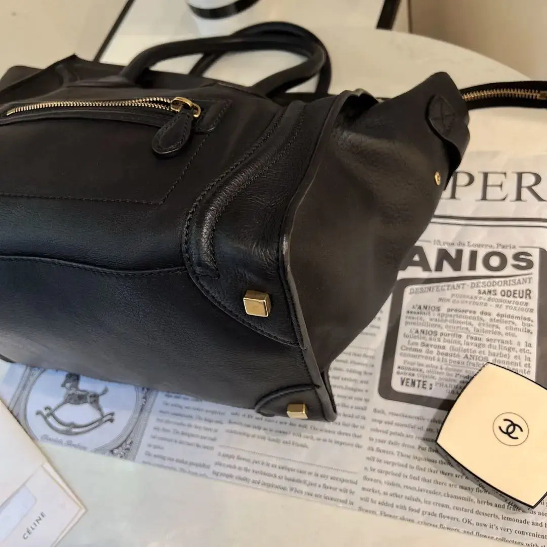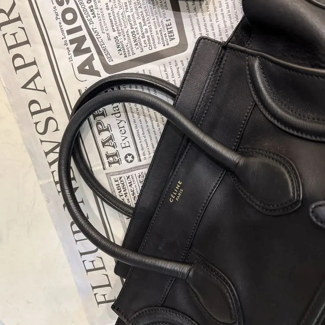 【商品详情】正品二手 Celine mini 牛皮 黑色 笑脸包🆒93新 31x29。 包型正常使用感。old Celine的经典代表作 完全不撞包的款式