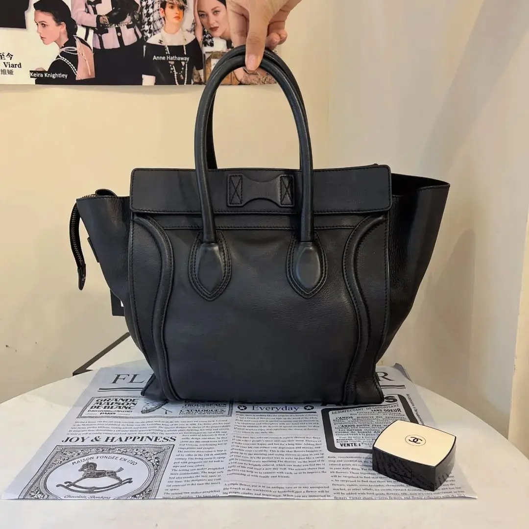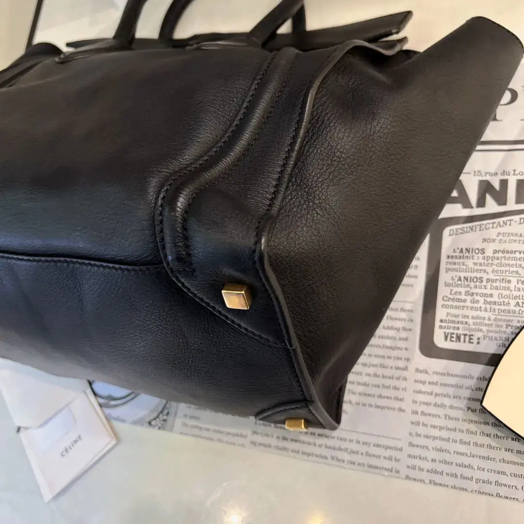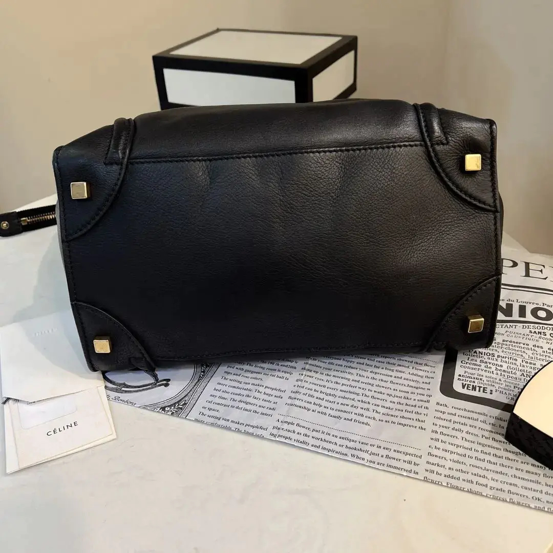 【商品详情】正品二手 Celine mini 牛皮 黑色 笑脸包🆒93新 31x29。 包型正常使用感。old Celine的经典代表作 完全不撞包的款式