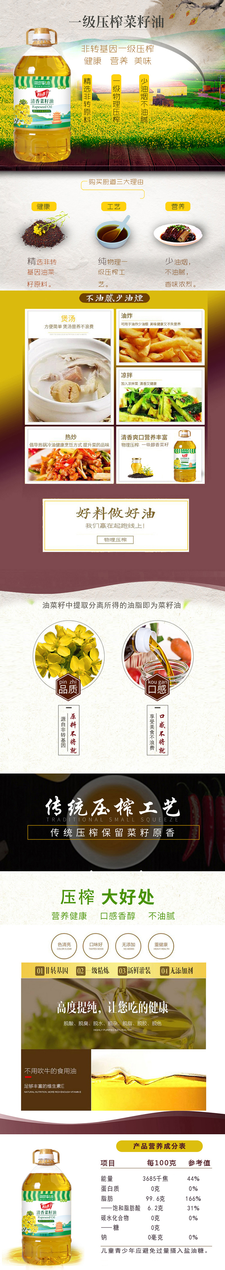 【严选】厨道荆楚粮油 非转基因压榨一级清香菜籽油食用油 厨道一级菜籽油5L (厂家直发)