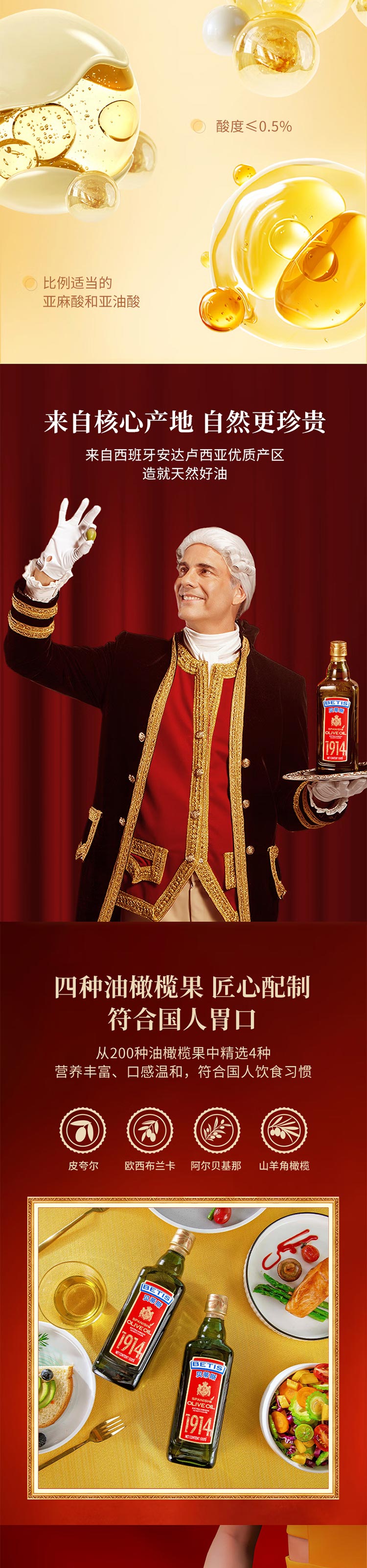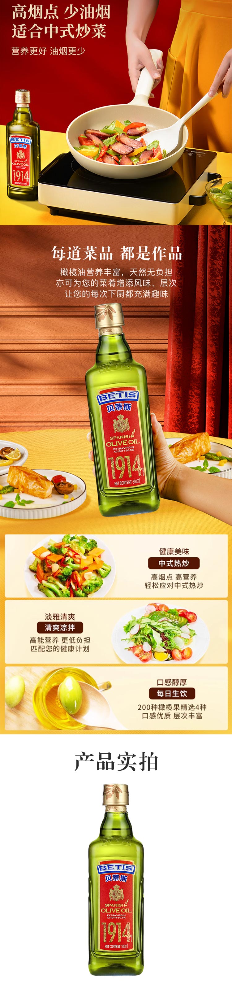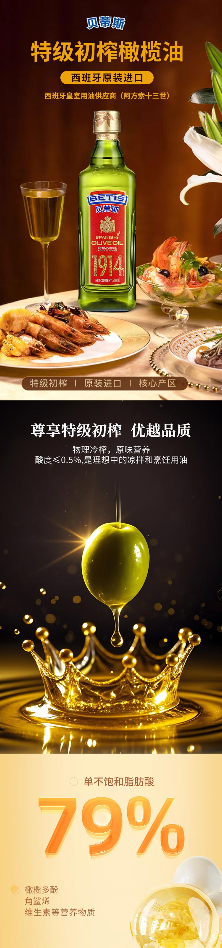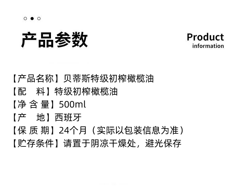 西班牙进口贝蒂斯特级初榨橄榄油500ml