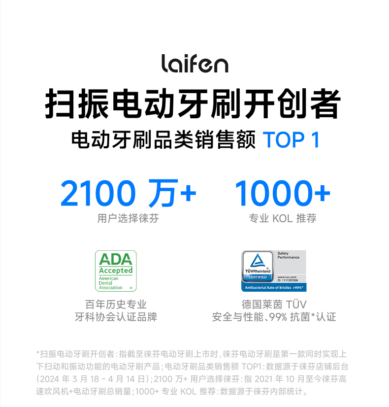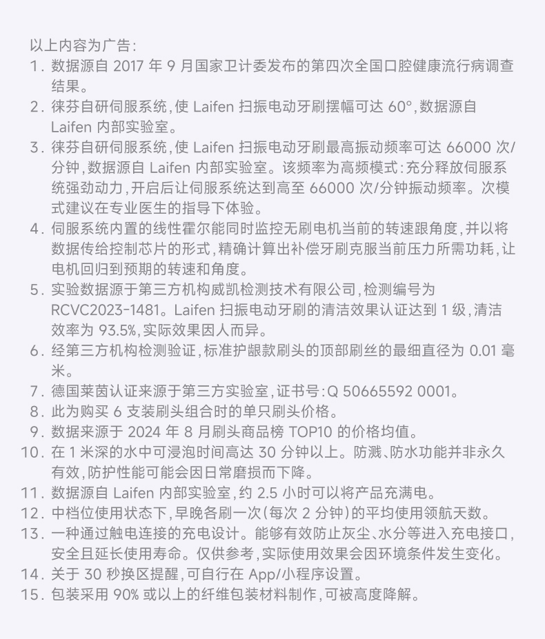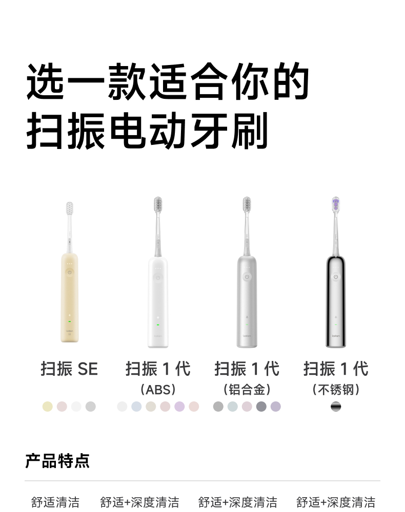 Laifen徕芬扫振电动牙刷 1代 ABS款 LFTB01-P 深度清洁护龈牙刷