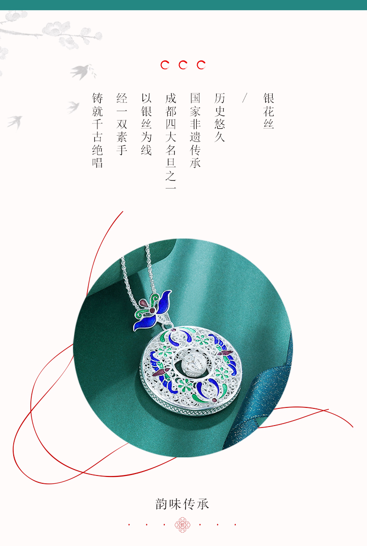 - 国家级非遗项目成都银花丝优秀传承单位 四川工艺美术行业协会副会长单位 四川传统文化促进会常务副会长单位 成都非物质文化遗产保护中心协会会员单位 国货品牌 历史400余年