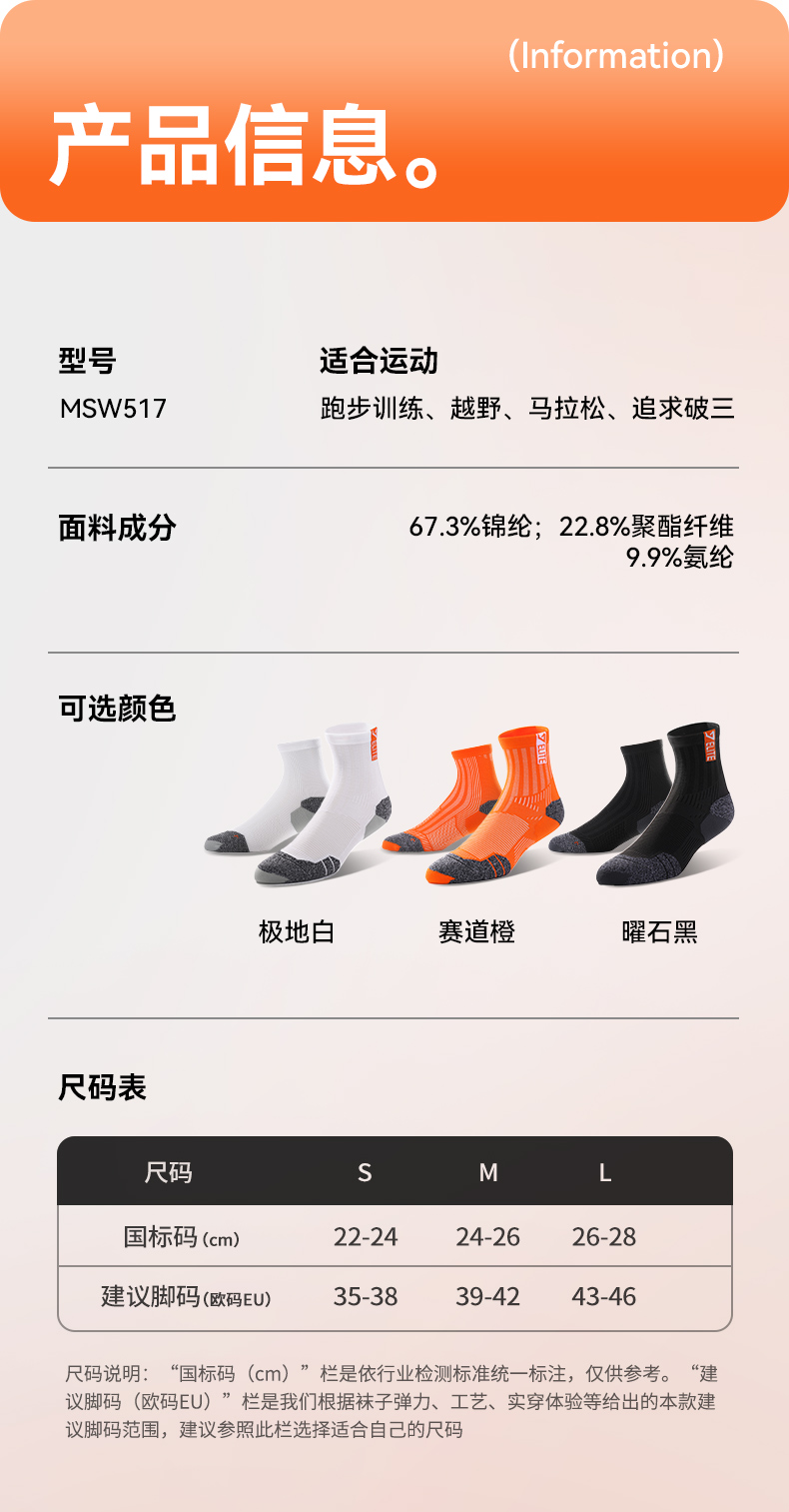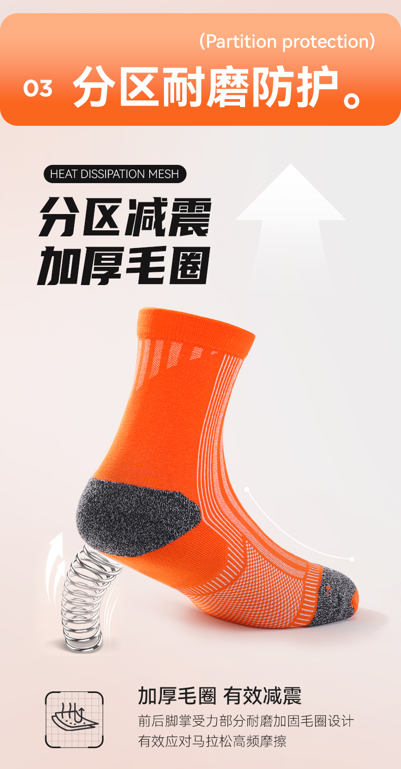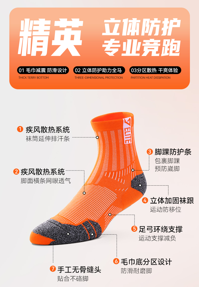 🔥517肌动疾风竞速马拉松专业跑步袜子男女款毛巾底徒步越野运动袜中筒