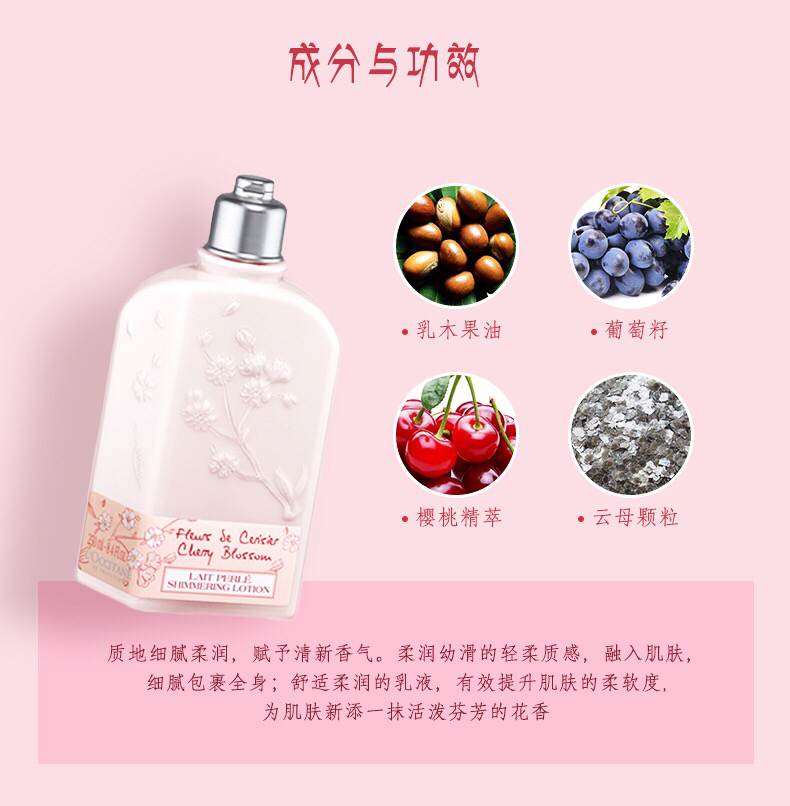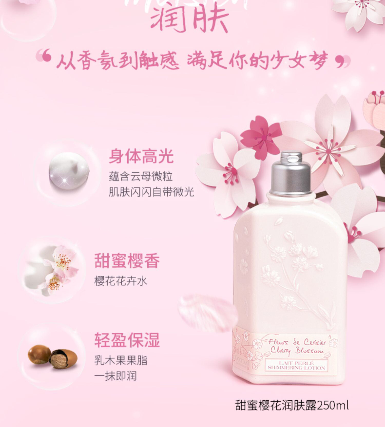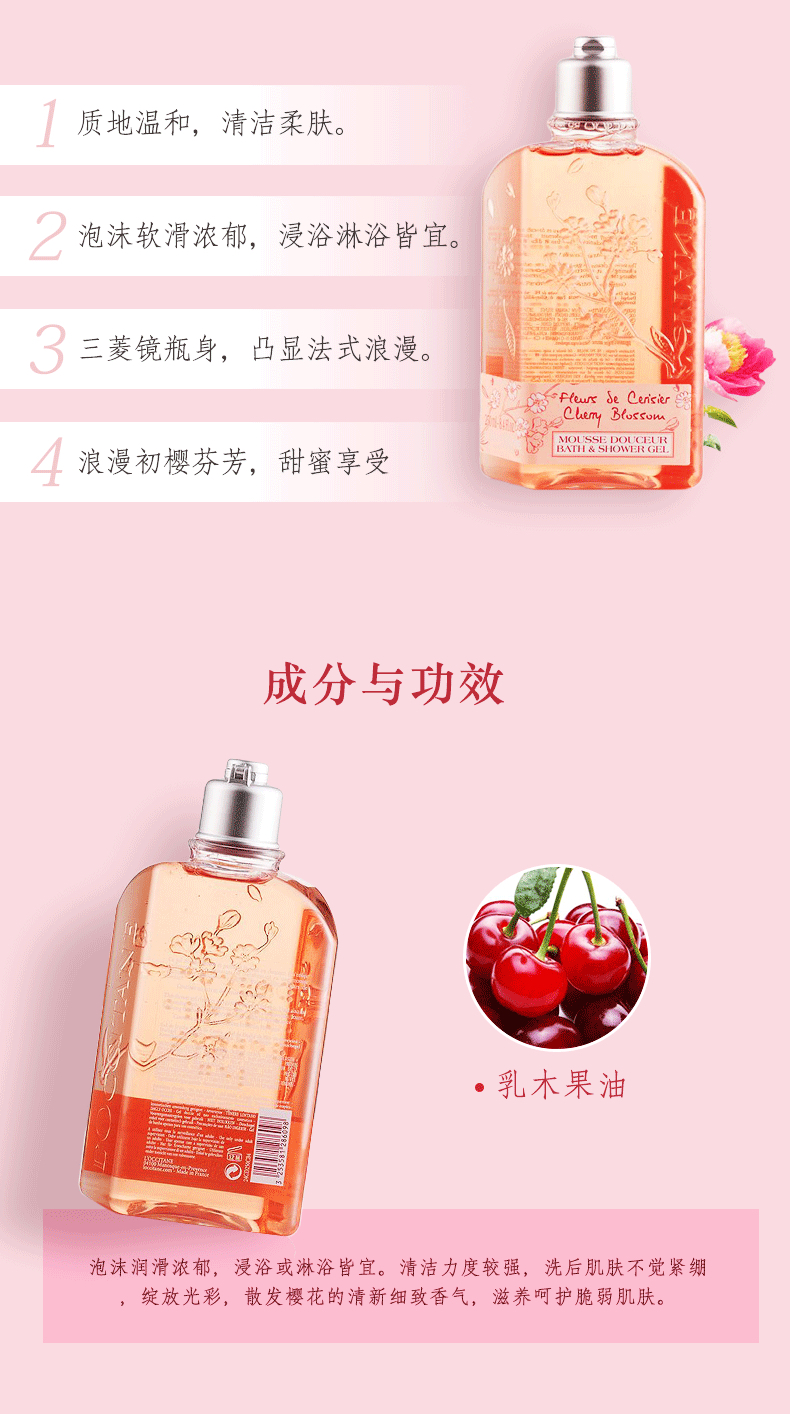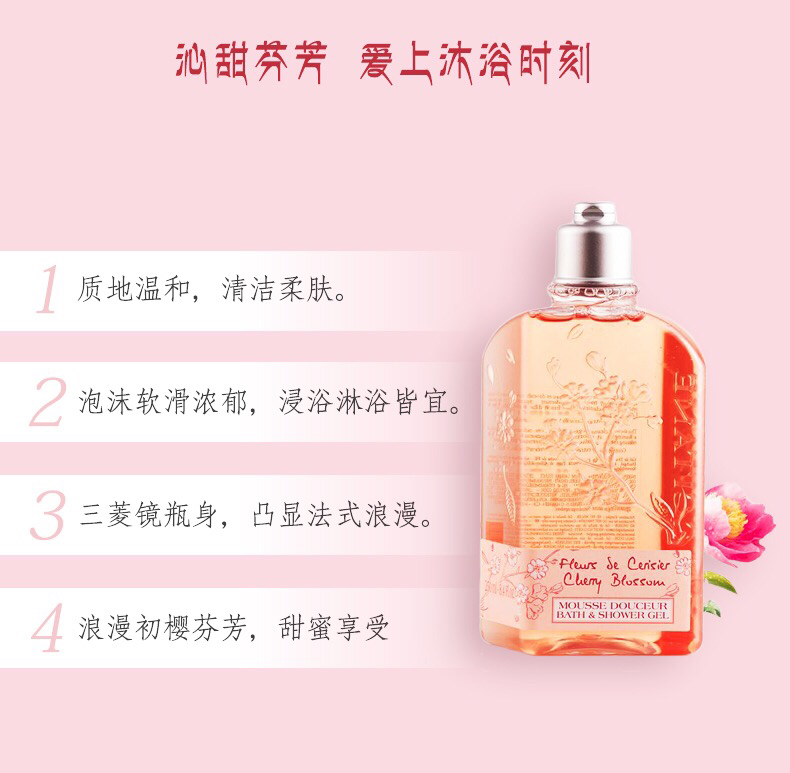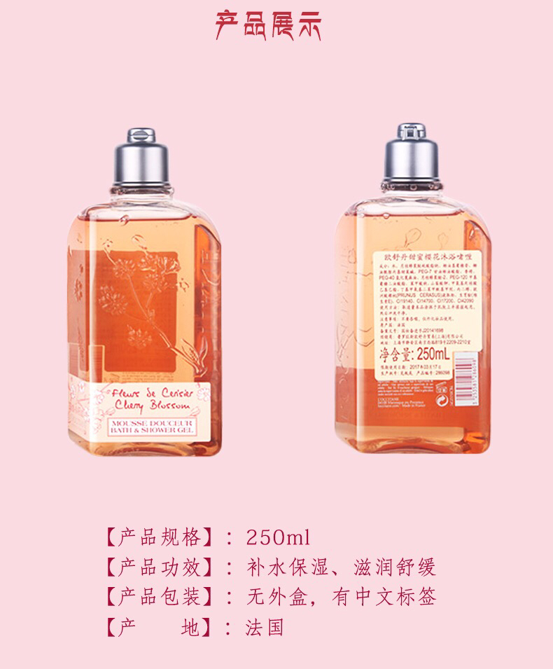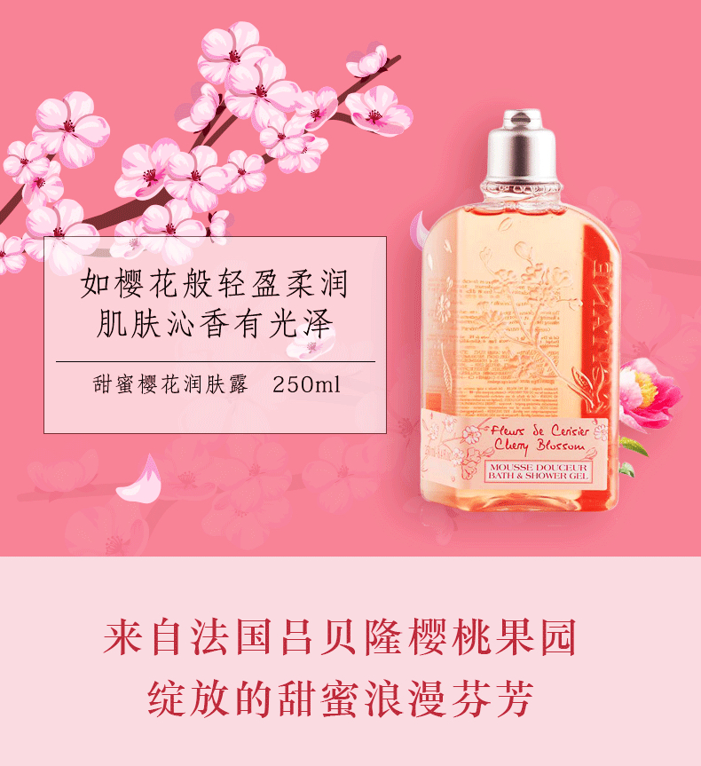 【海关保税直发】L'occitane欧舒丹樱花沐浴露-身体乳250ml-会员5折