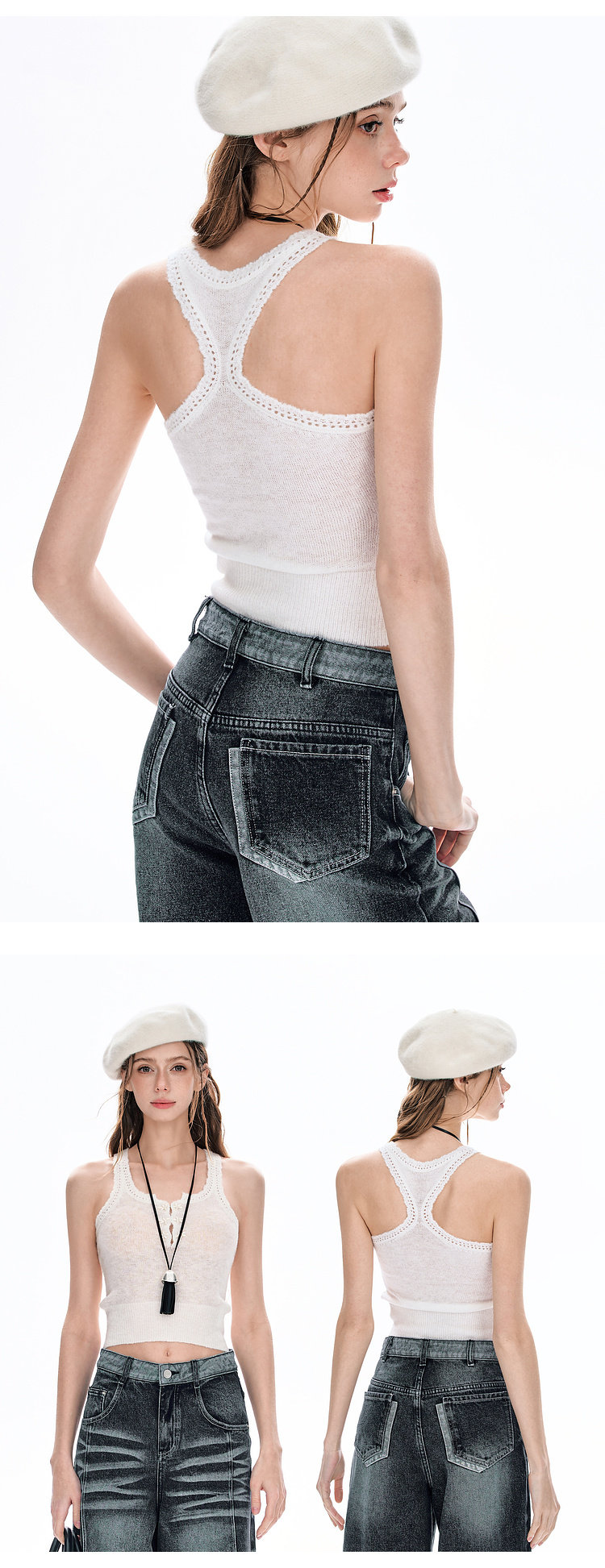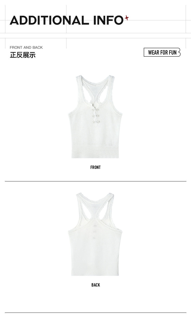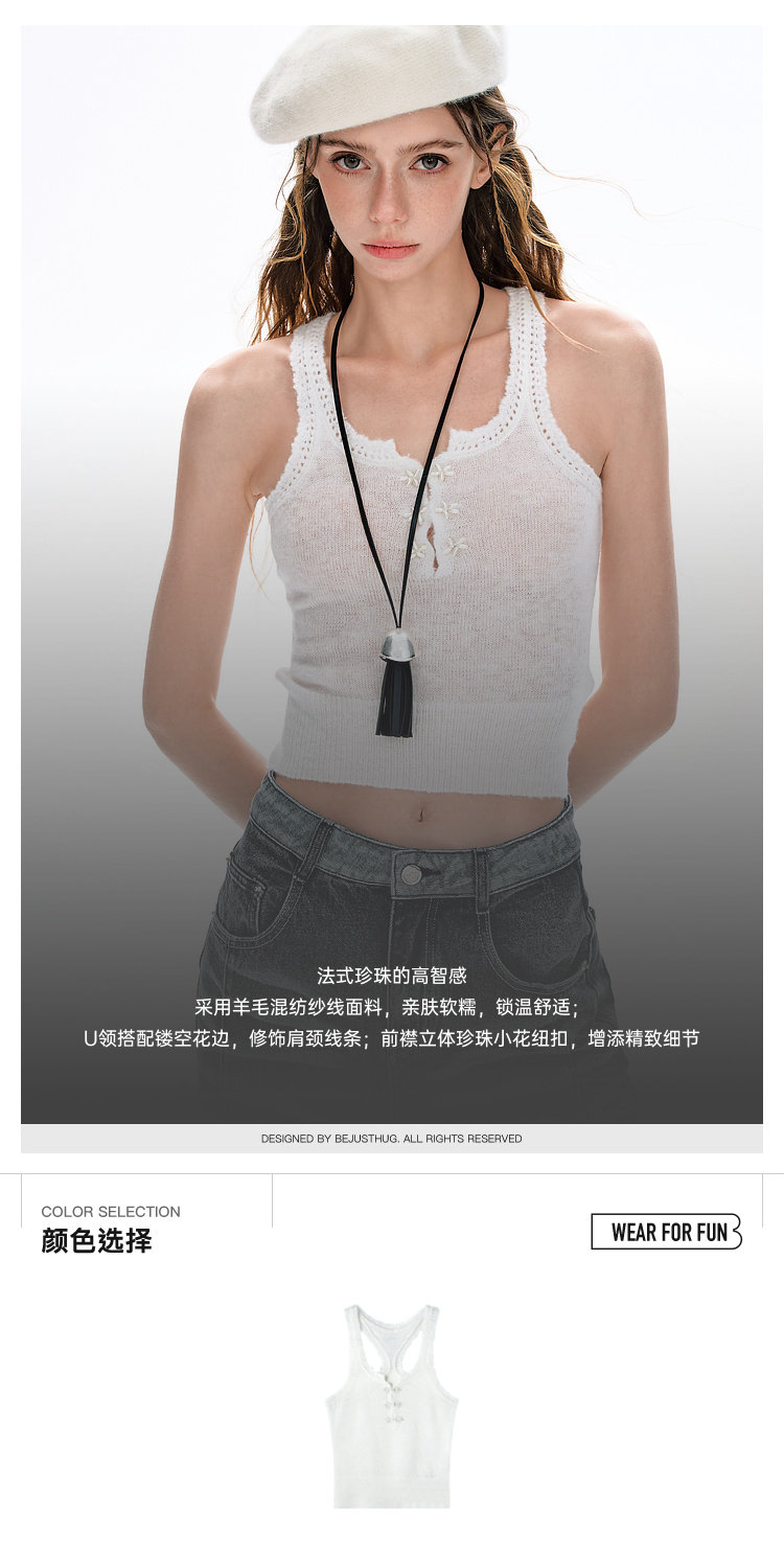 FTT FlyTheTruth镂空花边针织背心女夏季简约气质内搭U领吊带上衣
