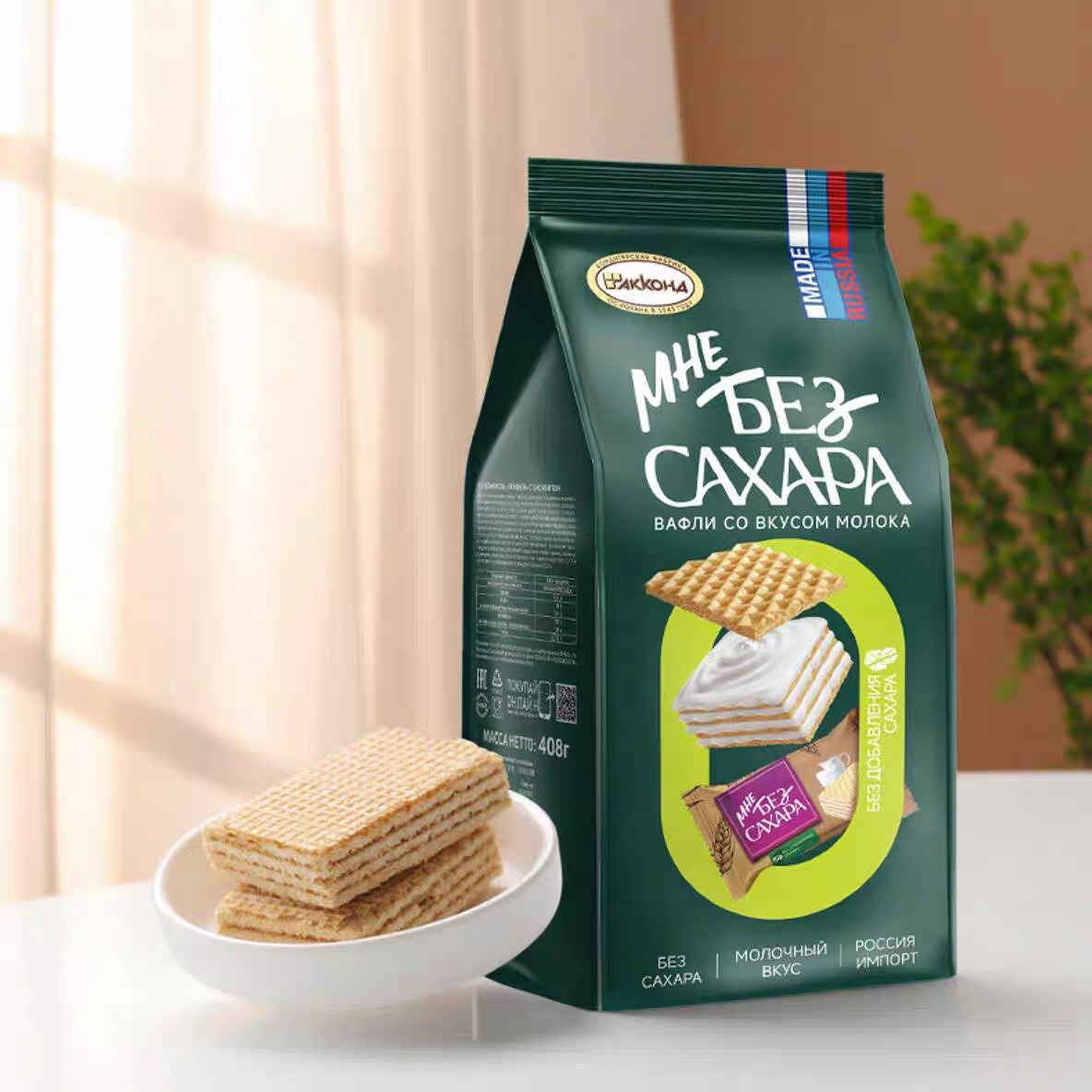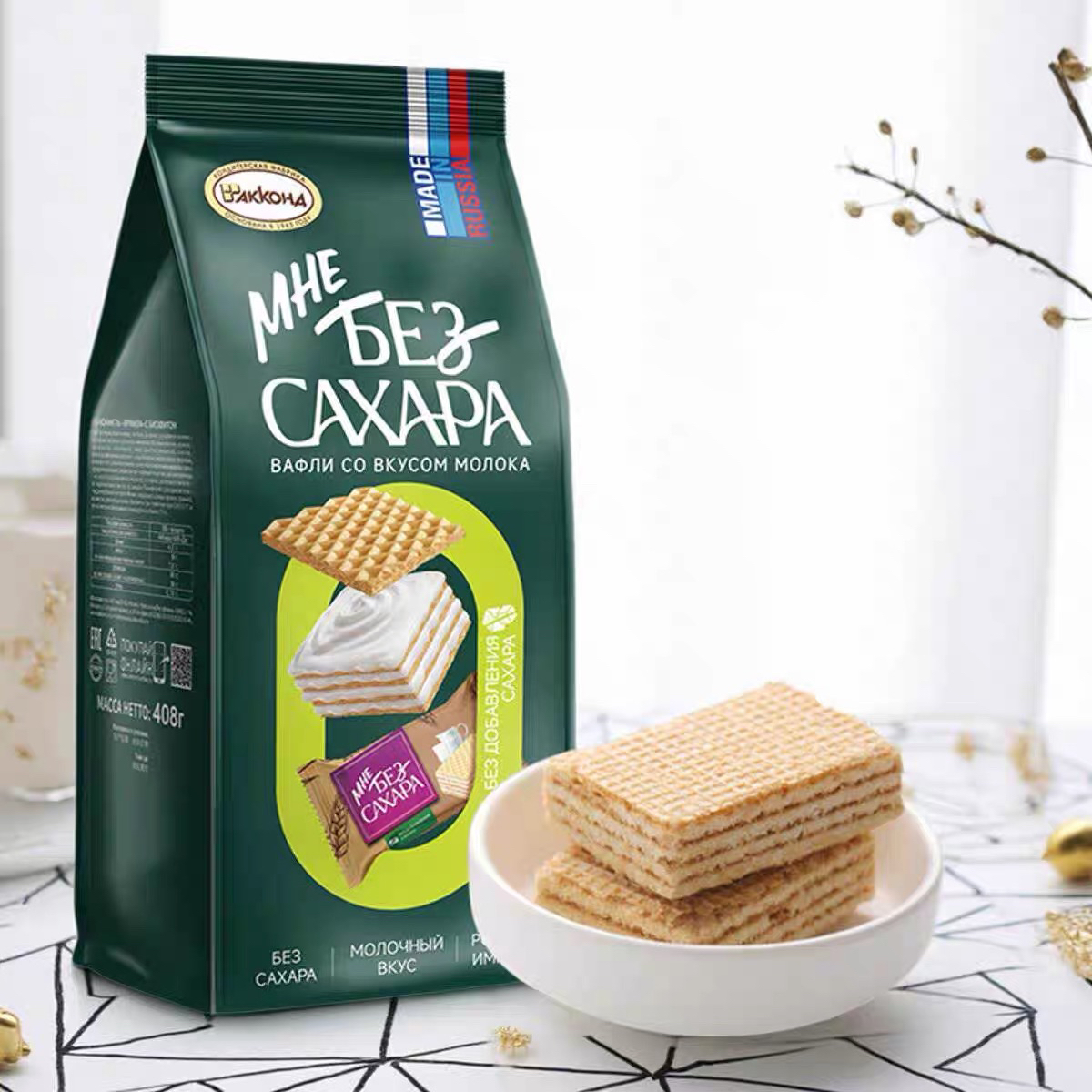 小农庄无蔗糖牛奶味威化408g