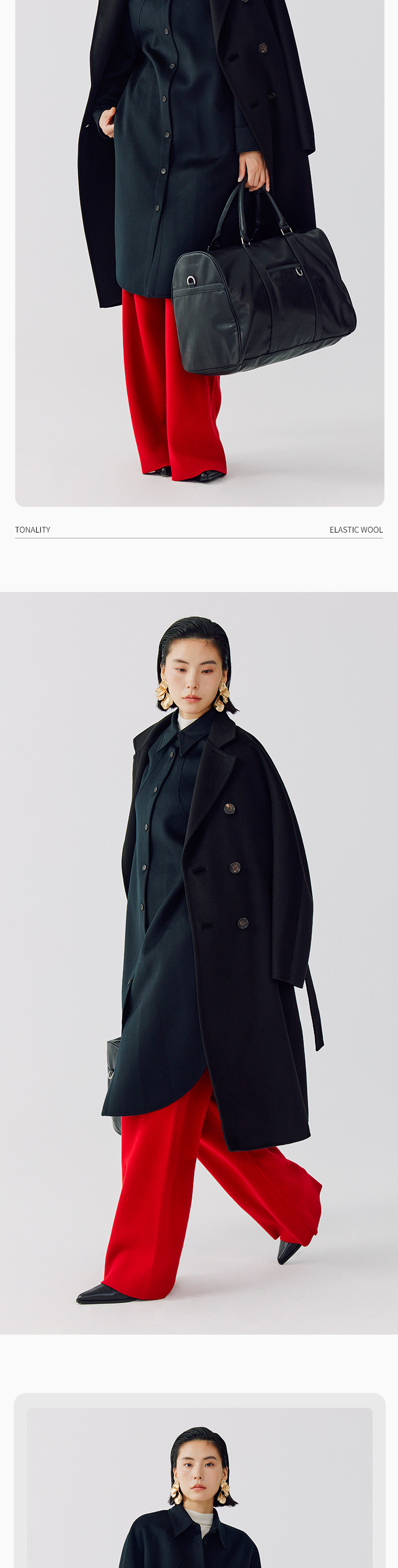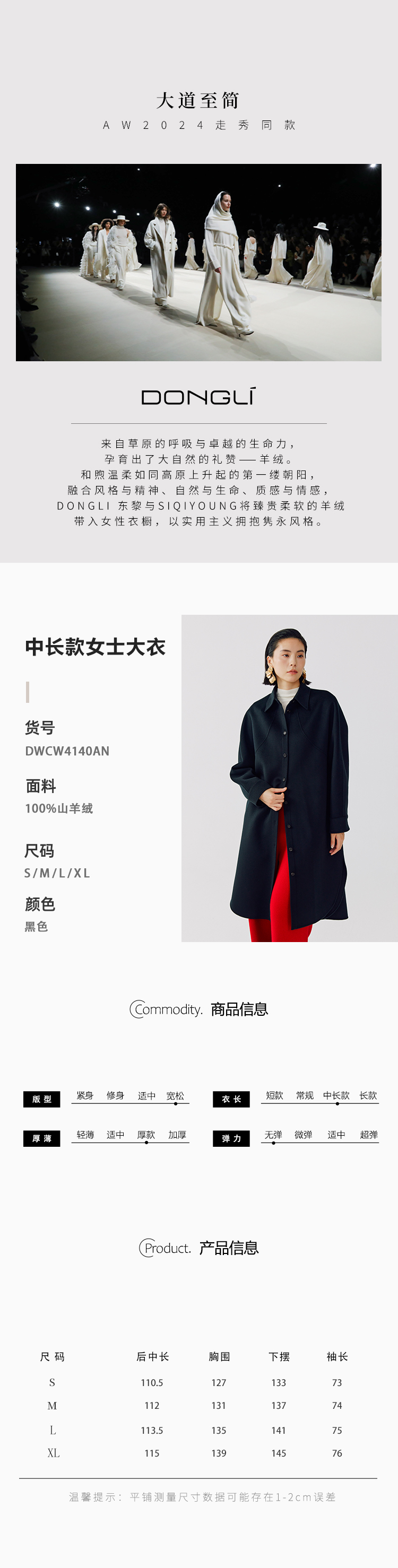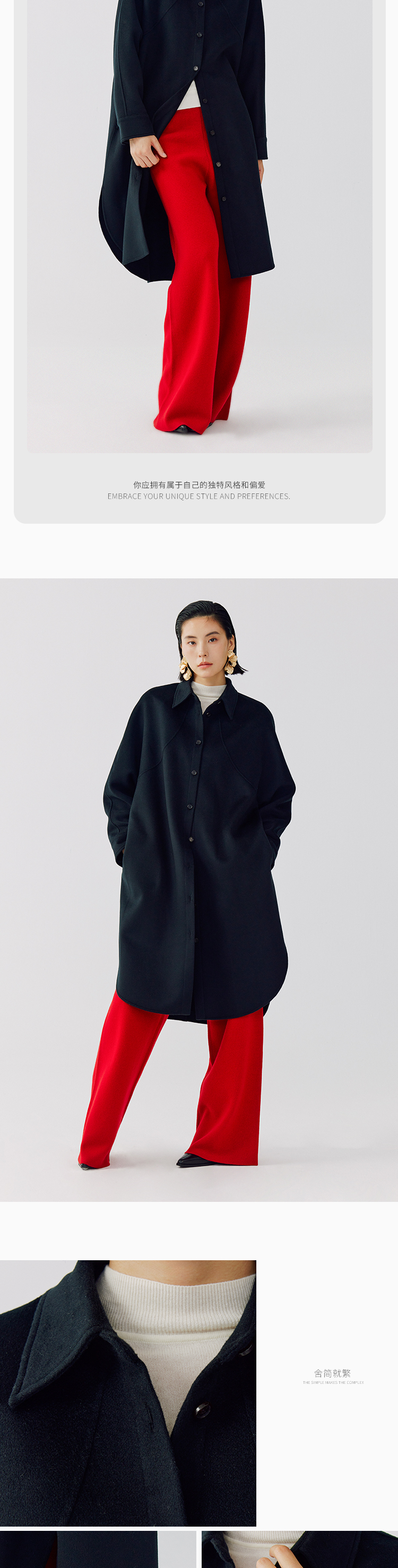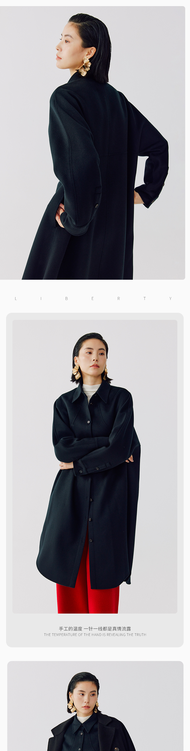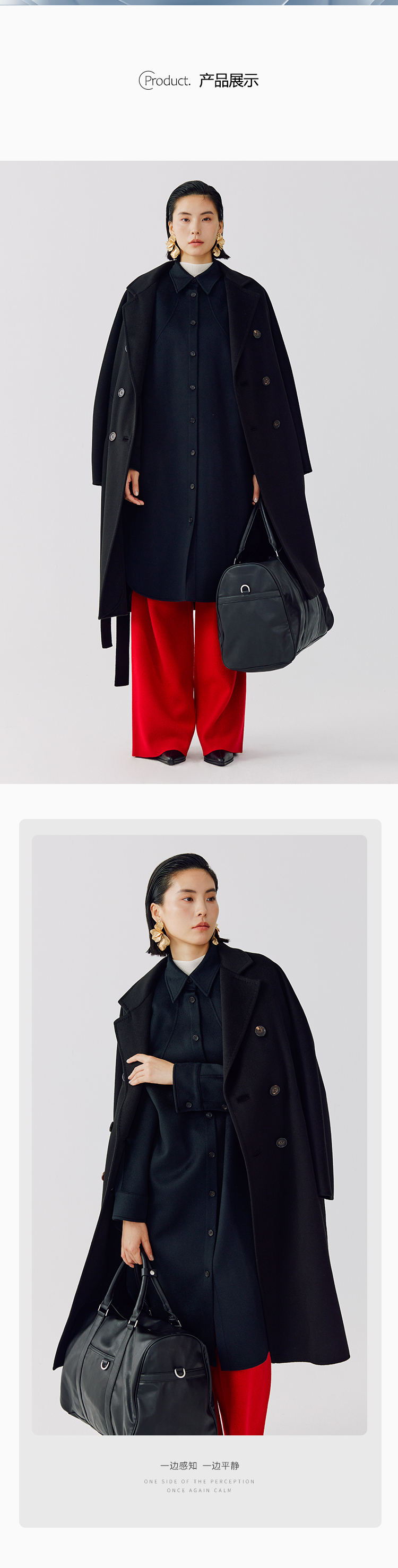 东黎 • 山羊绒女士秋冬西服领燕尾款宽松双面呢羊绒中长款大衣 4140
