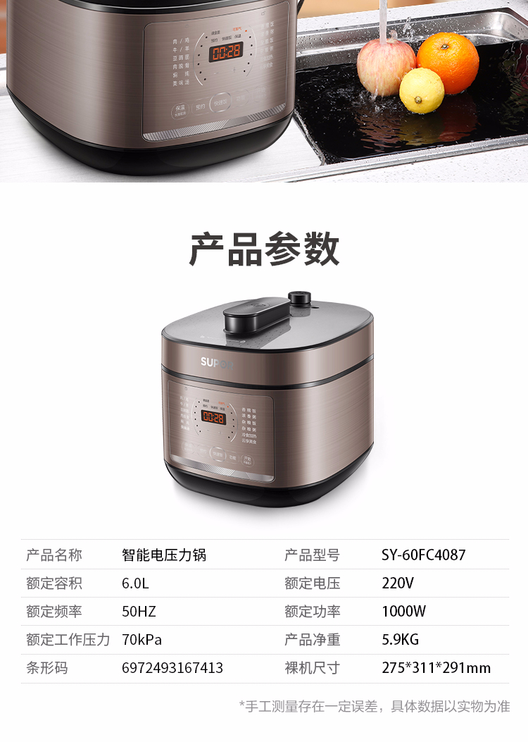 苏泊尔电压力锅6L.SY-60FC4087