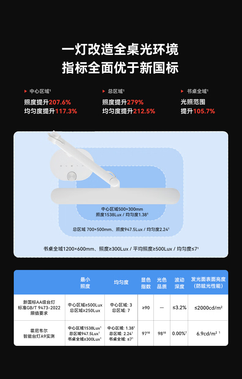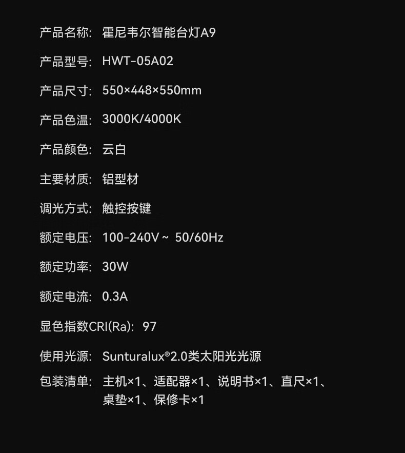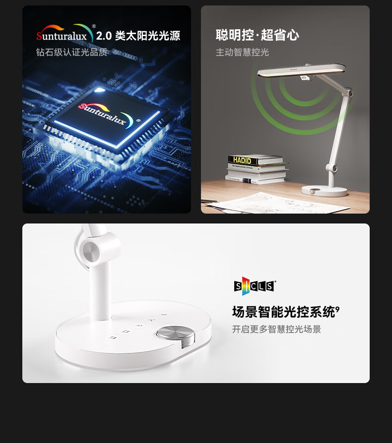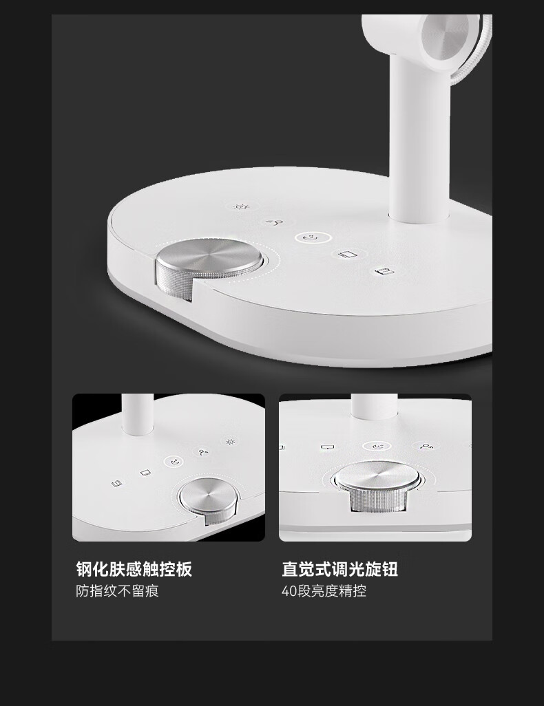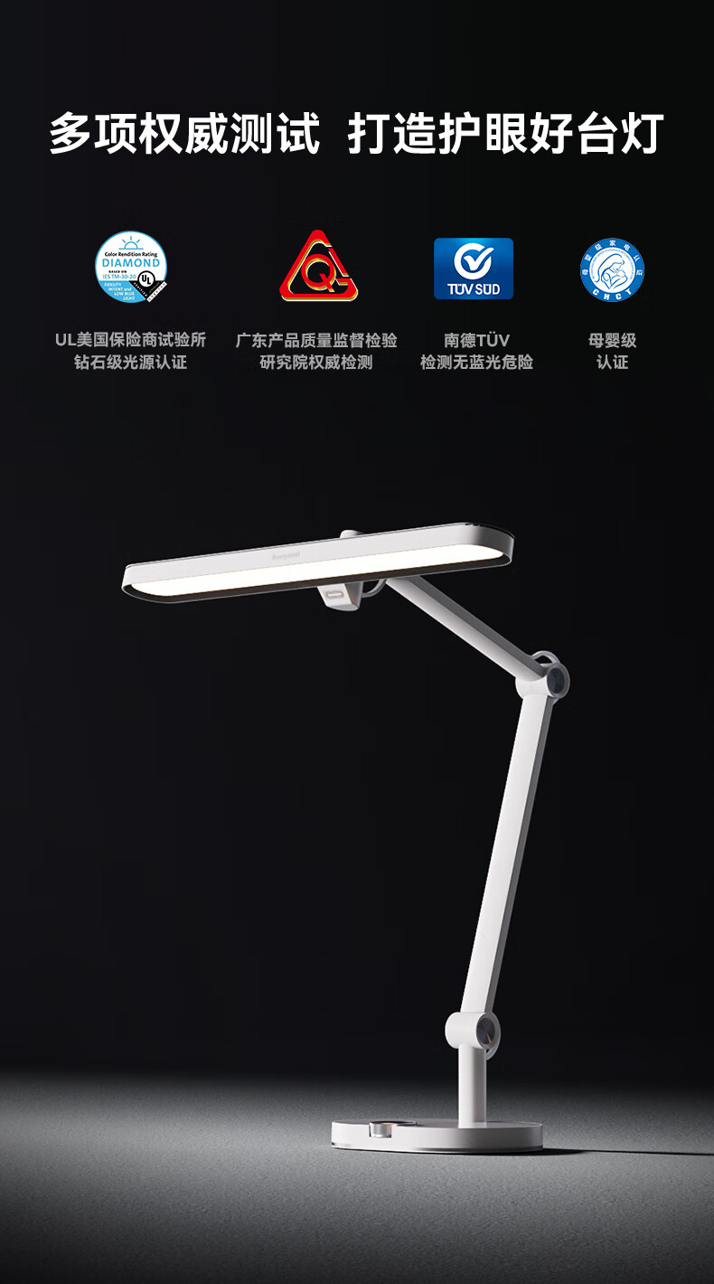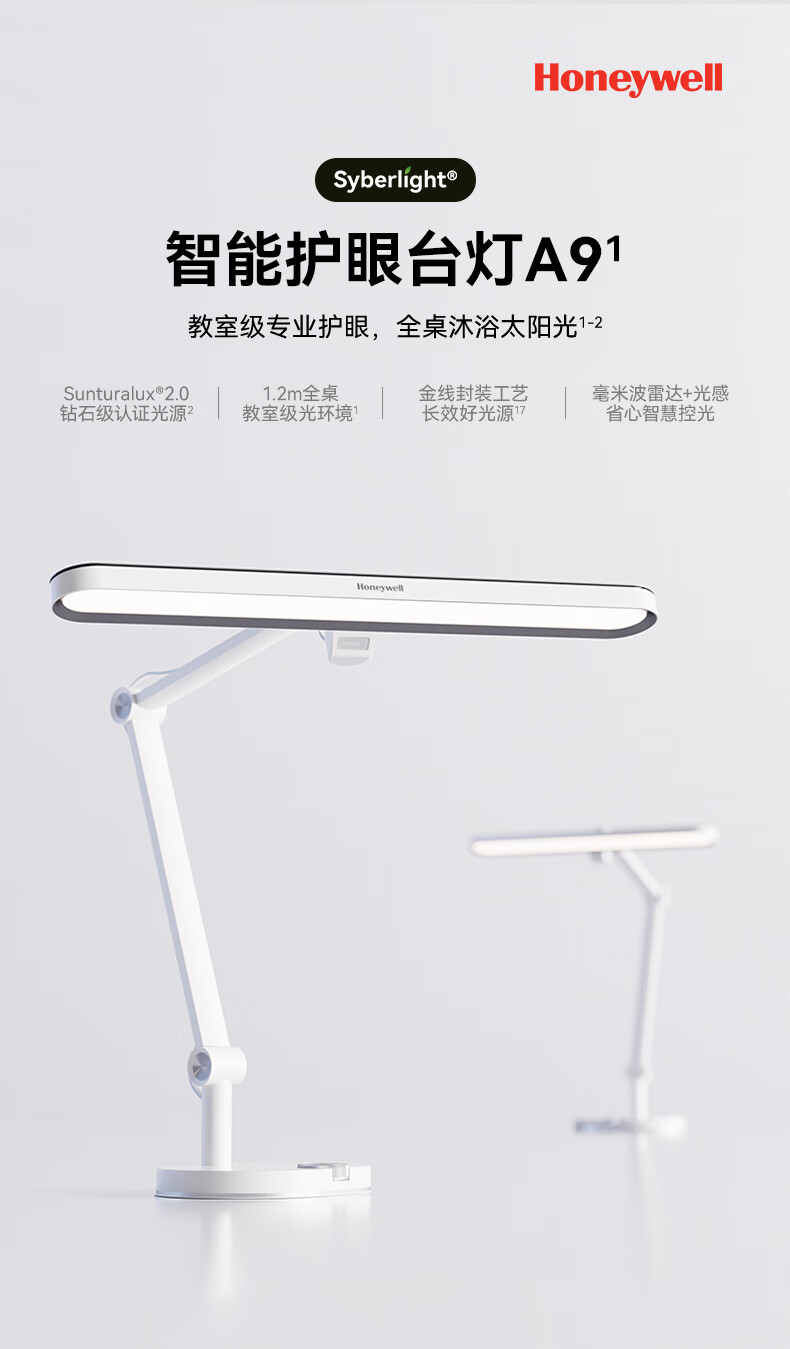 霍尼韦尔(Honeywell)台灯护眼学习阅读护眼灯国AA级智能调光LED全光谱灯儿童卧室学生_HWT-05A02(云白)