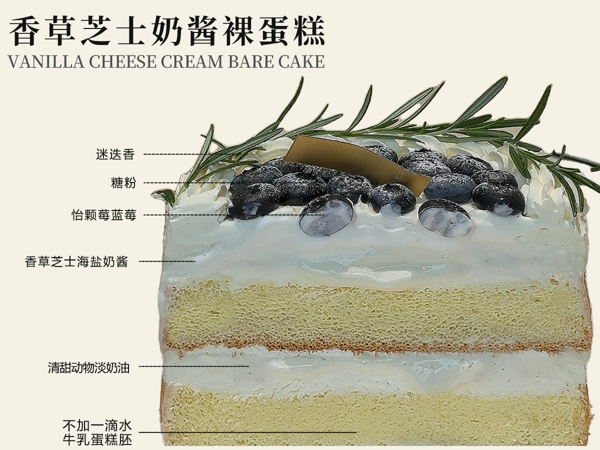 6英寸香草芝士流心奶酱裸蛋糕(流心奶酱夹心,介意勿拍)(直径15cm 高度8cm)(所有绿植均不可食用!)
