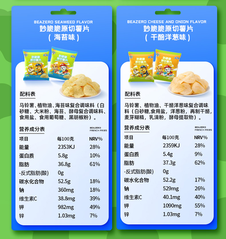 未零妙脆脆原切薯片波浪薯片 汪汪队儿童营养零食